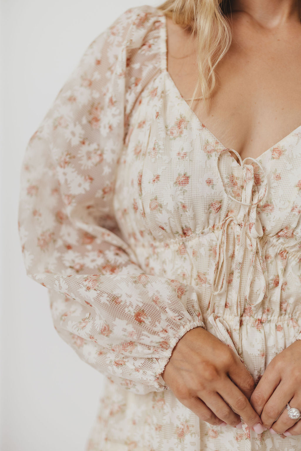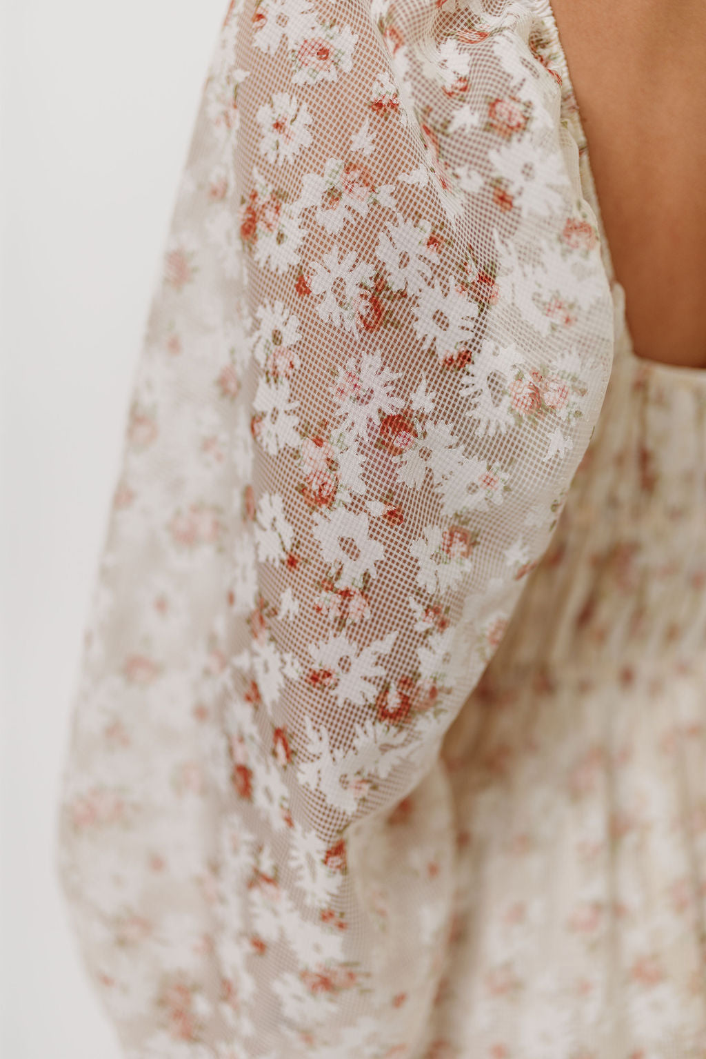 Mona Maxi Dress with Smocking in Cream/Beige Floral - Bump Friendly