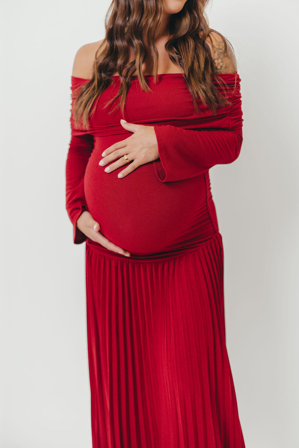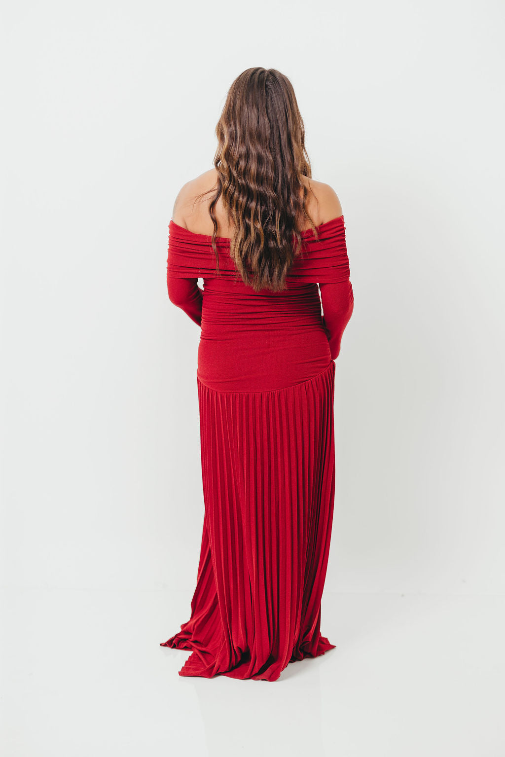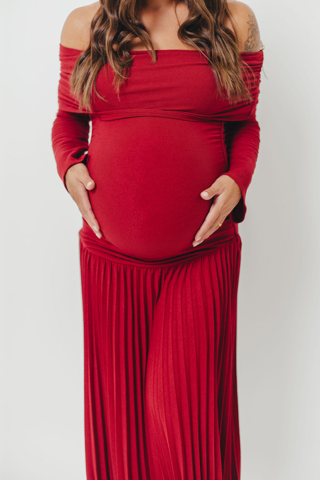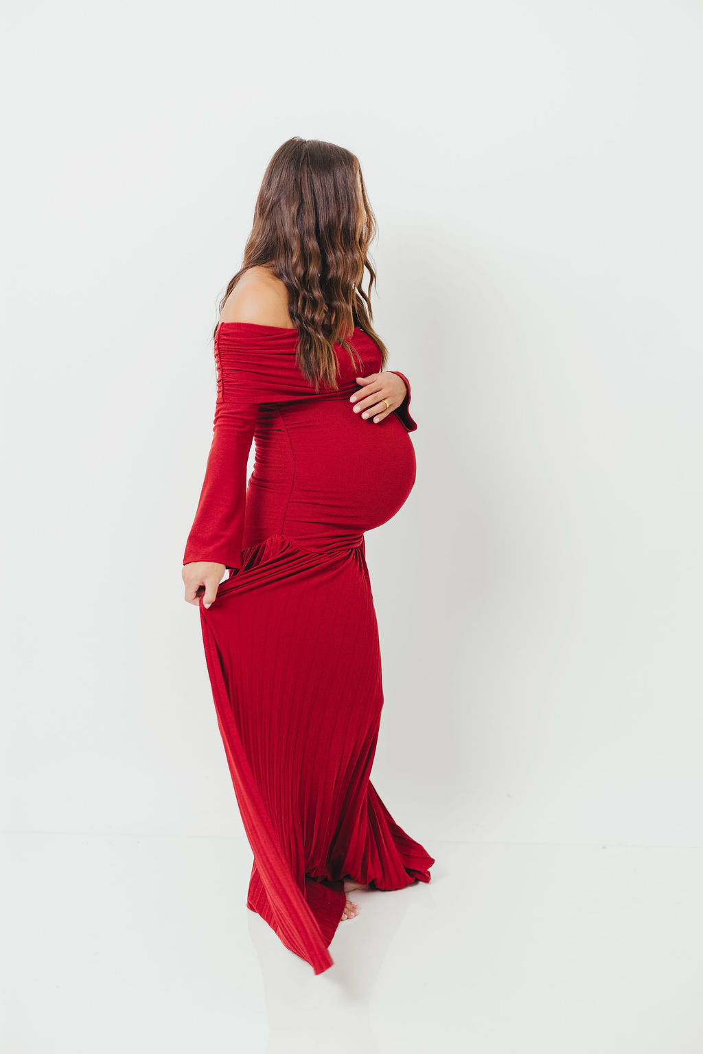 Lennox Long Sleeve Maxi Dress in Red - Bump Friendly *Final Sale*