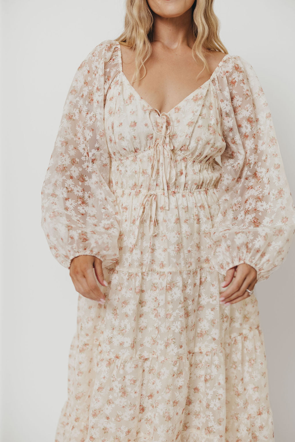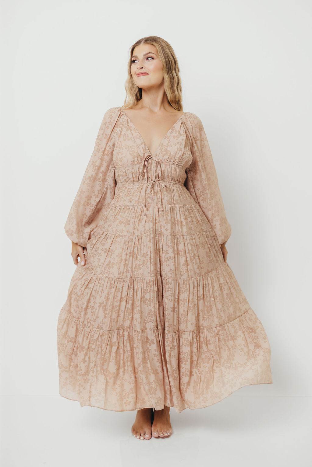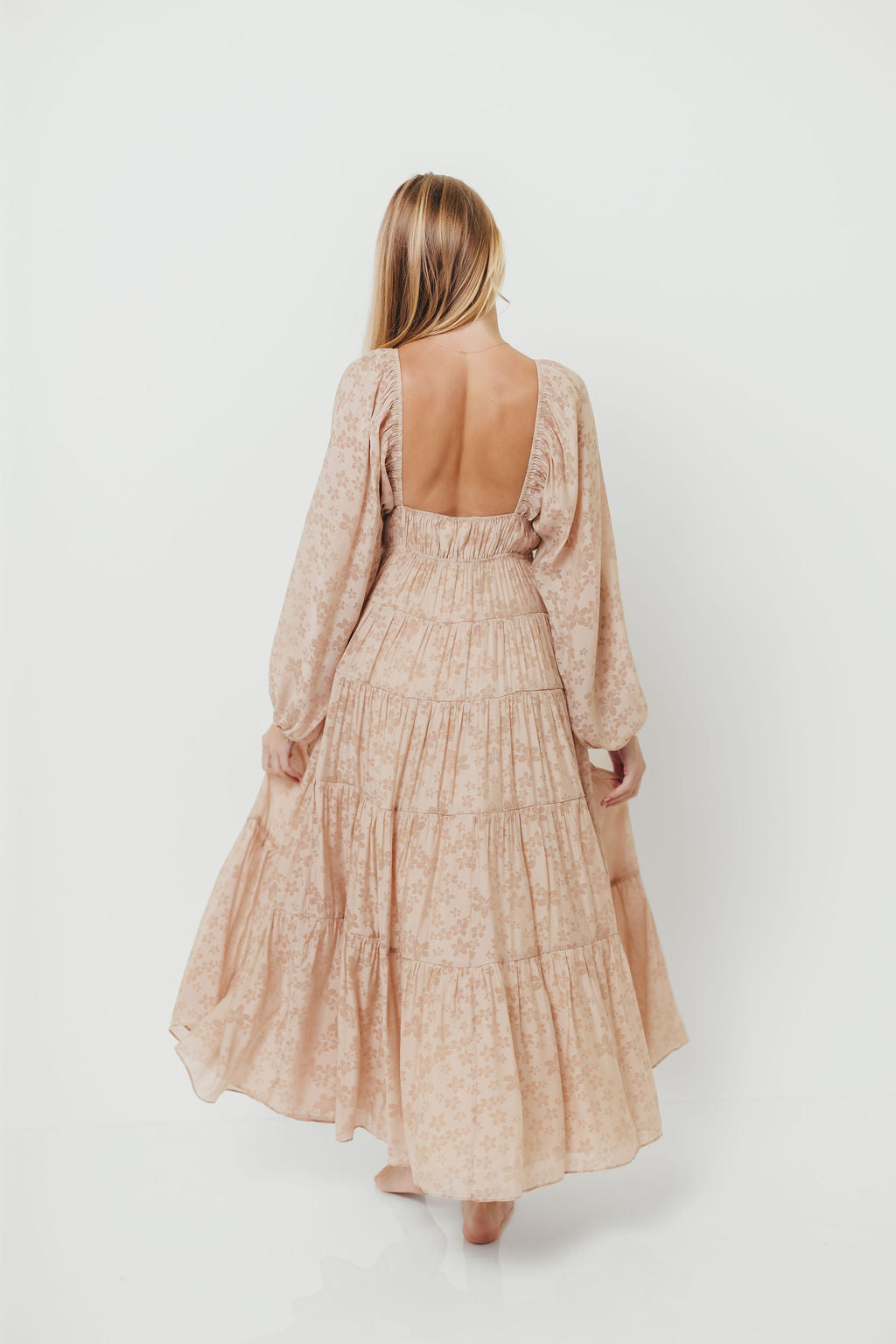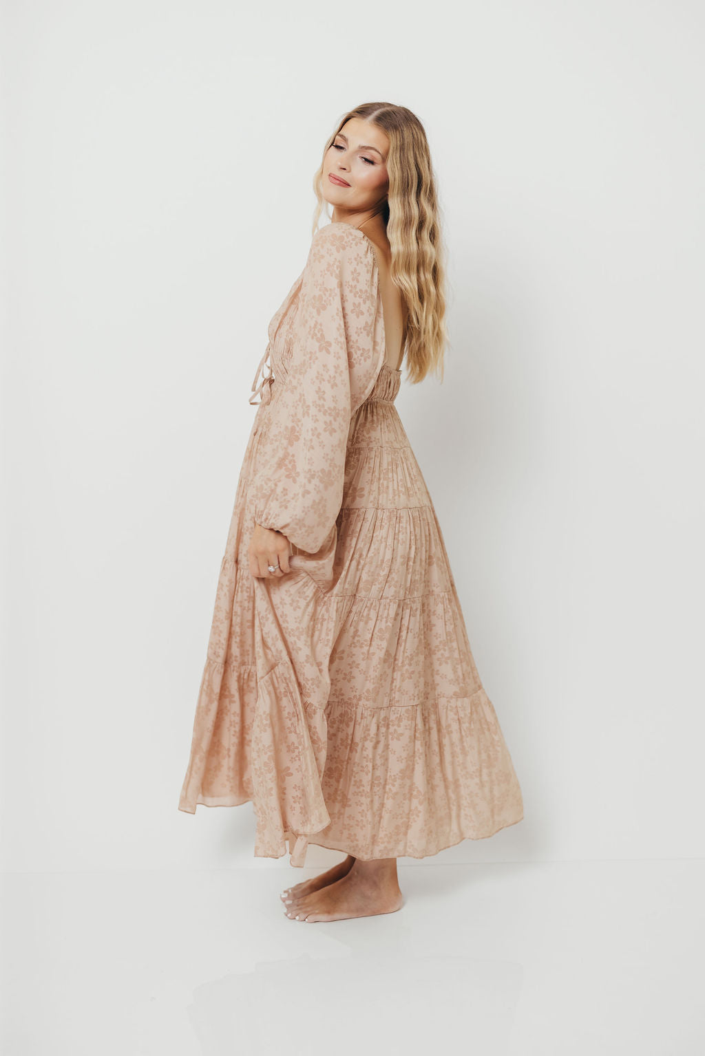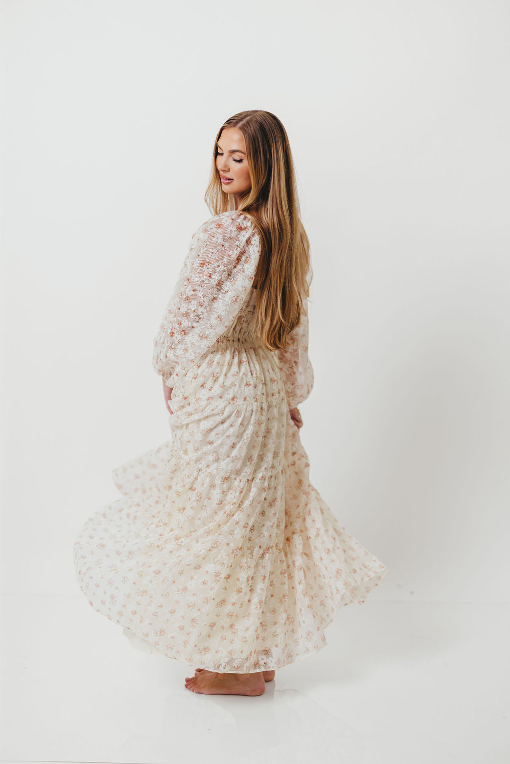 Macklynn V-Neck Long Sleeve Tier Maxi Dress in Cream/Orange Floral