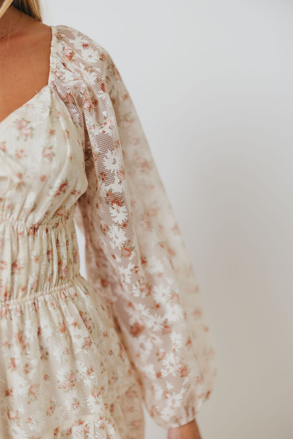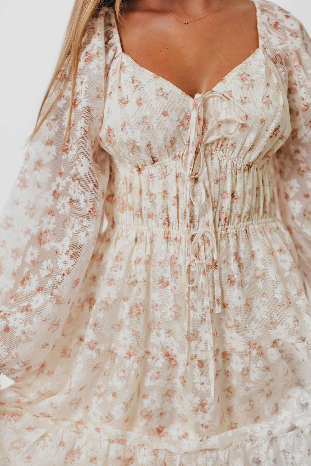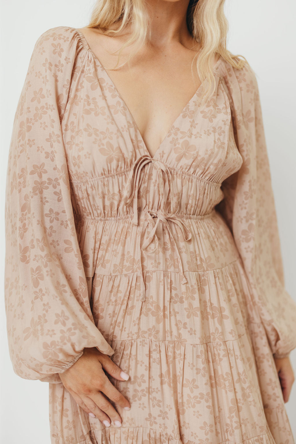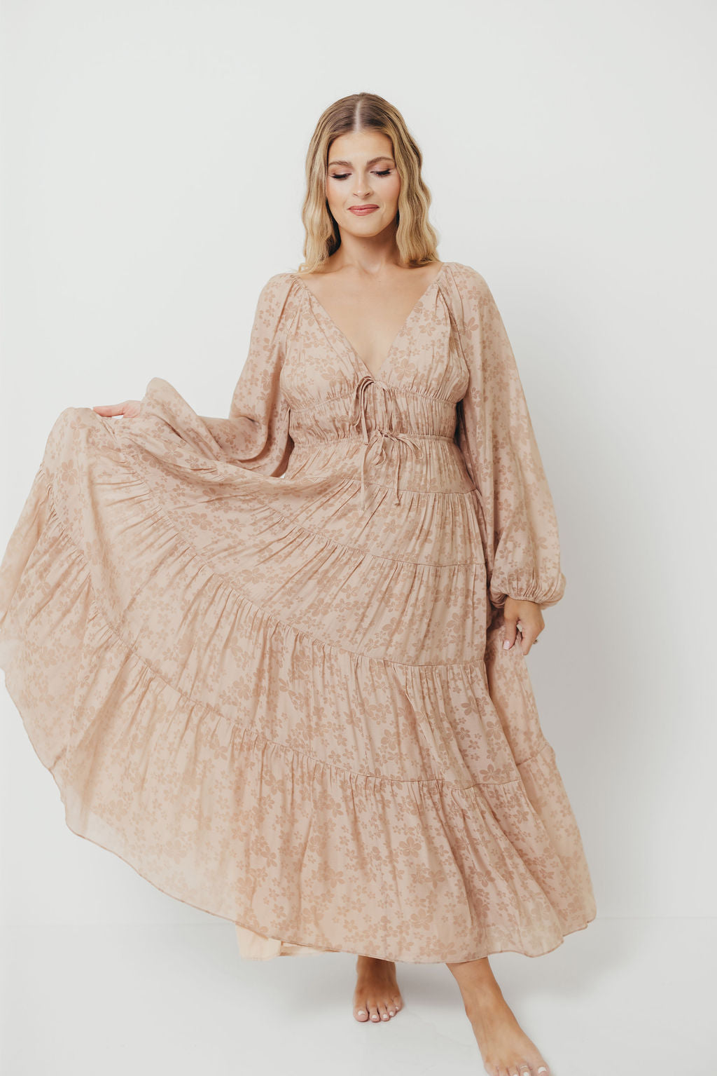 Macklynn V-Neck Long Sleeve Tier Maxi Dress in Cream/Orange Floral