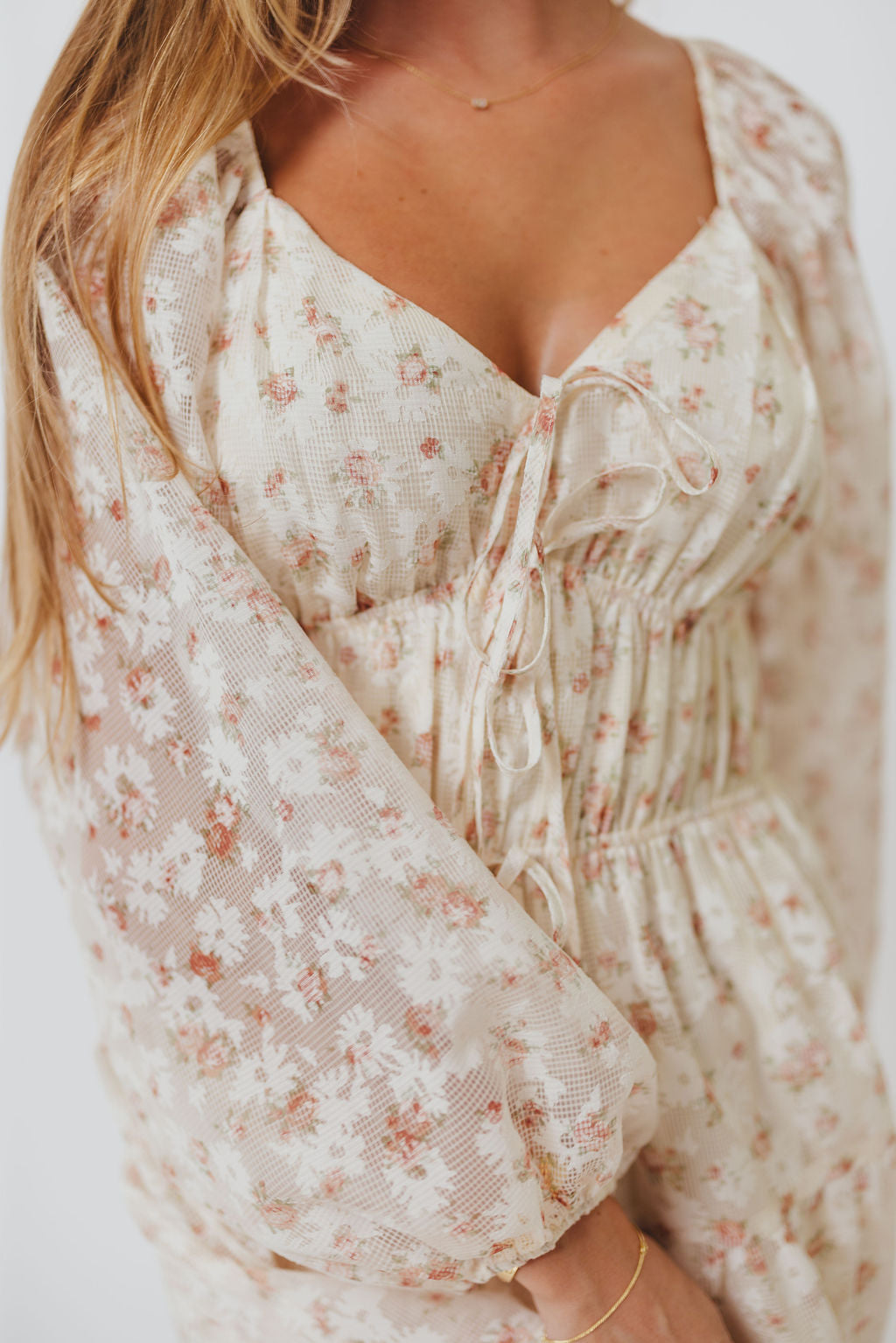 Tayler 100% Cotton Mini Dress in Beige Floral
