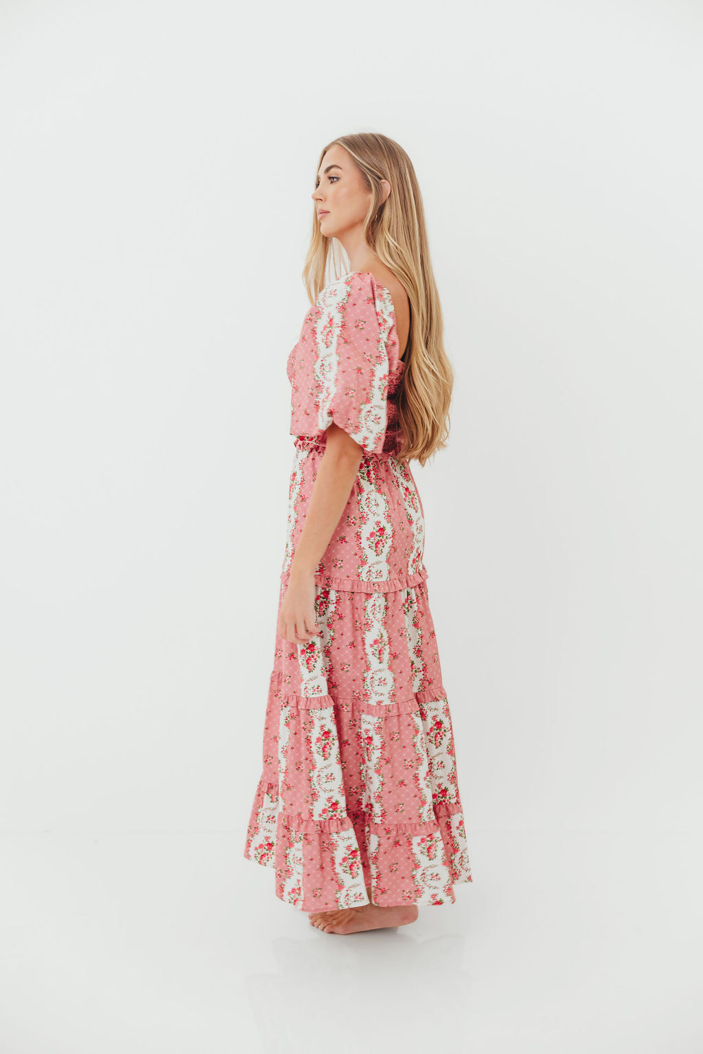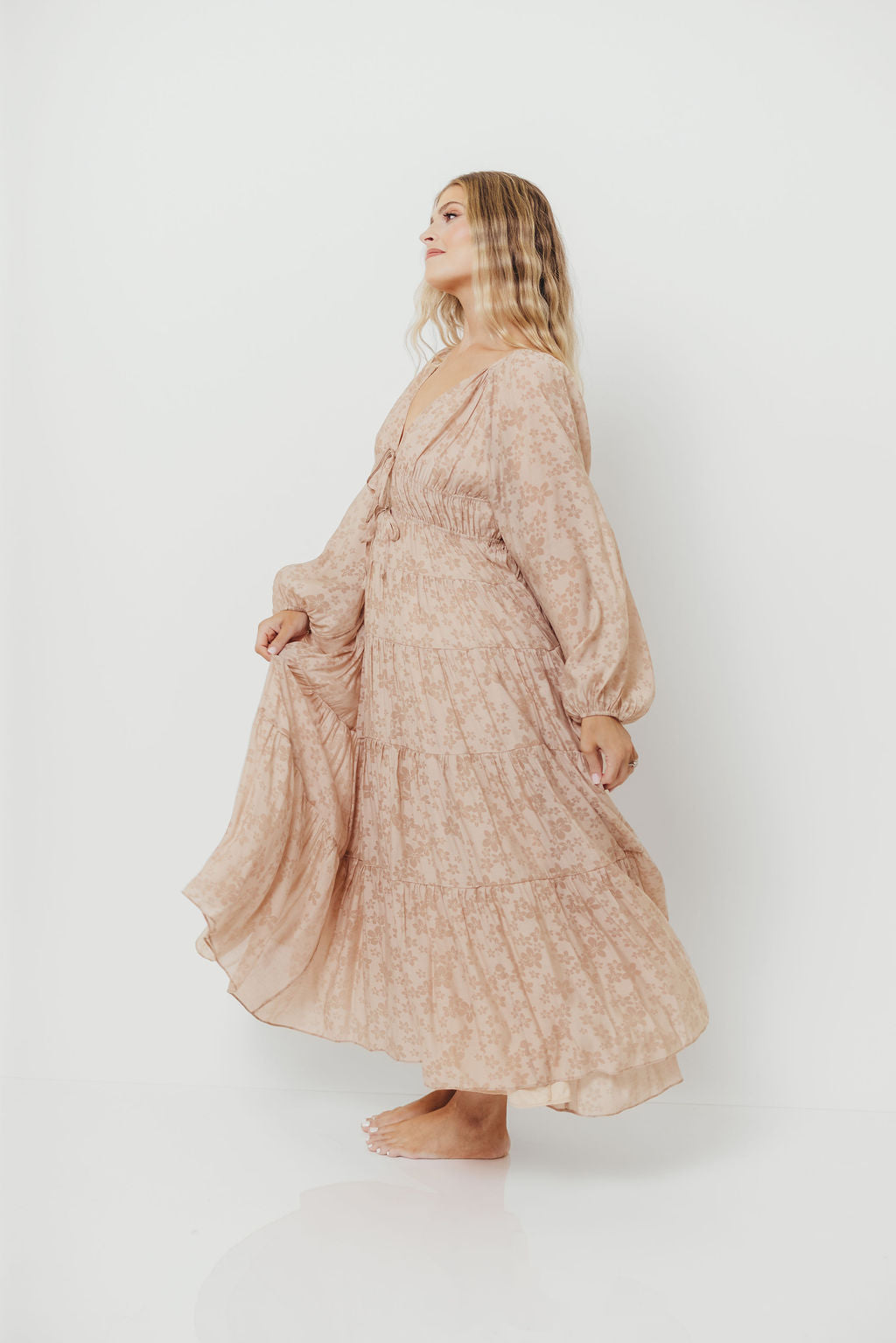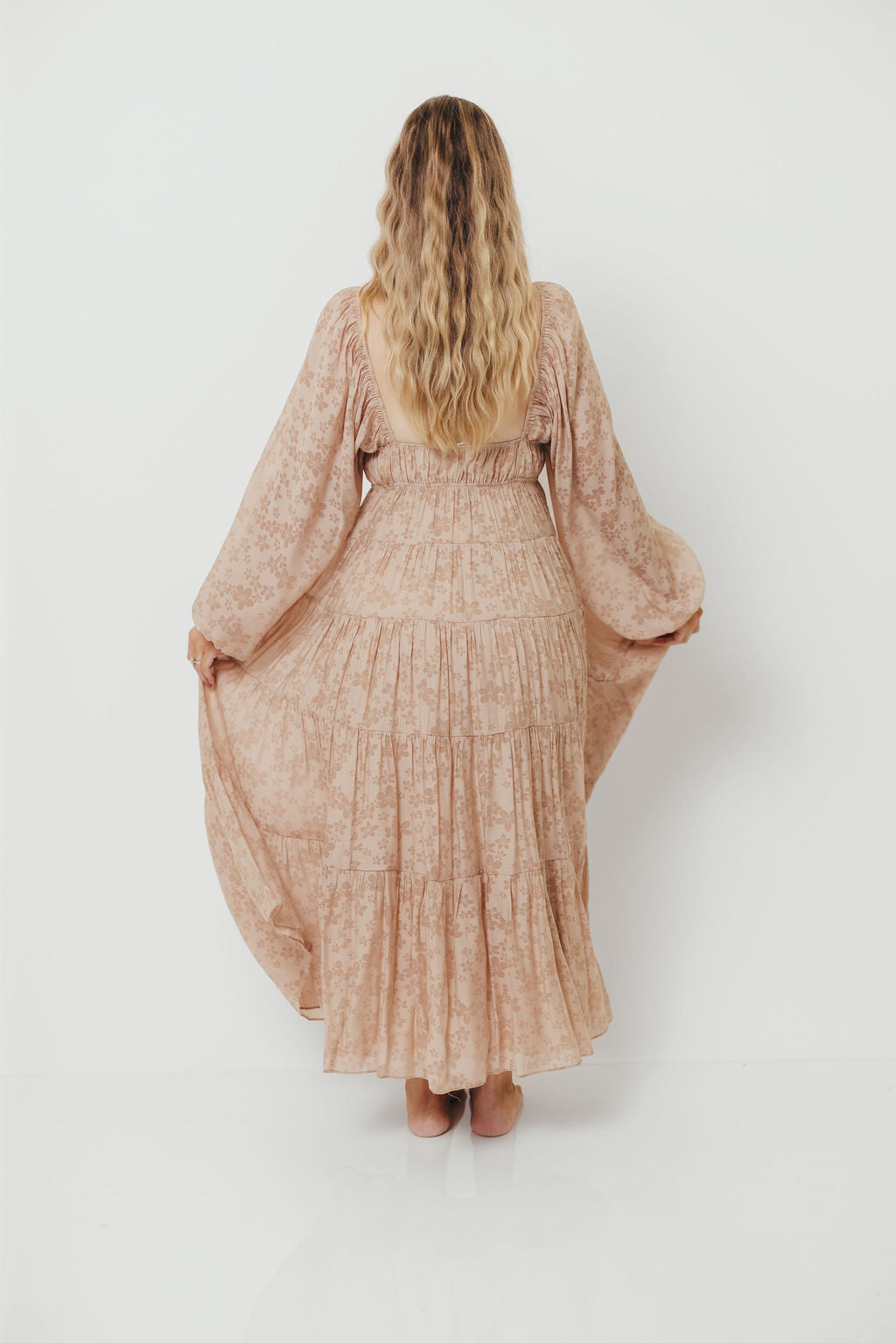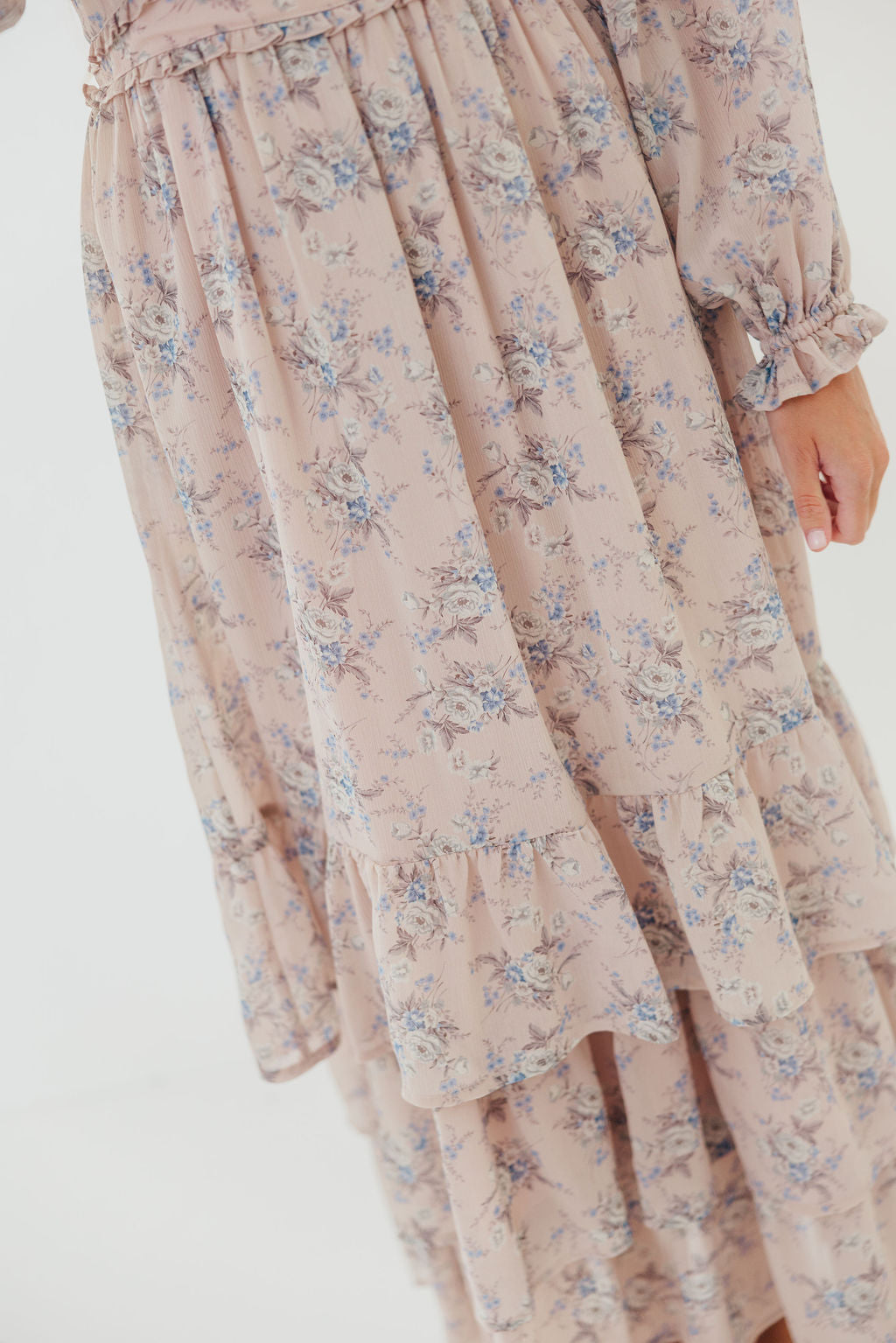 Shenae Ruffled Tiered Floral Maxi Dress in Dusty Pink