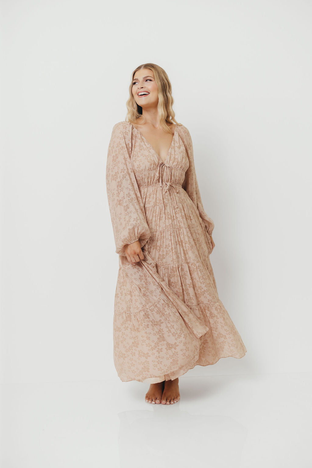 Daphne Long Sleeve Maxi Dress in Pink/Beige Multi Floral - Bump Friendly