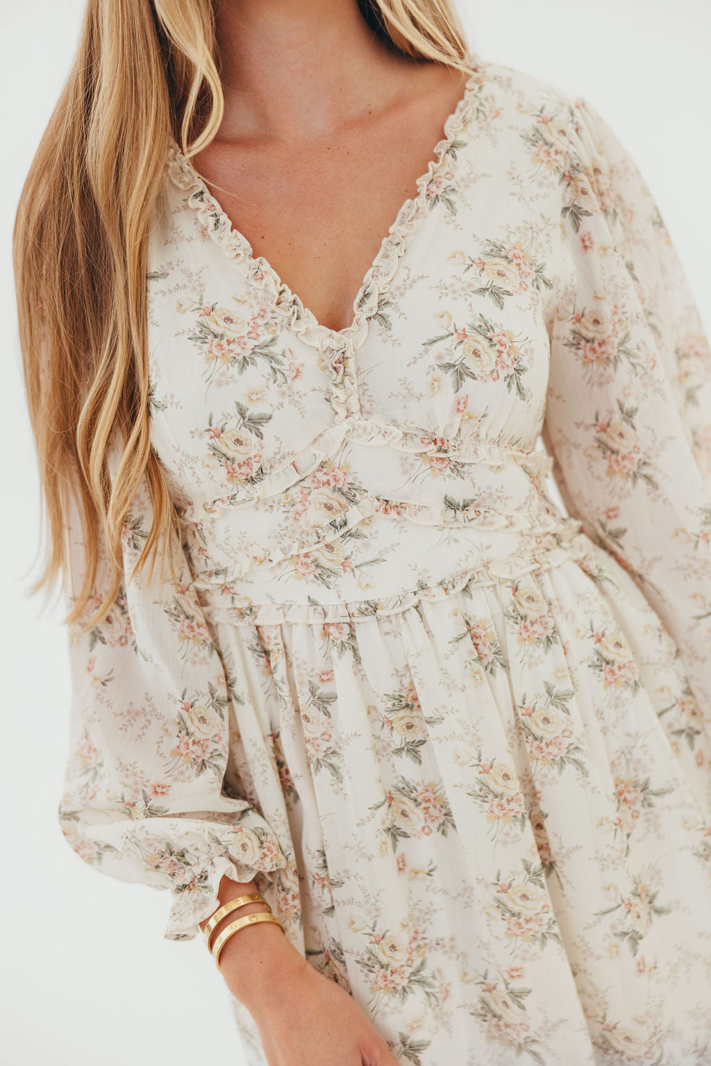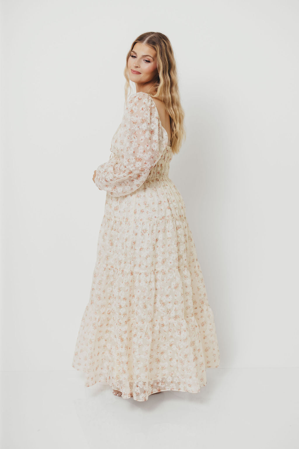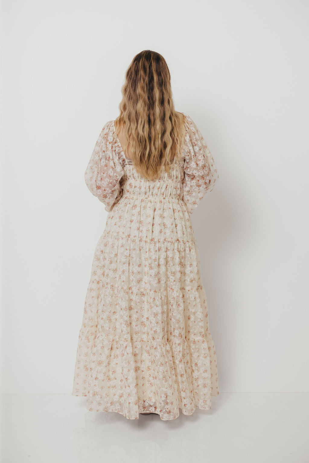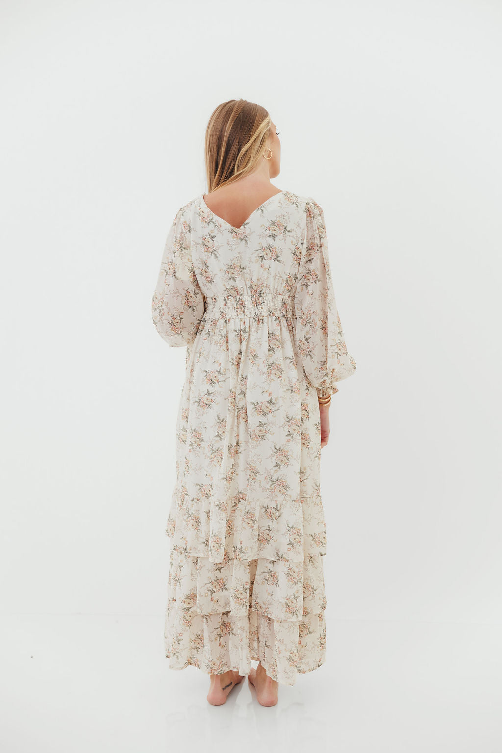 Shenae Ruffled Tiered Floral Maxi Dress in Vintage Cream