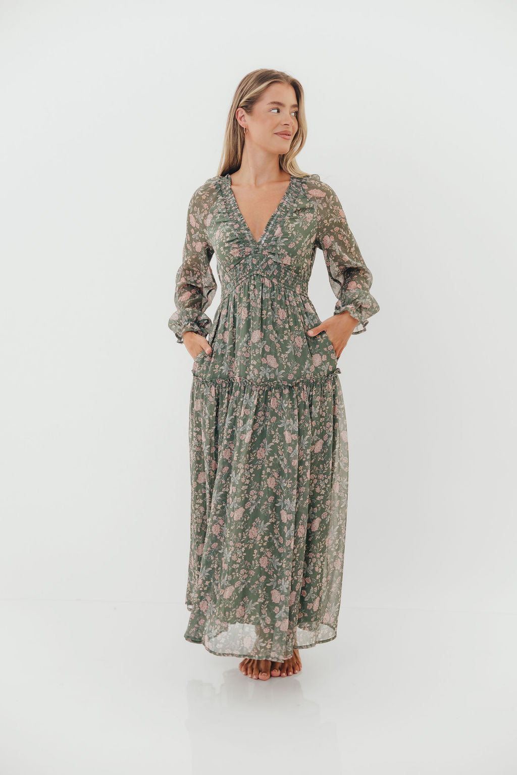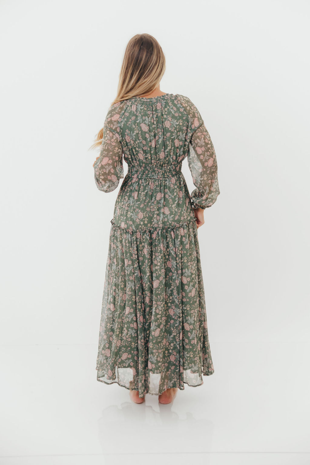 Rosita Floral Maxi Dress in Dusted Eucalyptus