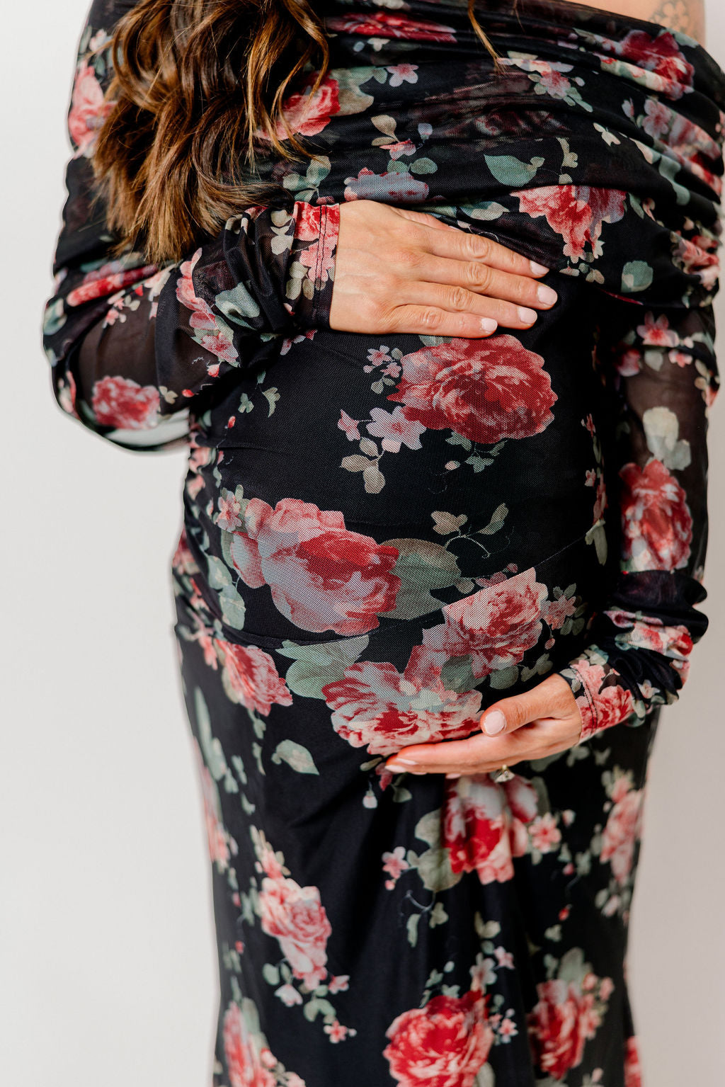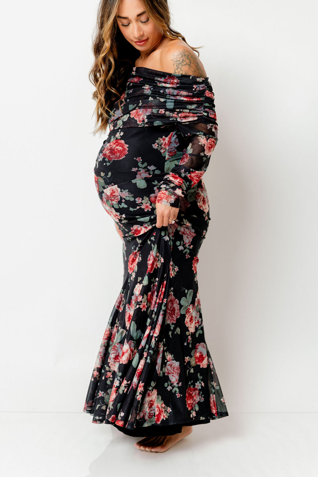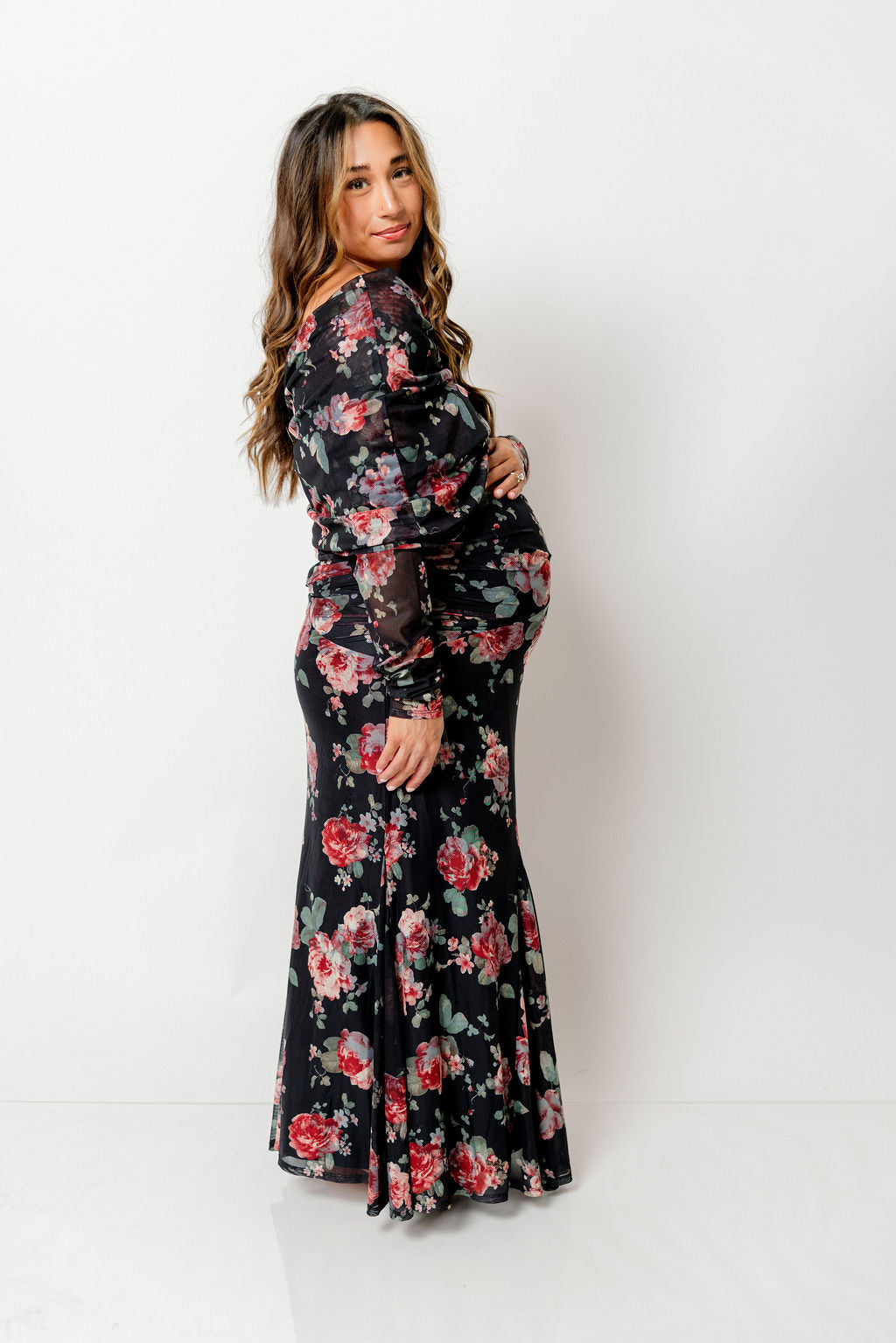 Azaleia Maxi Dress in Black Floral - Size up for Bump