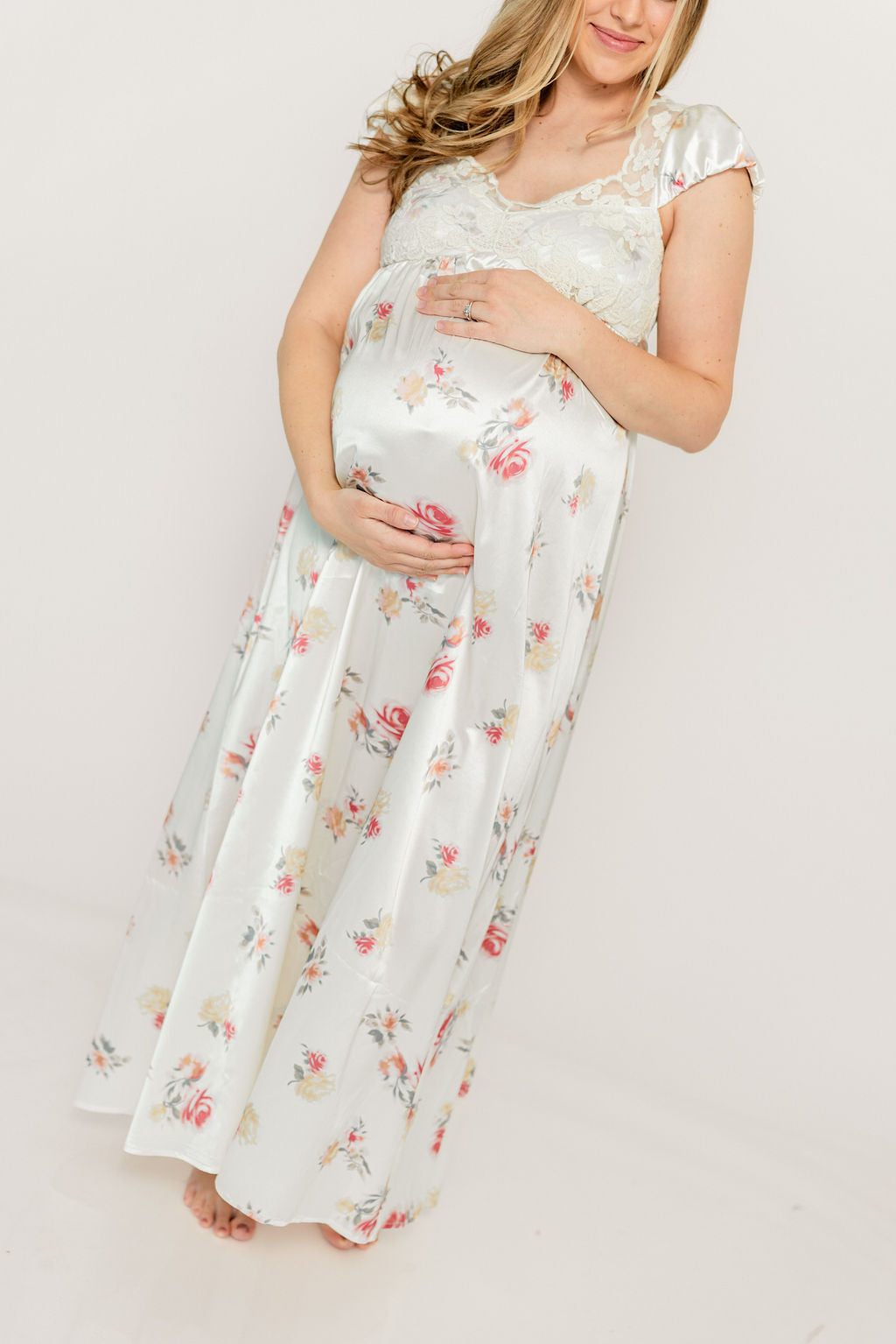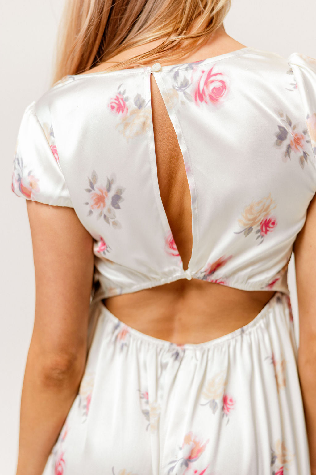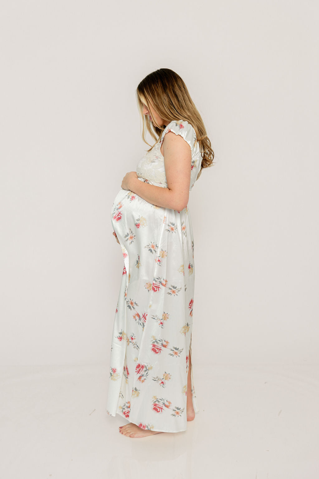 Ryan Lace Bodice Cutout Maxi Dress in Cream Floral - Bump Friendly