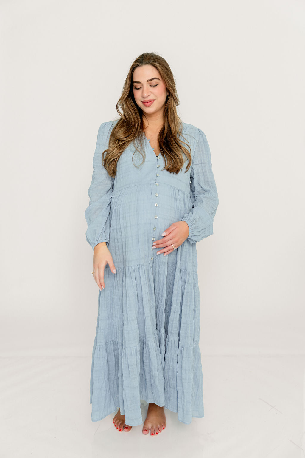 Anna Button-Down Maxi Dress in Light Blue - Bump Friendly *3/18 PRE-ORDER*