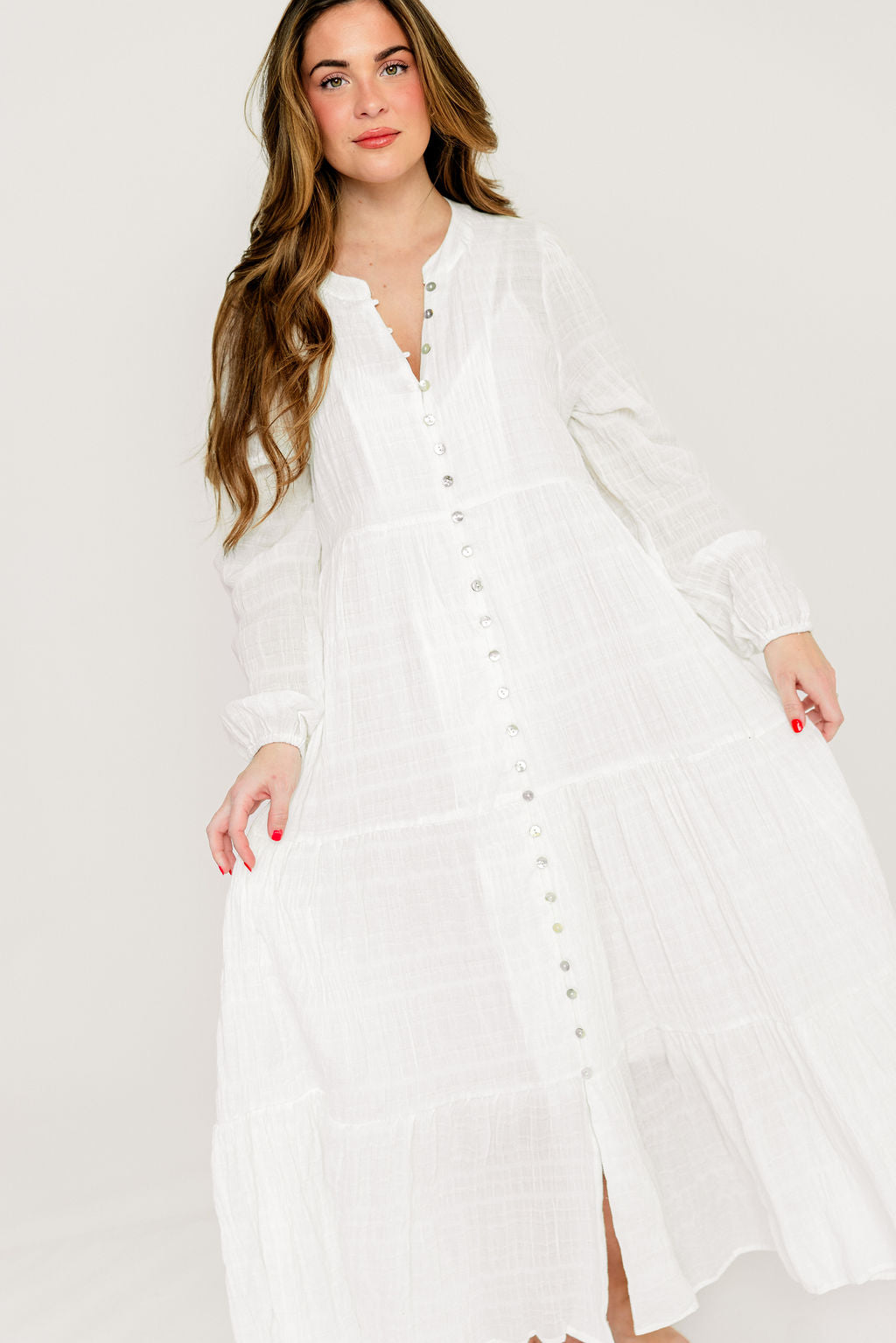 Anna Cotton-Blend Button Down Maxi Dress in Ivory - Bump Friendly