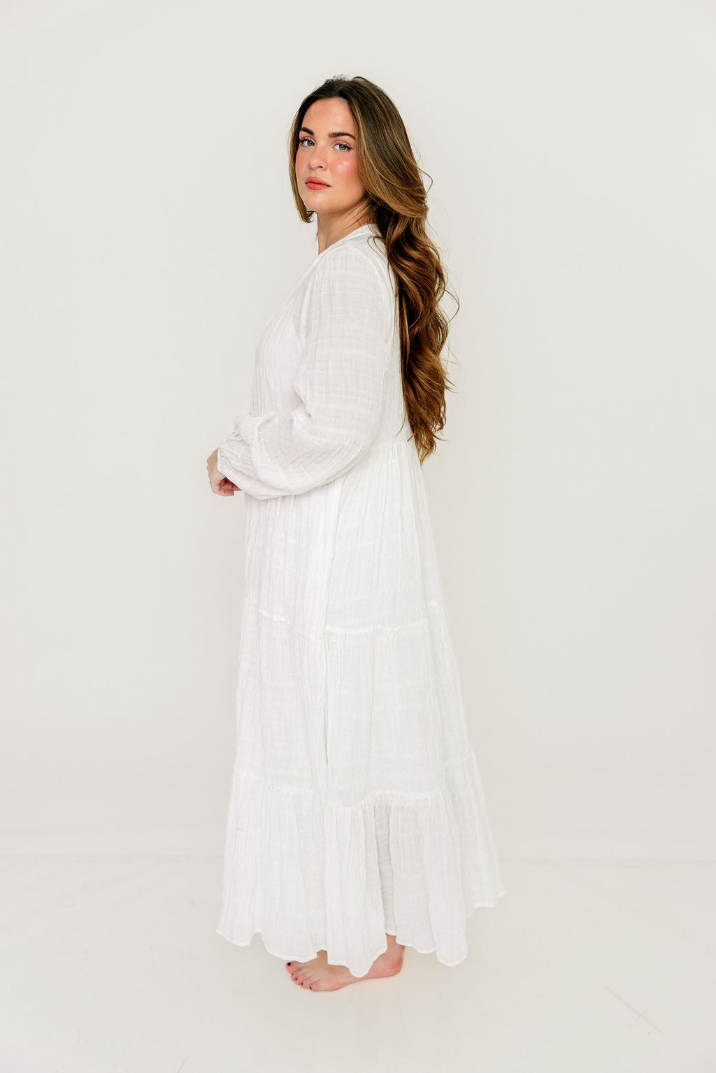 Christina Puffed Sleeve Maxi Dress in Off-White - Bump Friendly