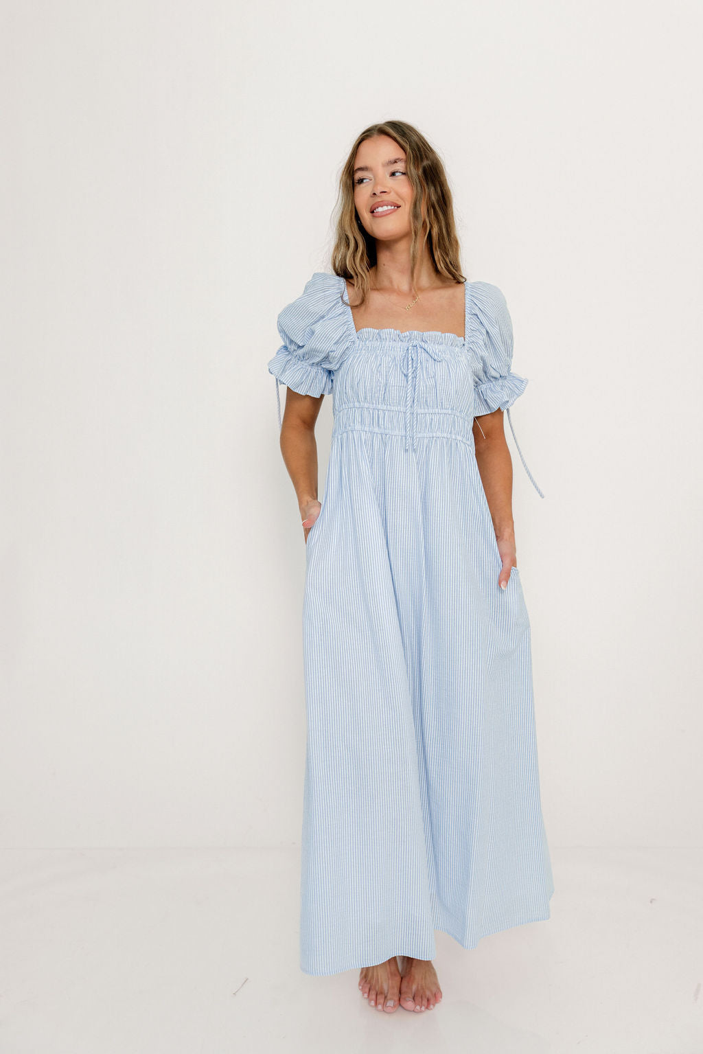 Christina Puffed Sleeve Maxi Dress in Cloud - Bump Friendly