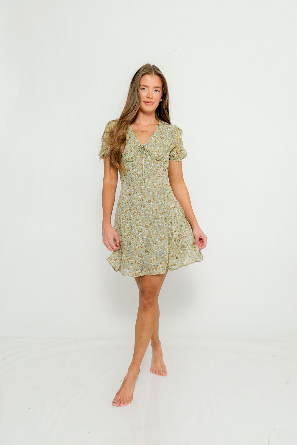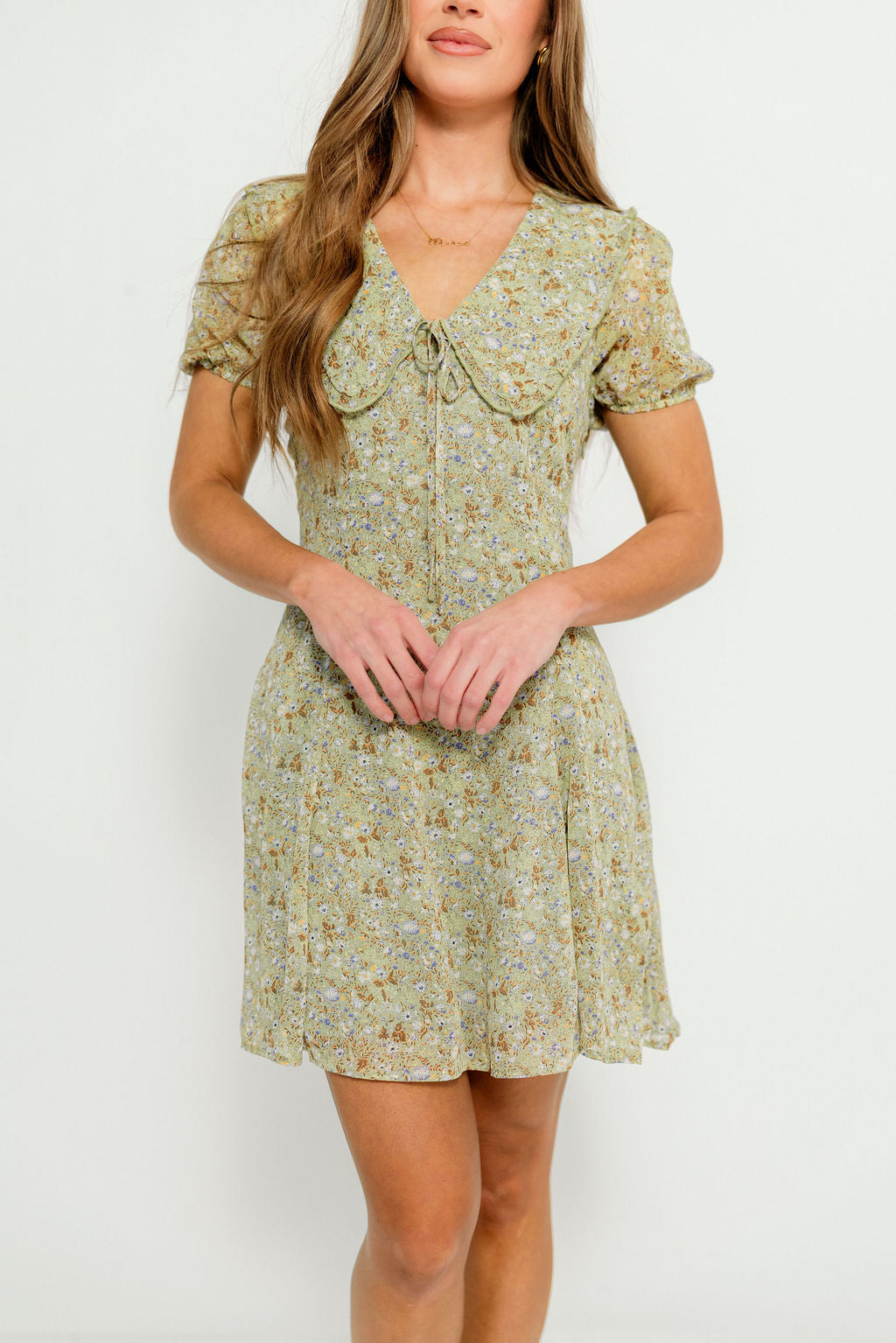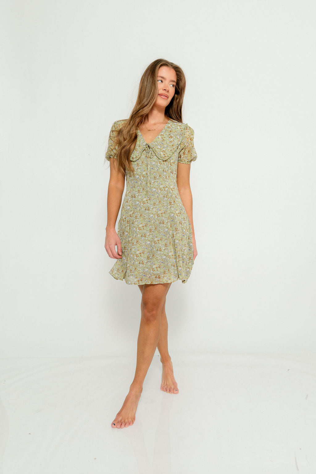 Samantha Floral Doll Collar Mini Dress in English Rose
