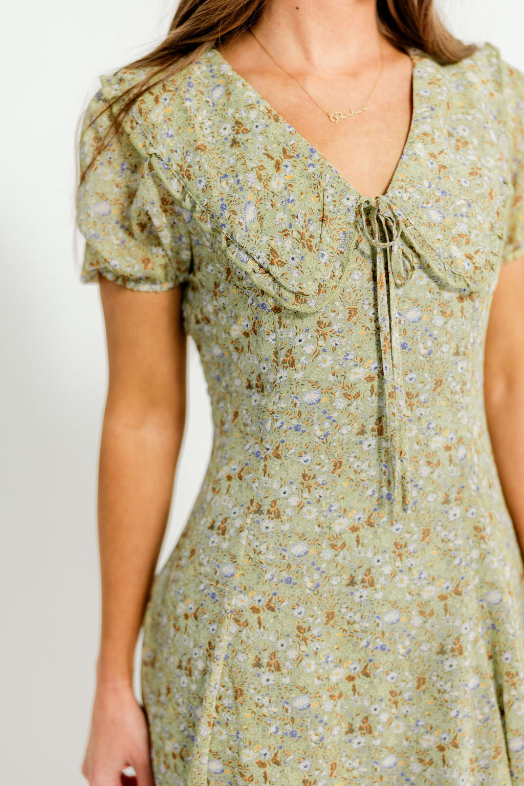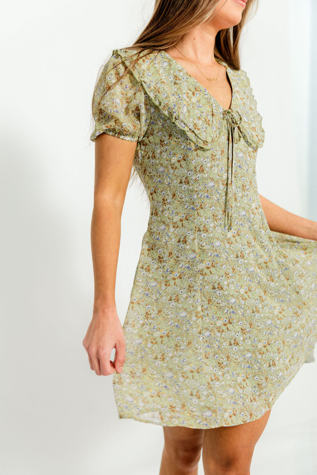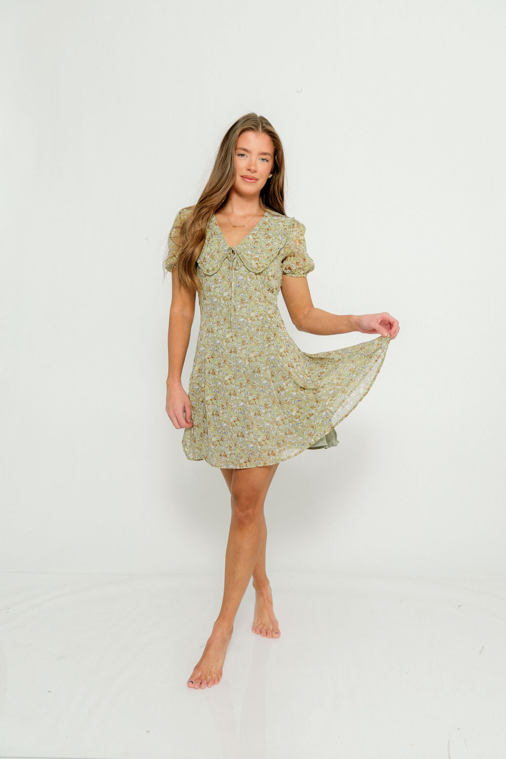 Samantha Floral Doll Collar Mini Dress in English Rose