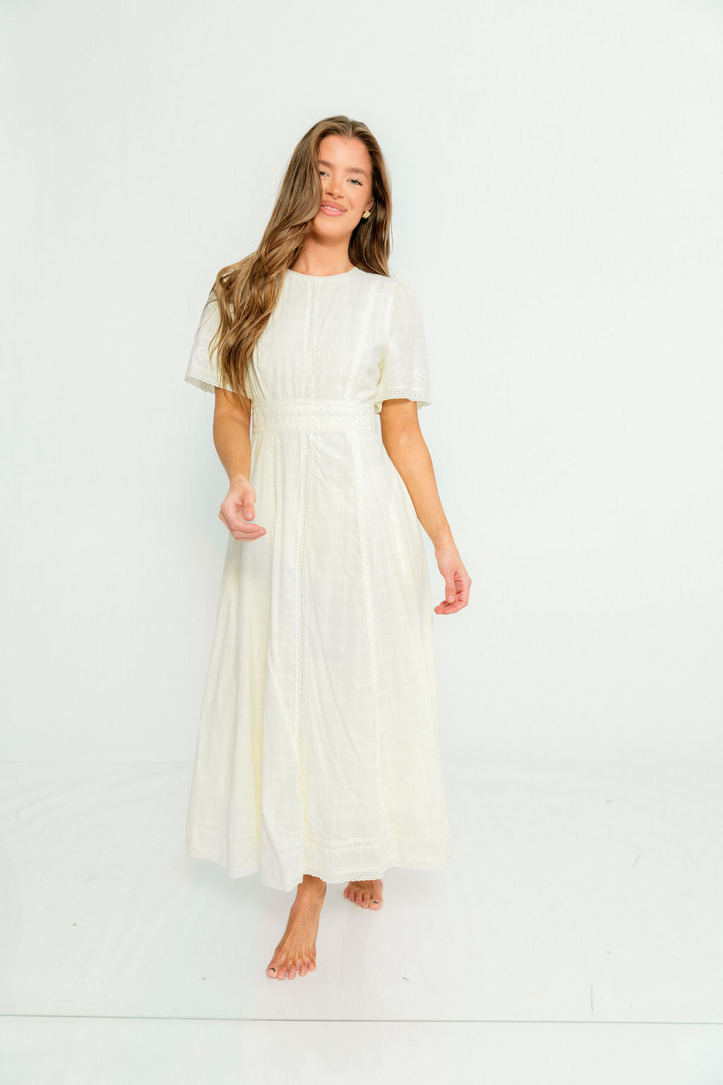 Miriam Cotton Lace Inset Maxi Dress in Buttercream