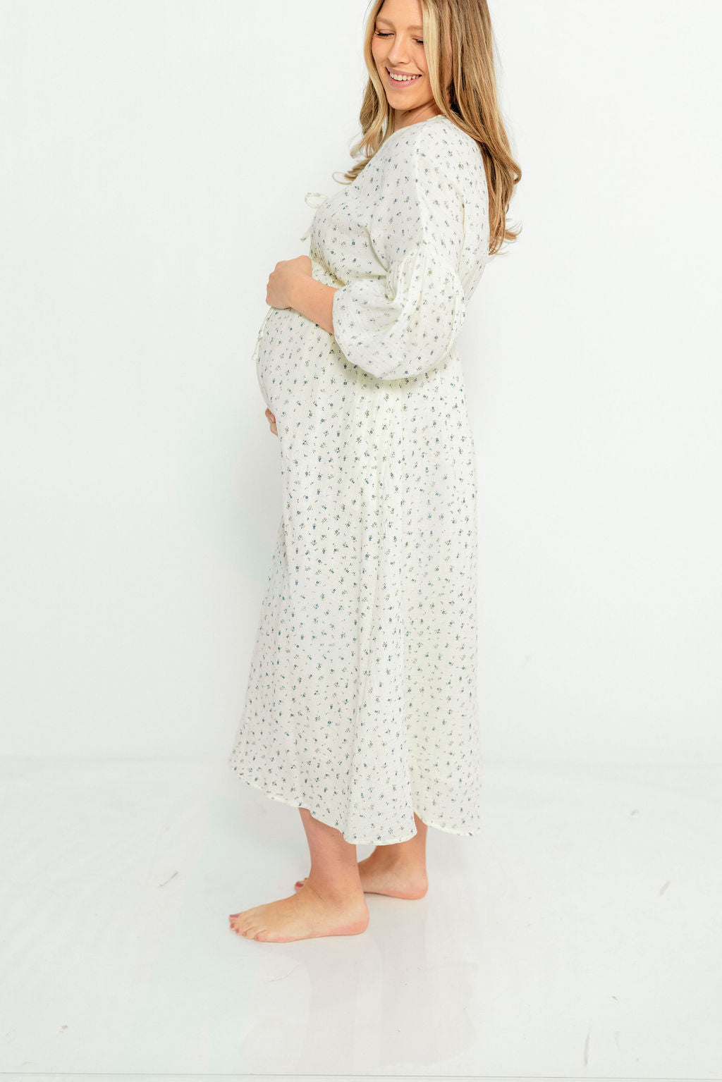 Delilah Maxi Dress with Train in Muted Sage Floral - Bump Friendly *2/5 PRE-ORDER*