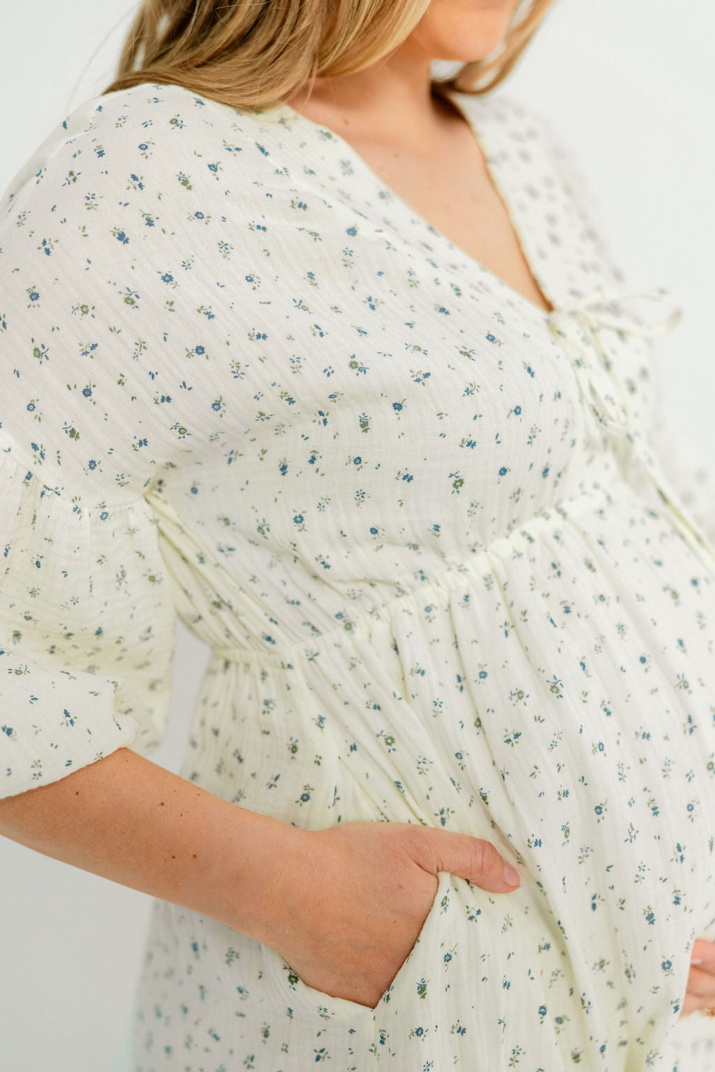 Hunter 100% Cotton Midi Dress with Trimming in Muted Blush Floral - Bump Friendly