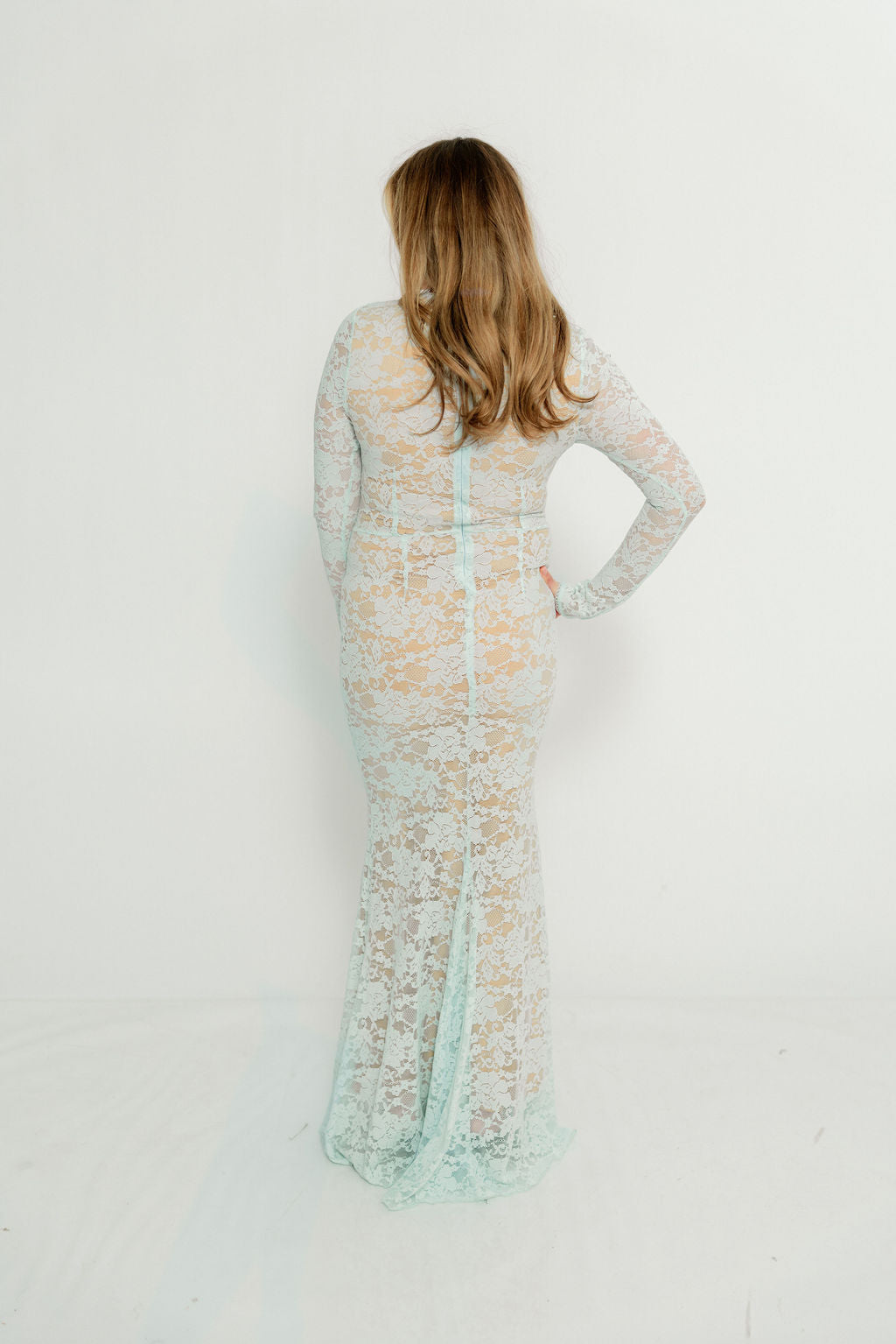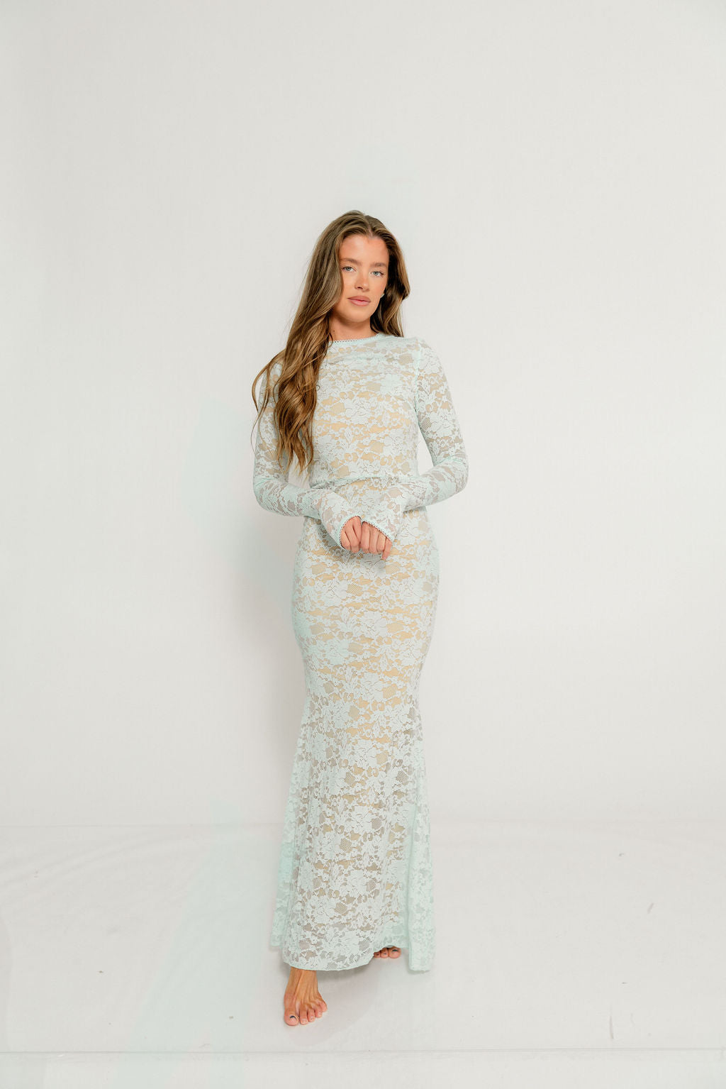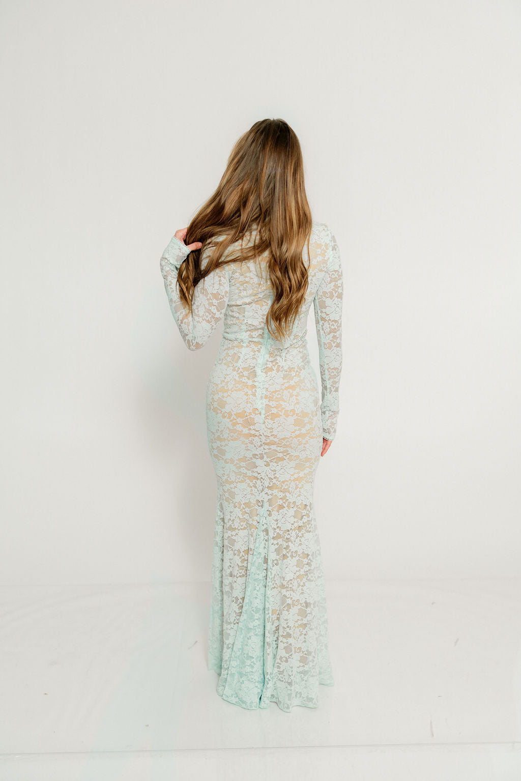 Seraphine Lace Maxi Dress in Pale Blue - Bump Friendly (Size Up for Bump) *2/16 PRE-ORDER*