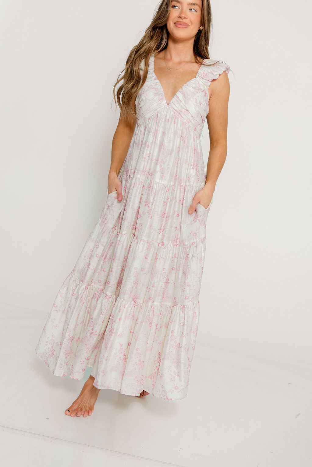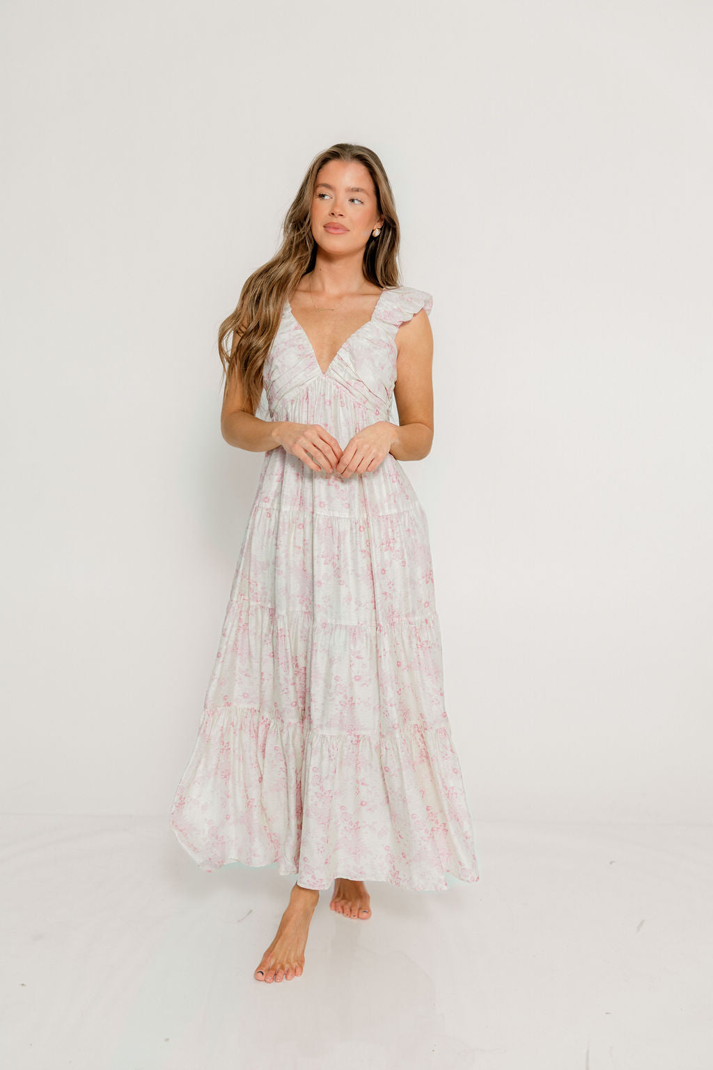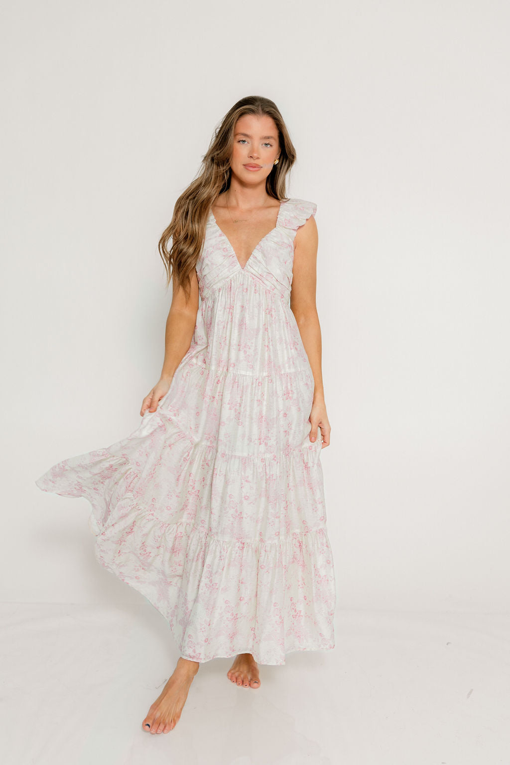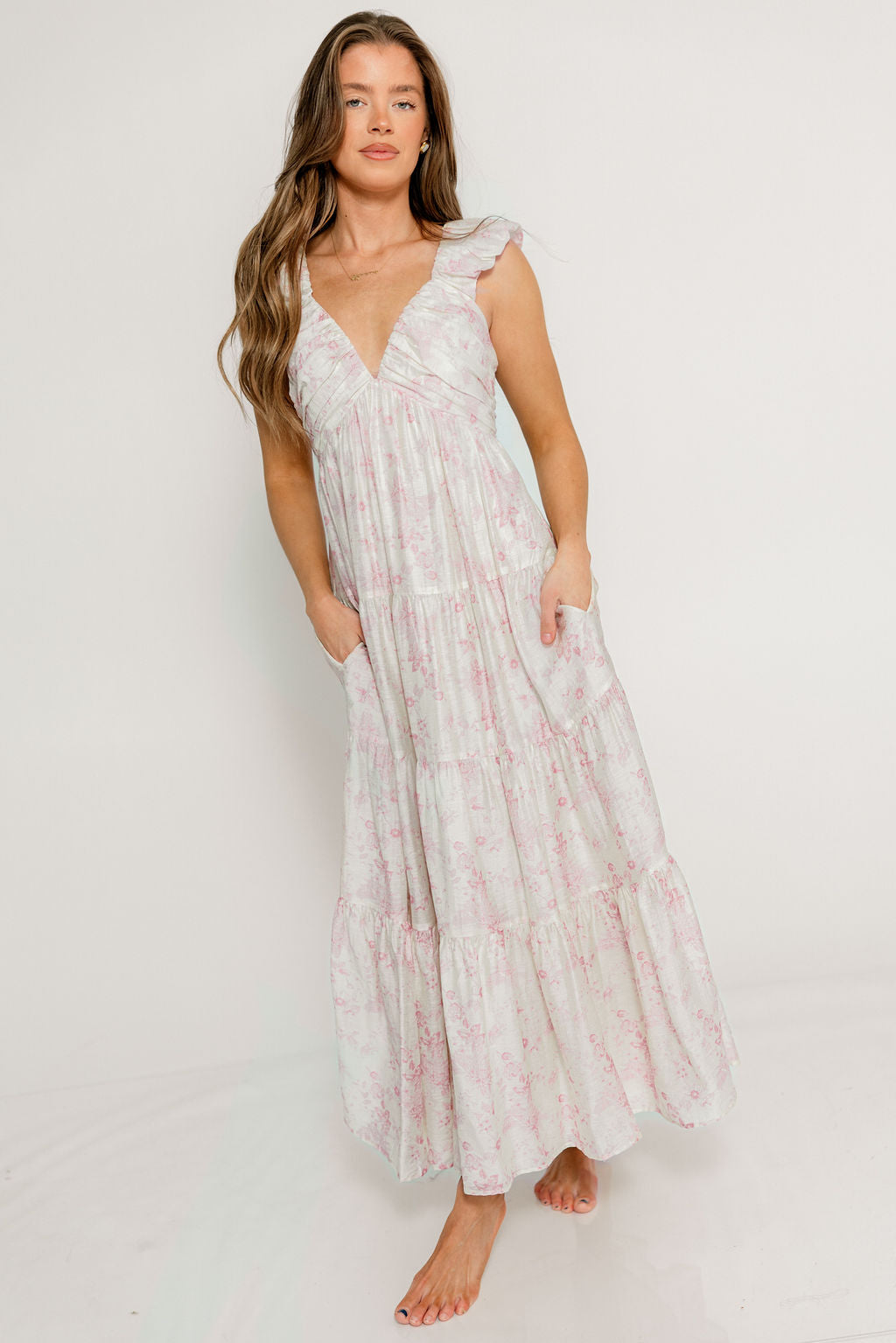 Katy Pleated Bodice Maxi Dress in Pink Floral *1/29 PRE-ORDER*