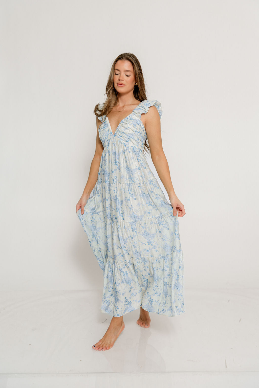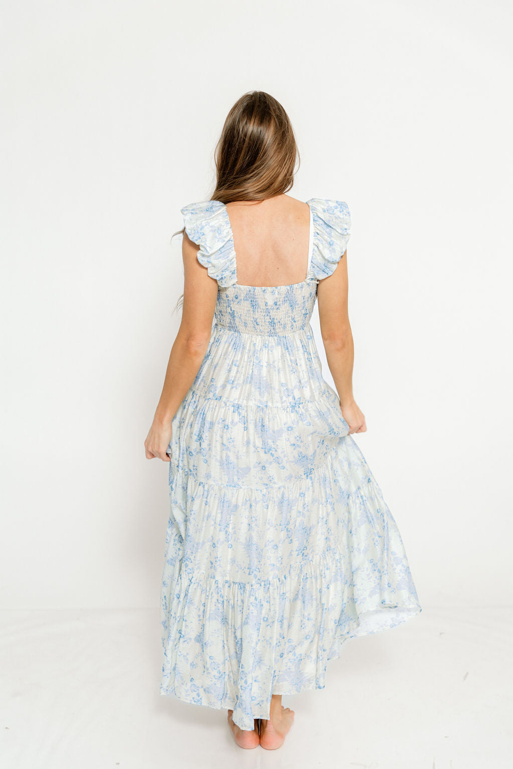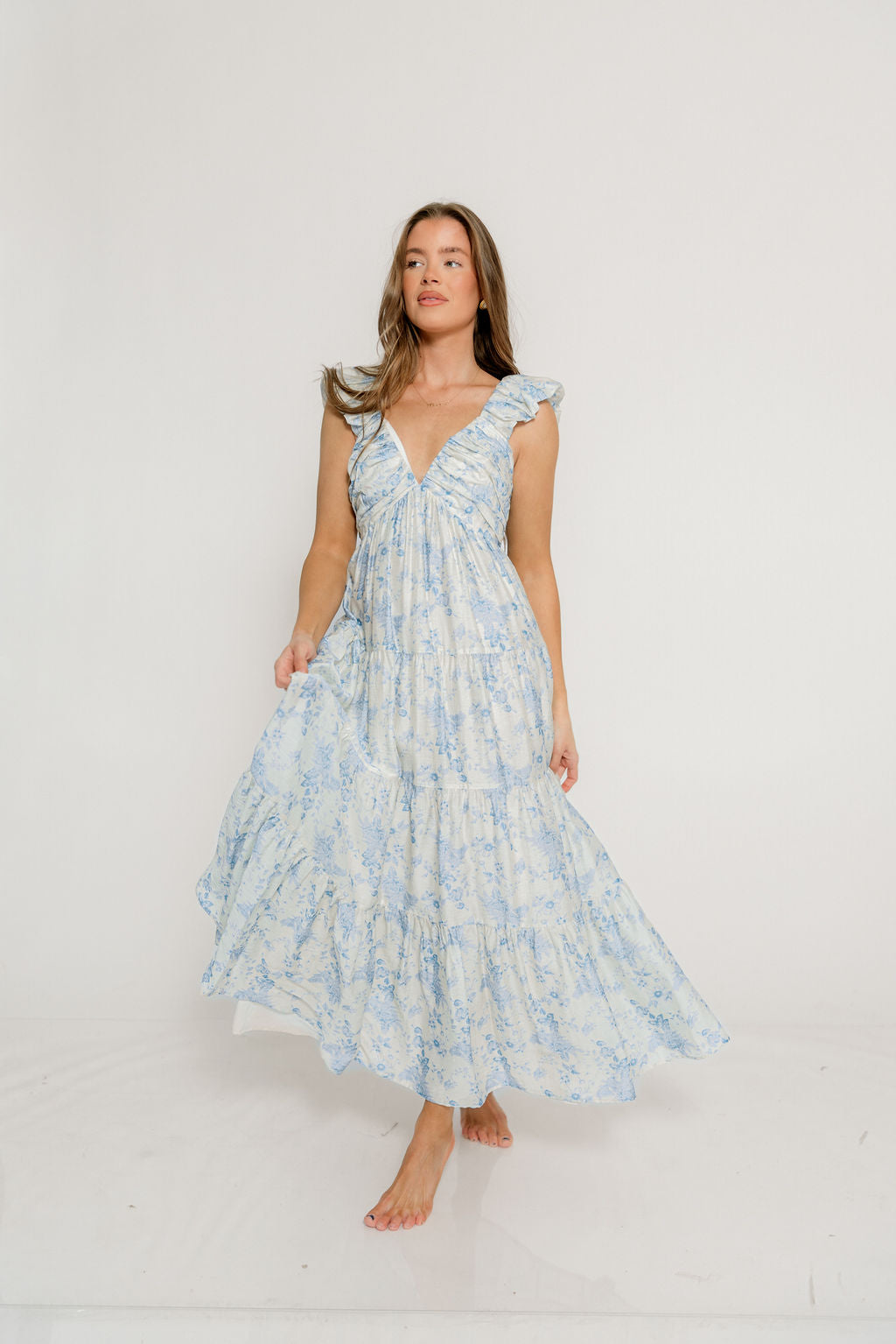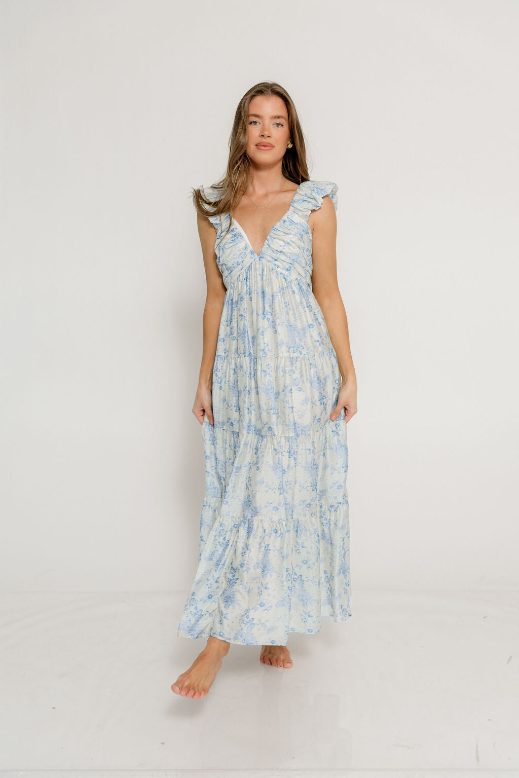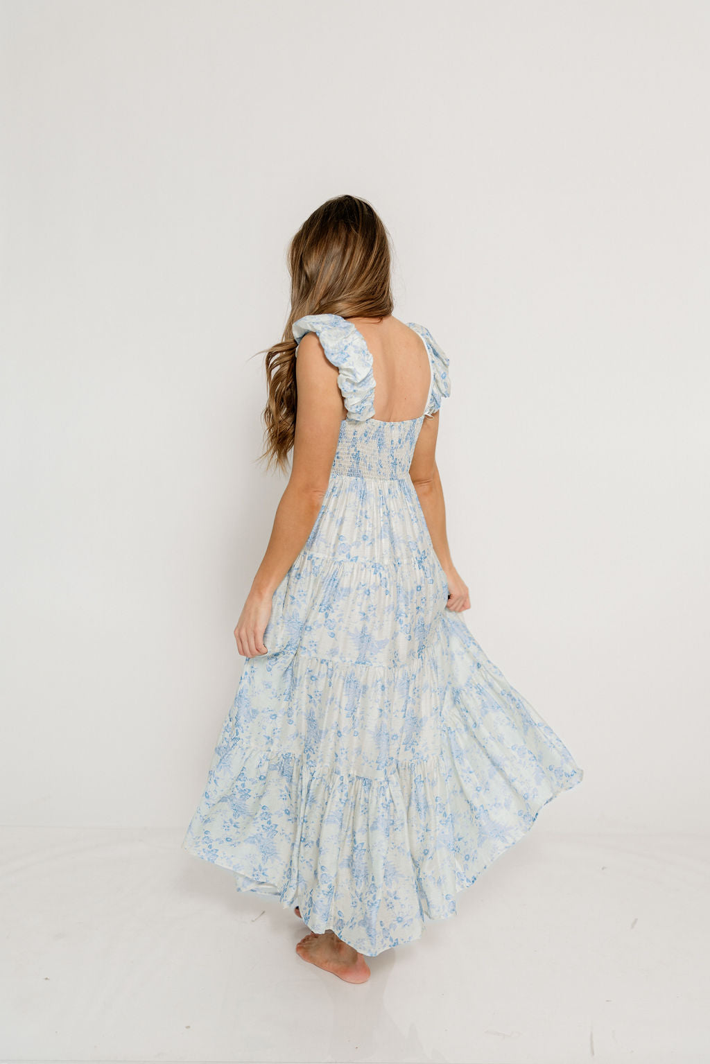 Katy Pleated Bodice Maxi Dress in Blue Floral *1/29 PRE-ORDER*