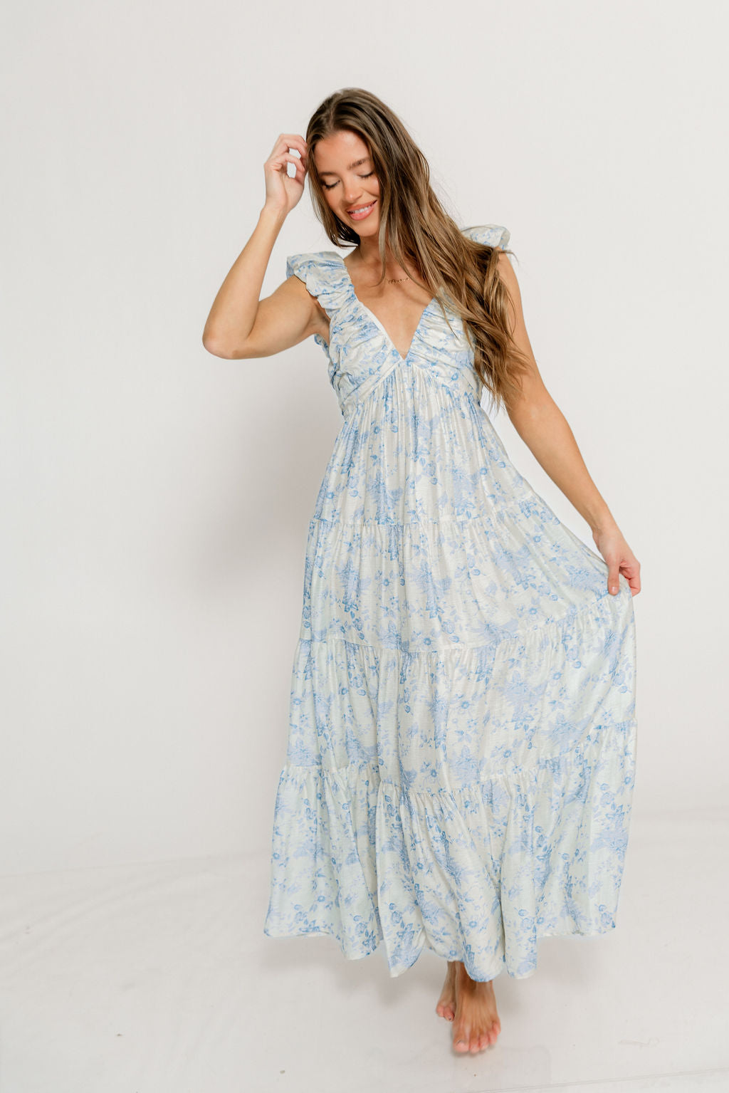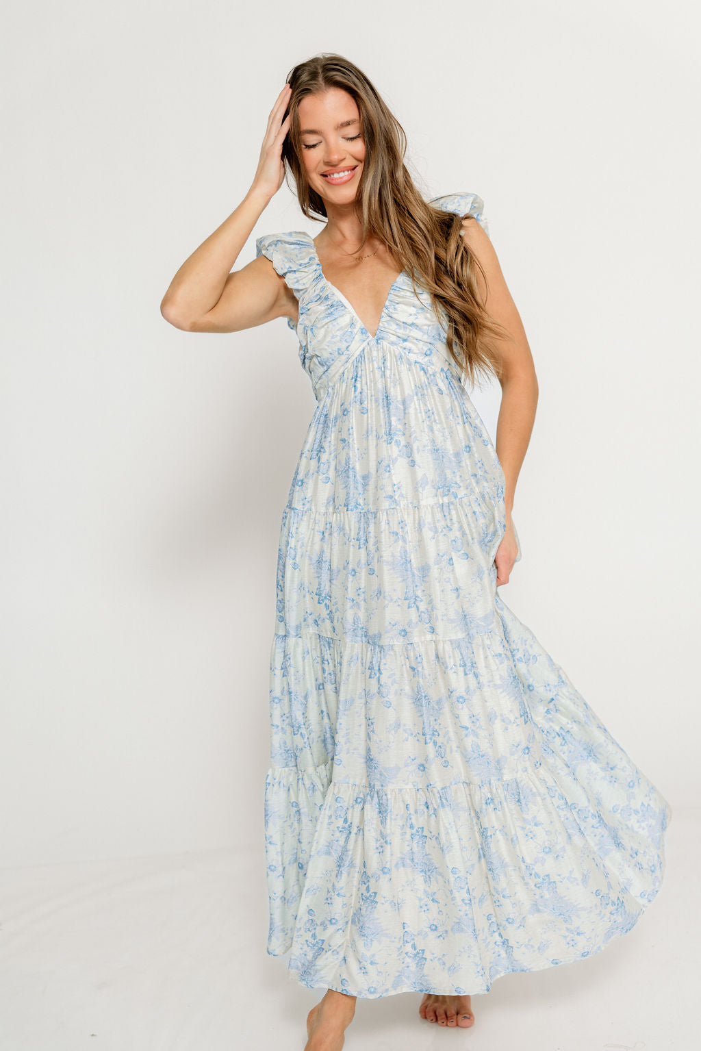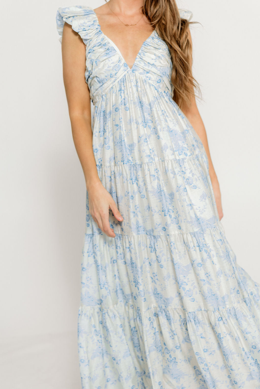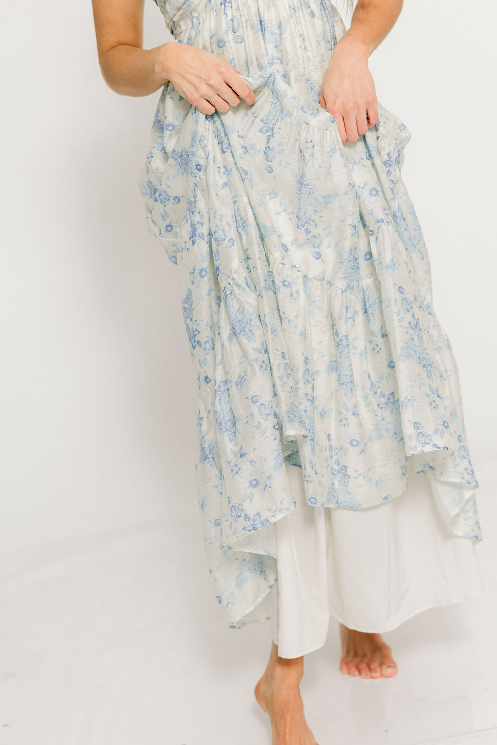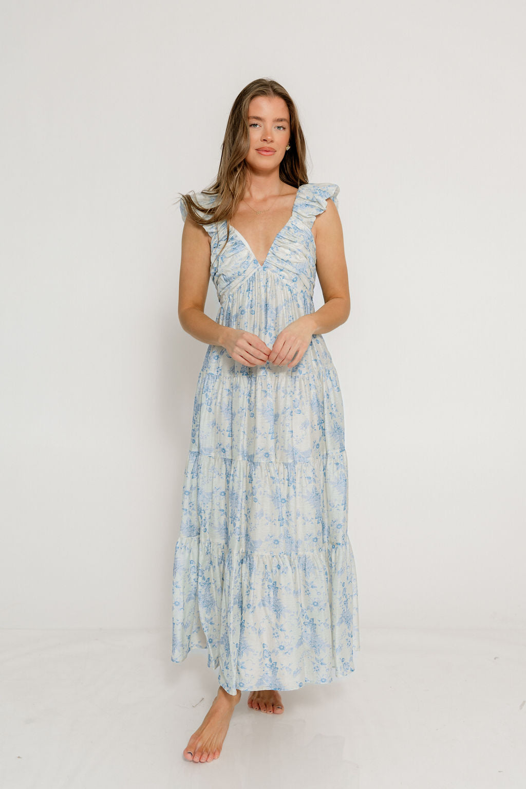 Katy Pleated Bodice Maxi Dress in Blue Floral *1/29 PRE-ORDER*