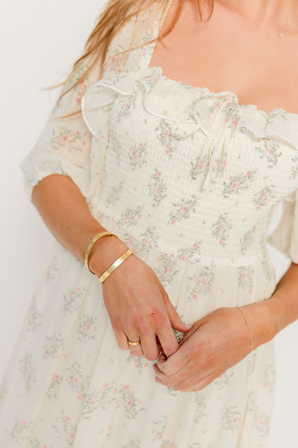 Elle Smocked Floral Ruffle Maxi Dress in Creme Floral