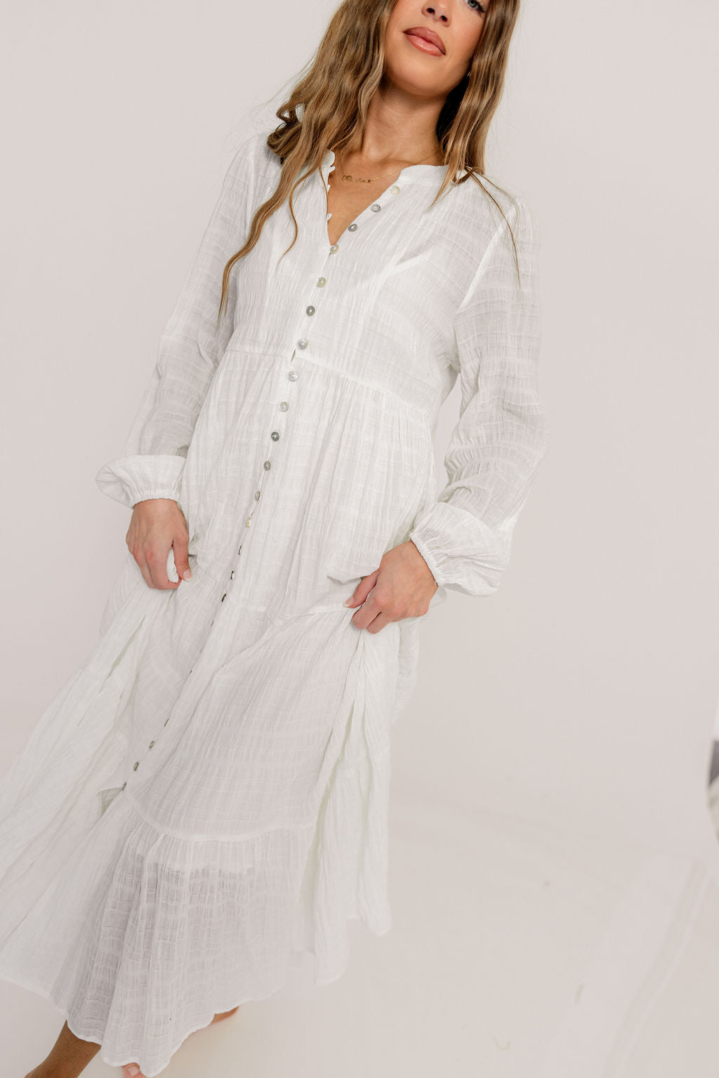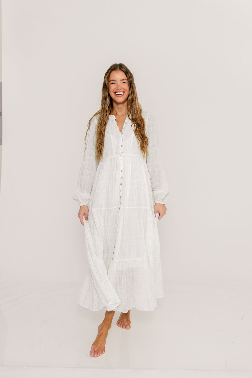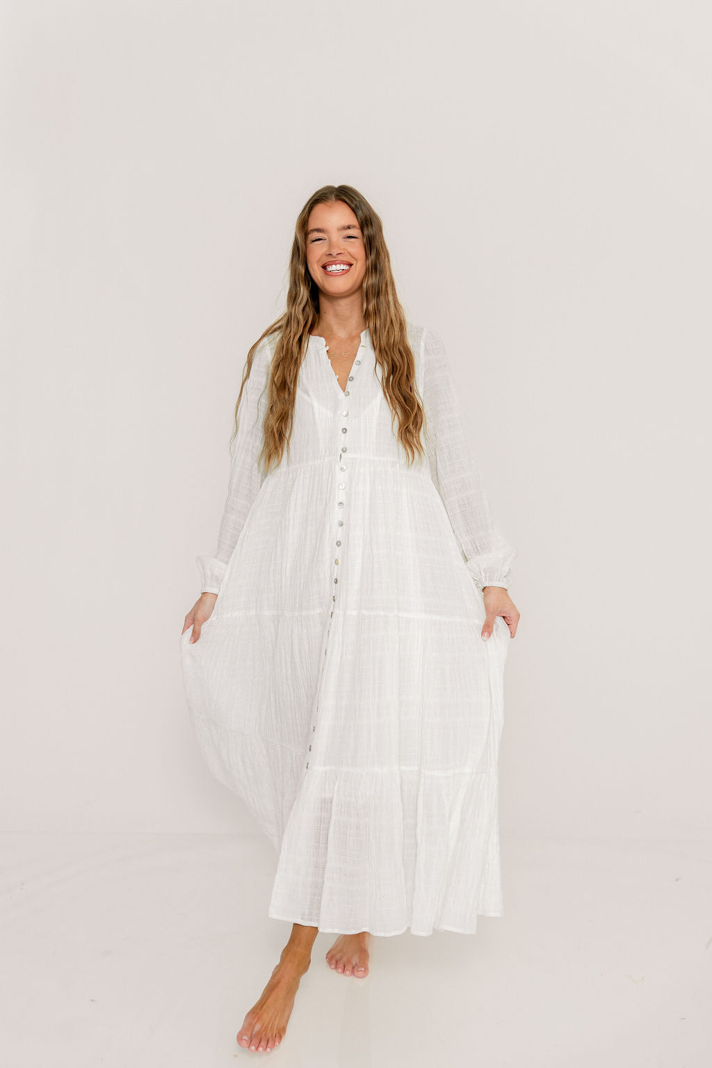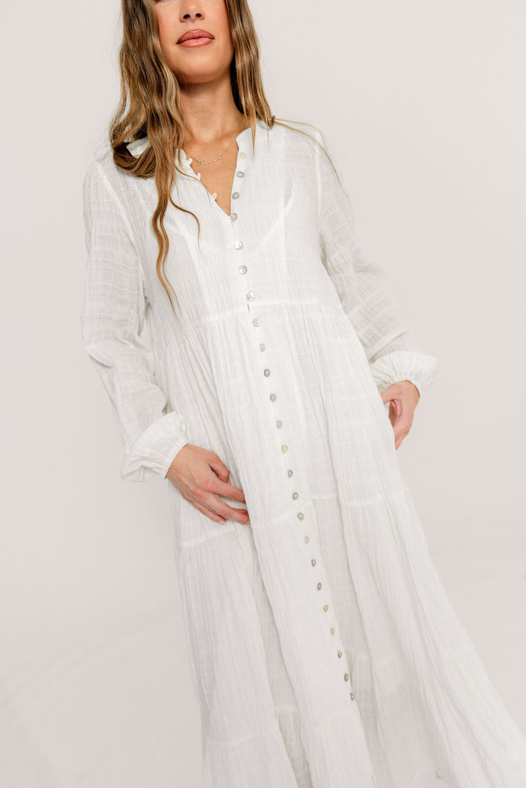 Hanna Cotton Blend Button Down Maxi Dress in Ivory - Bump Friendly *2/4 PRE-ORDER*