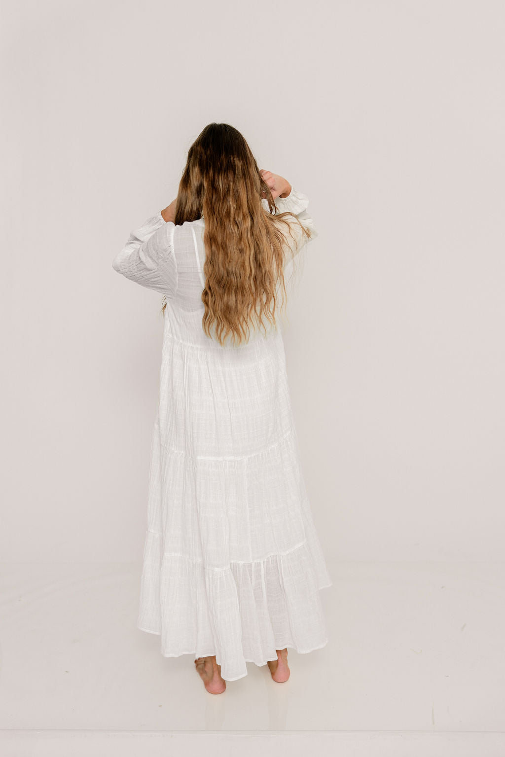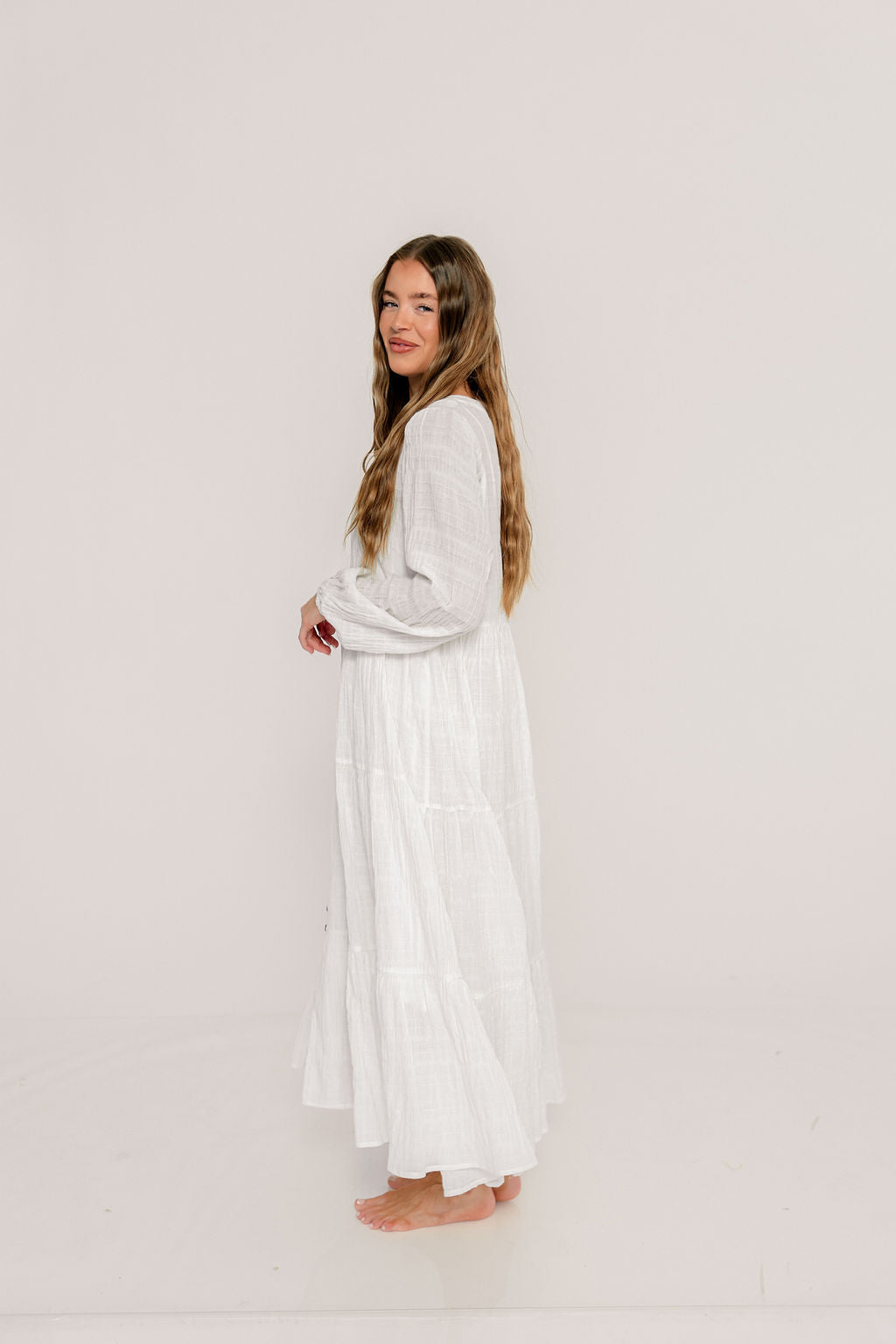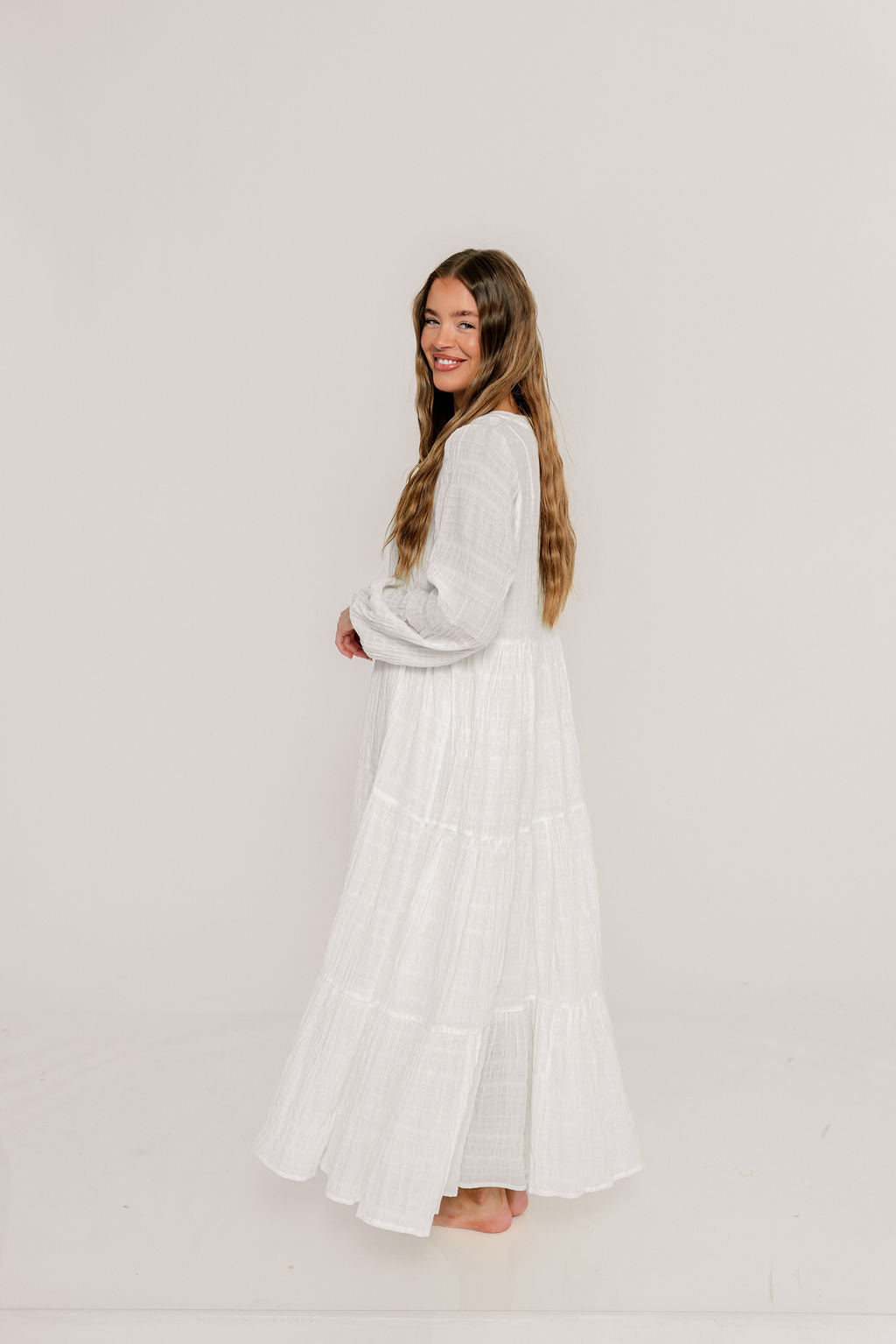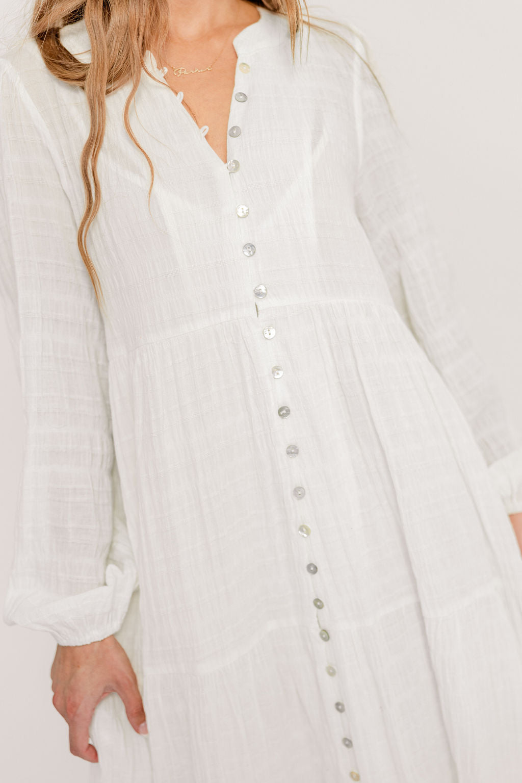 Hanna Cotton Blend Button Down Maxi Dress in Ivory - Bump Friendly *2/4 PRE-ORDER*