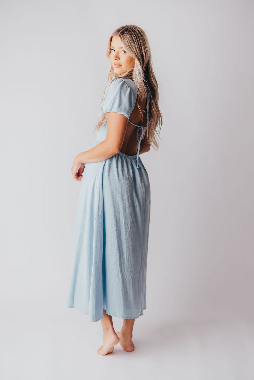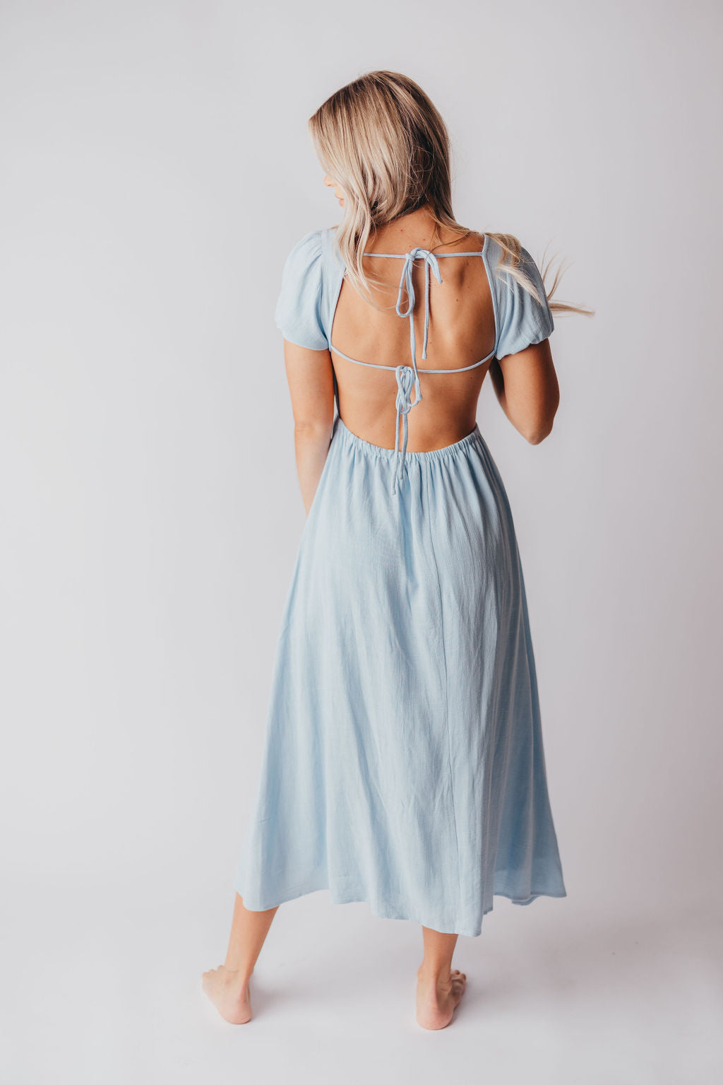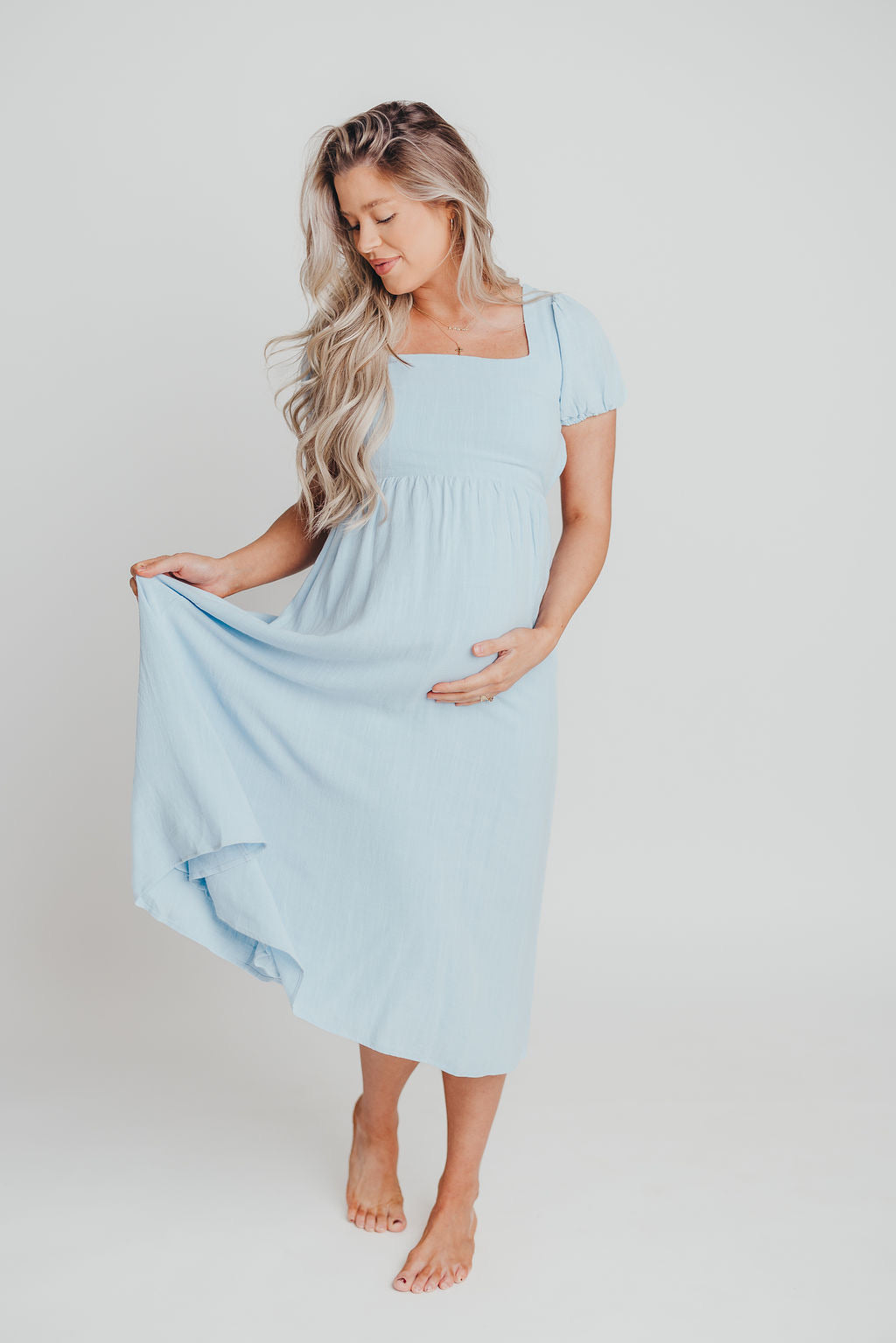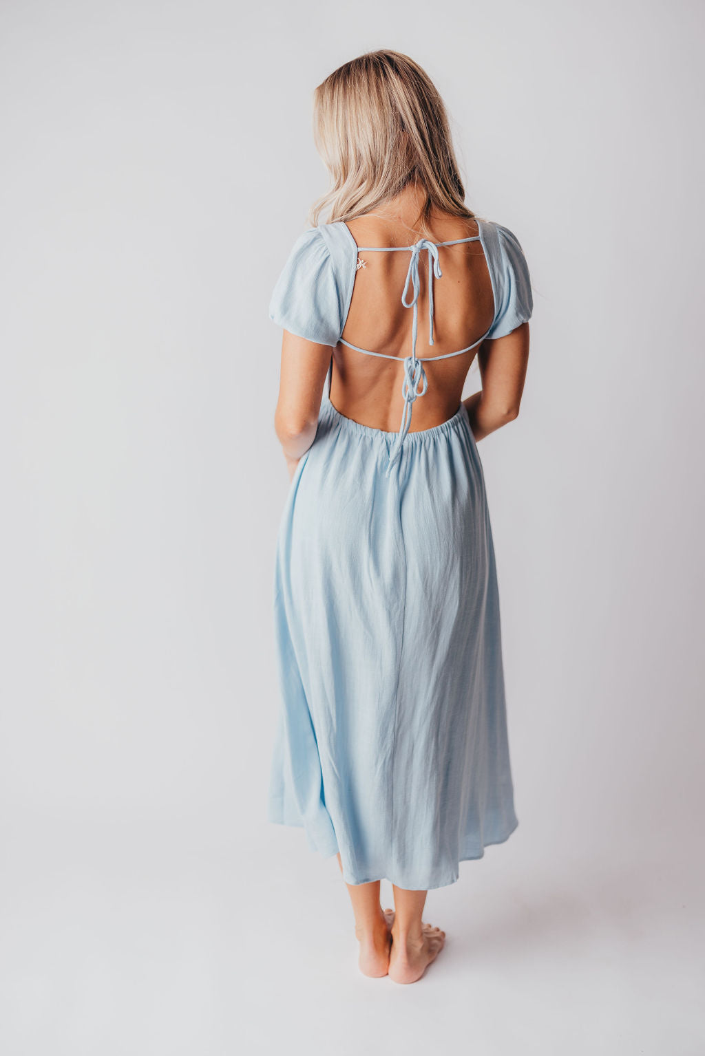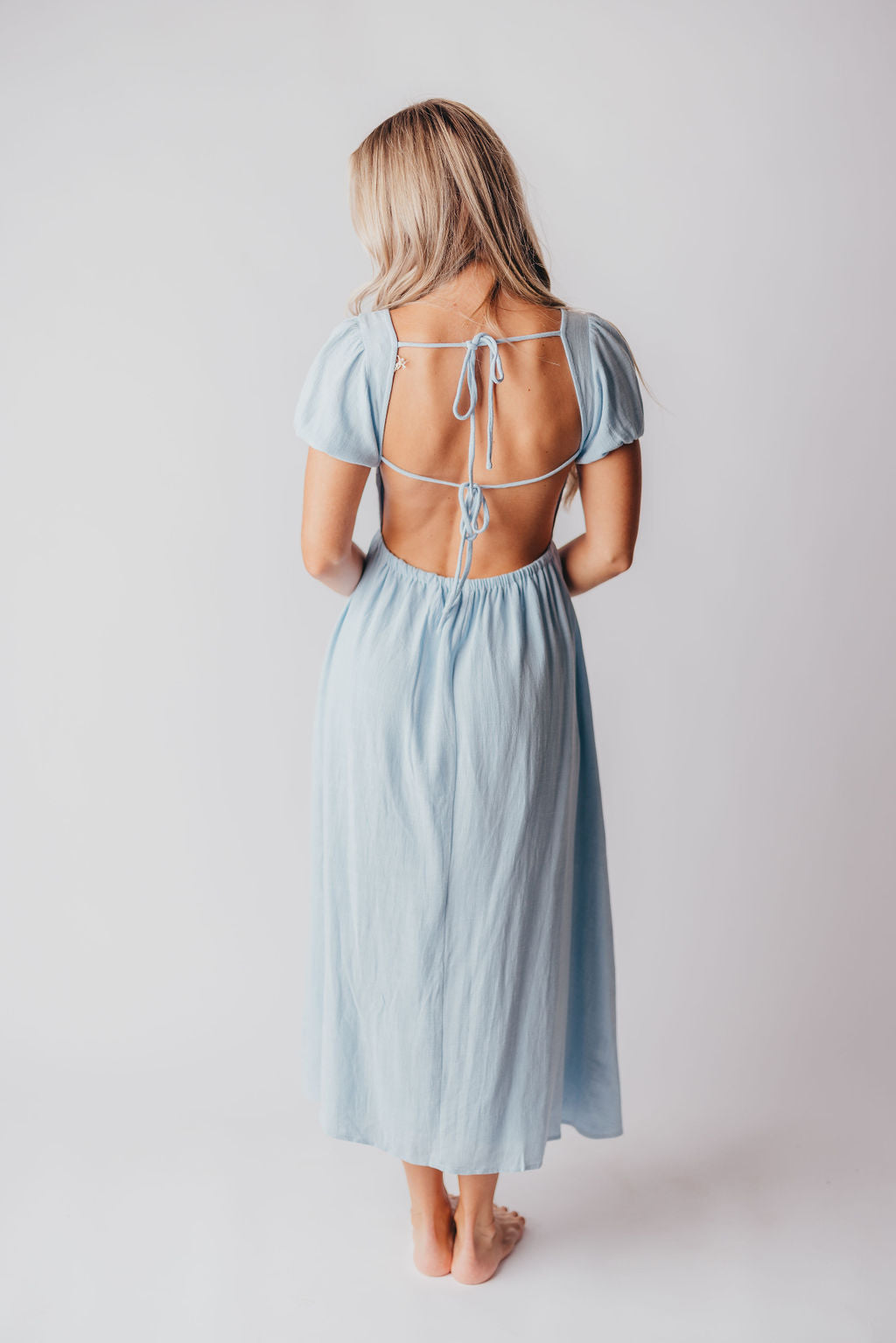August Open Back Midi Dress in Baby Blue - Bump Friendly *2/27 PRE-ORDER*