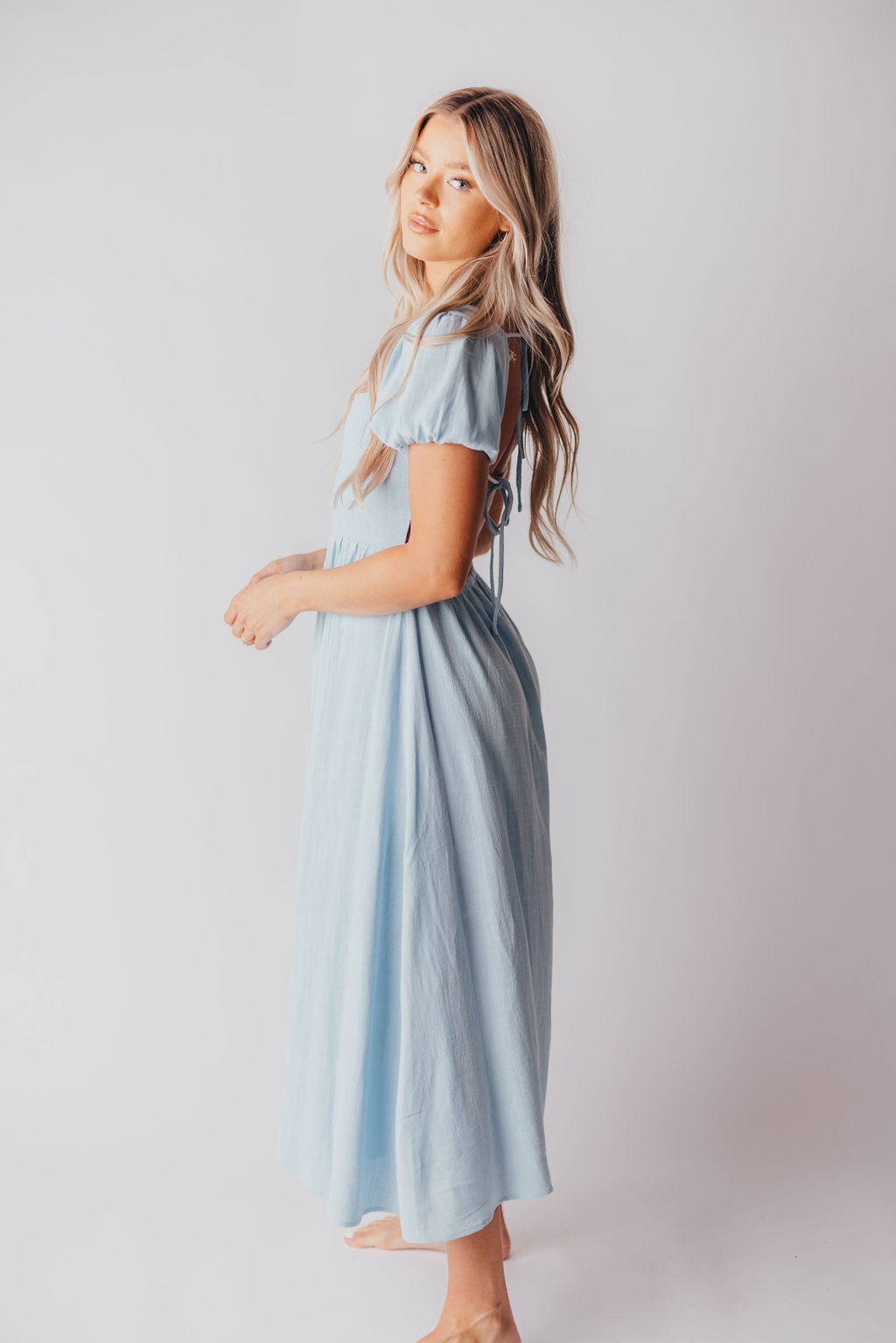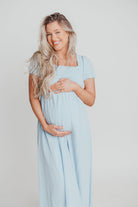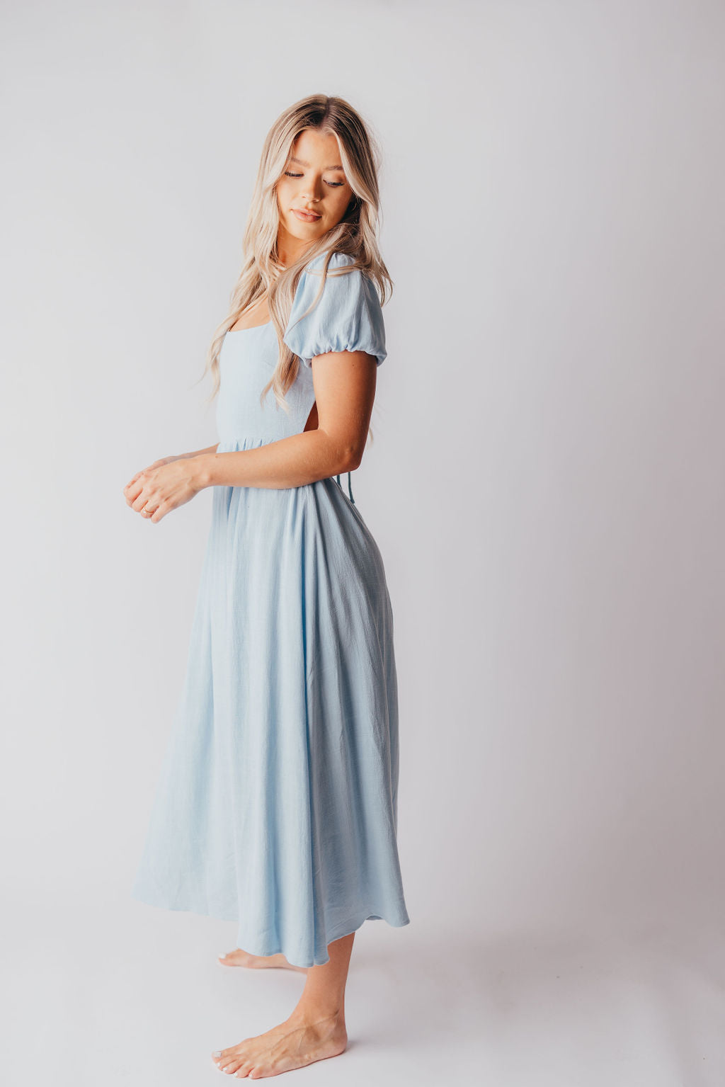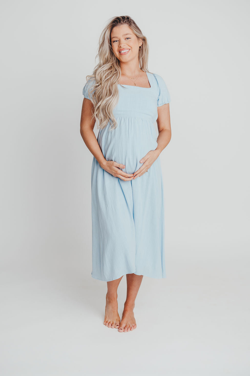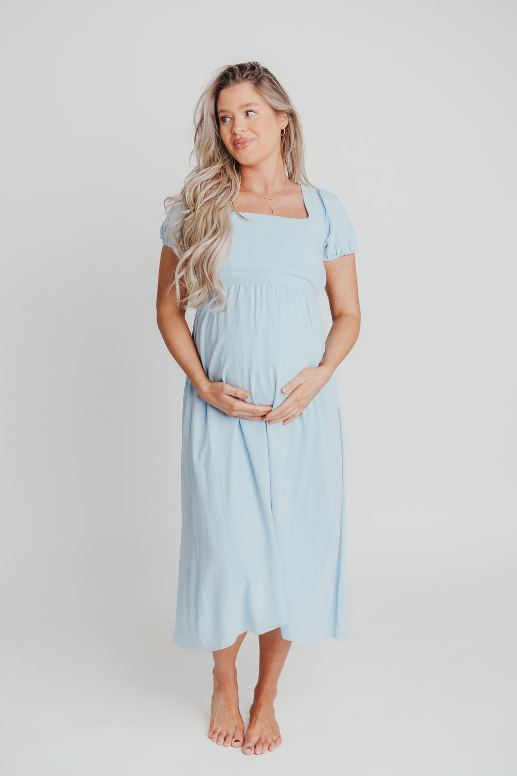 August Open Back Midi Dress in Baby Blue - Bump Friendly *2/27 PRE-ORDER*