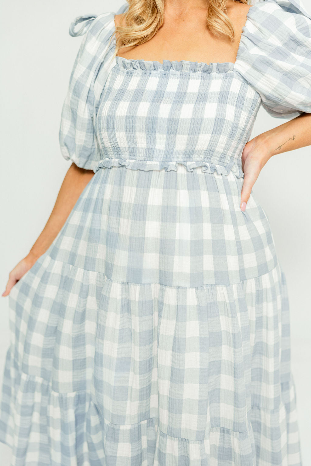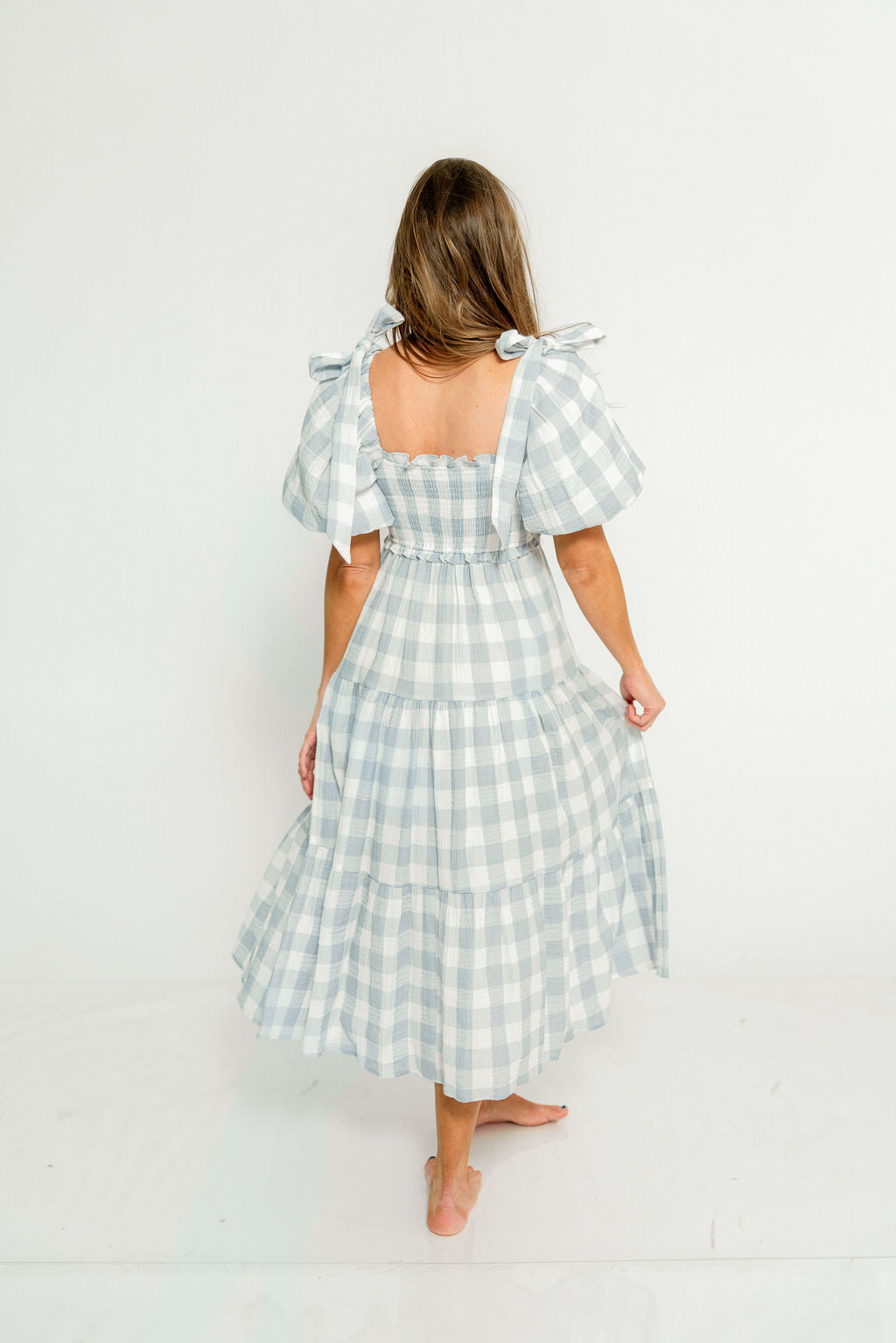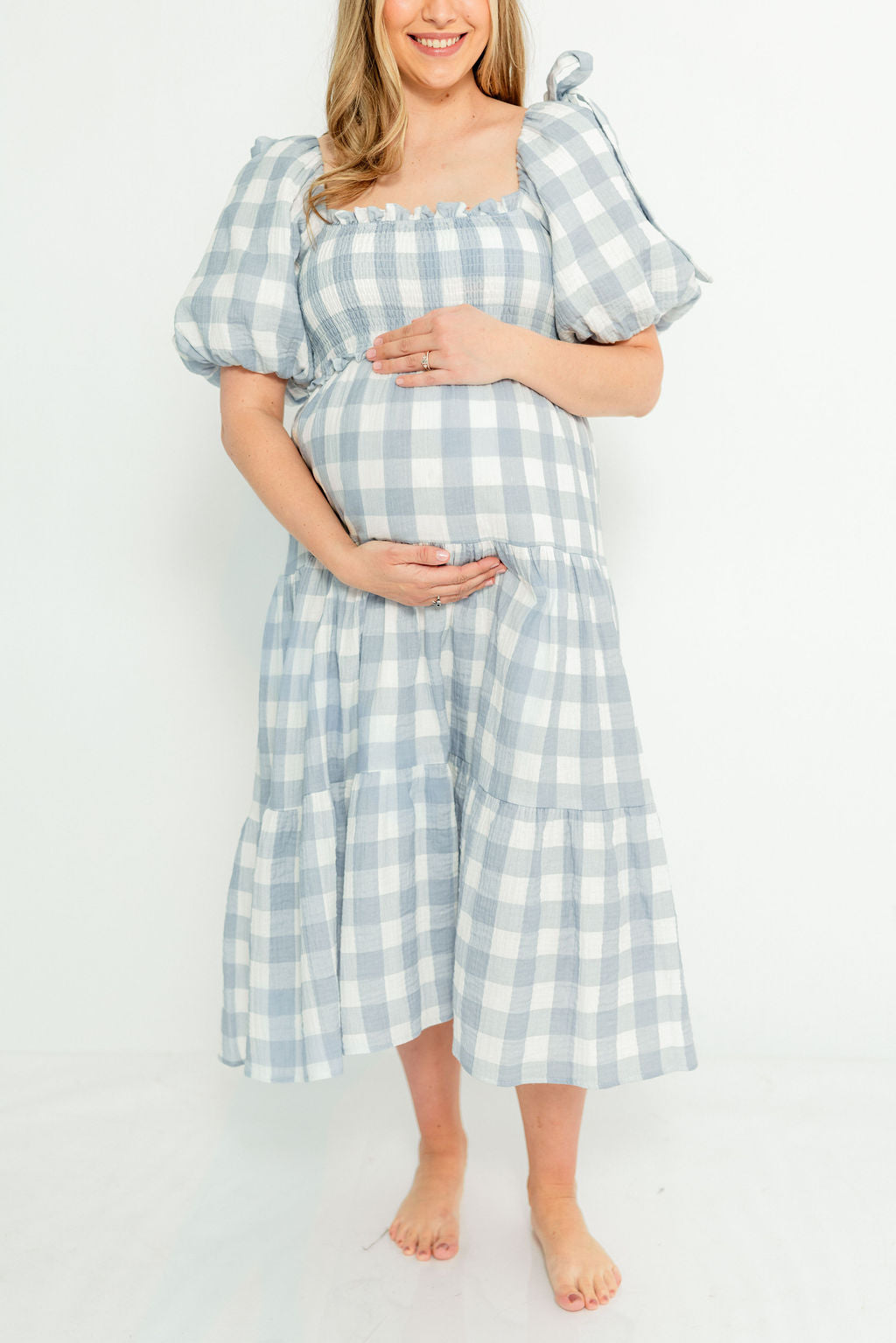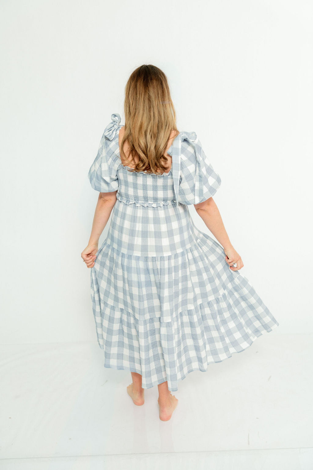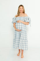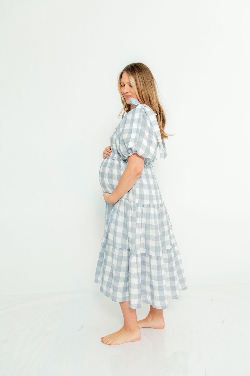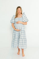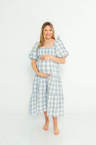 Elena 100% Cotton Gingham Midi Dress in Dusty Blue - Bump Friendly & Inclusive Sizing *2/9 PRE-ORDER*
