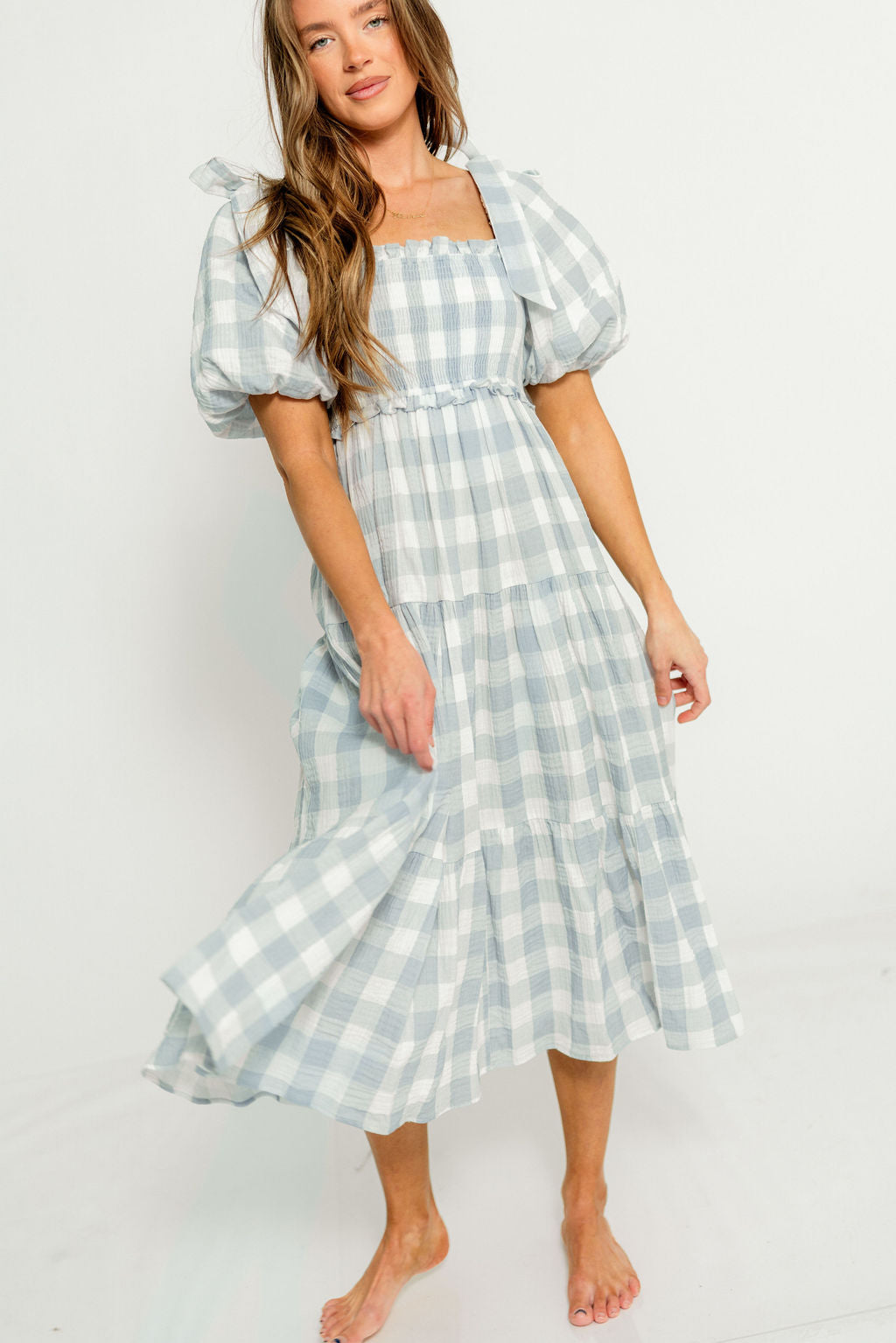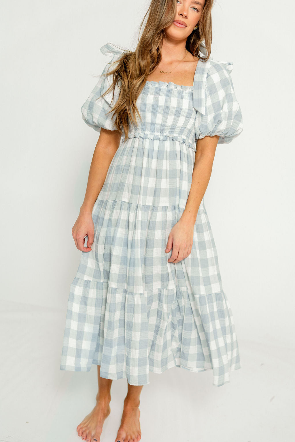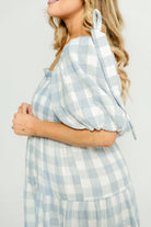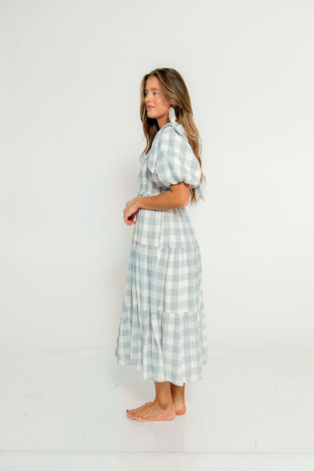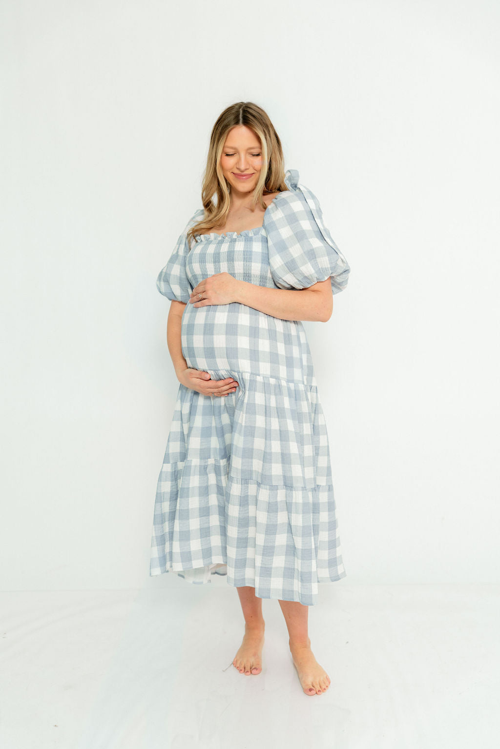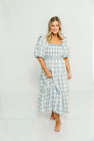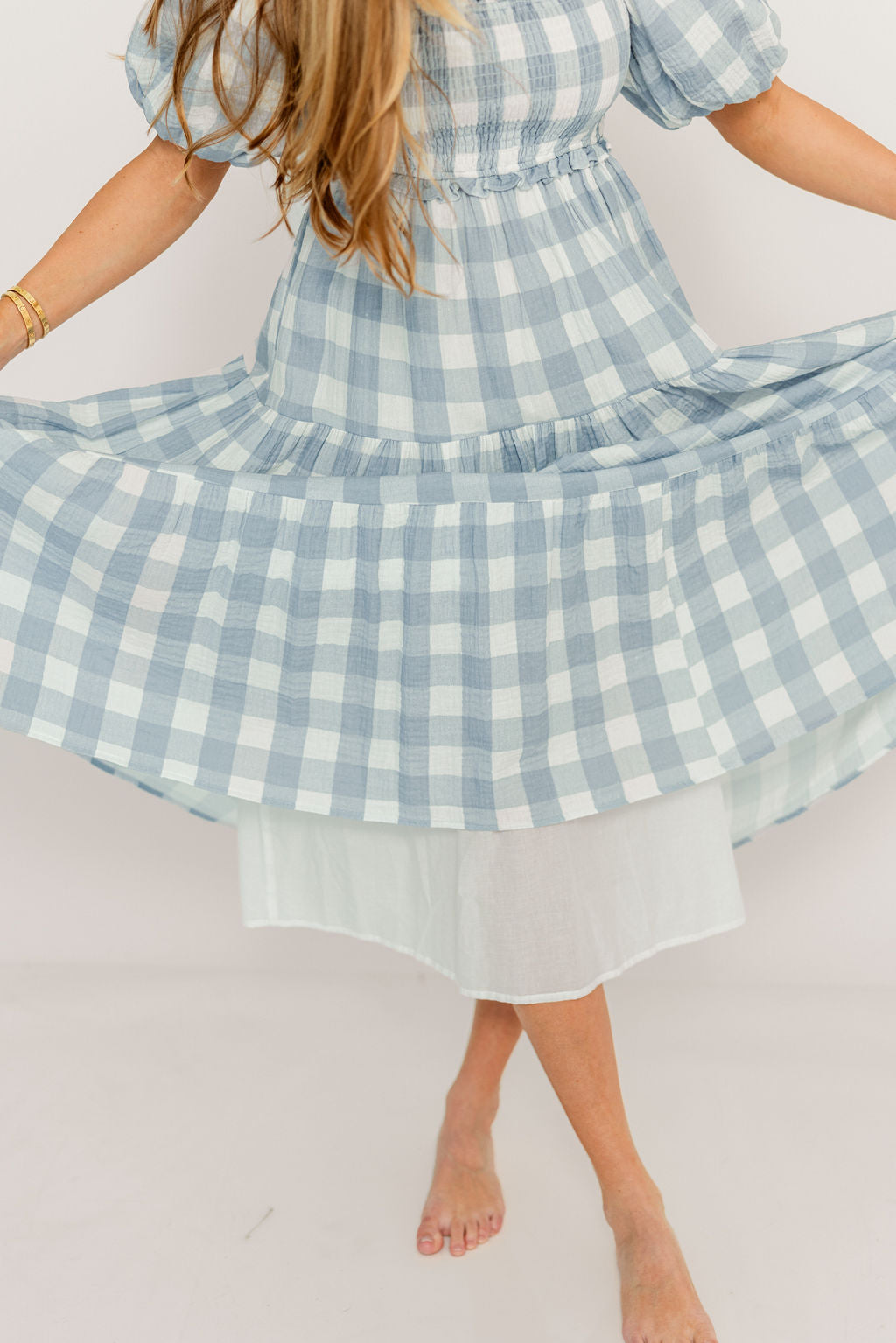Elena 100% Cotton Gingham Midi Dress in Dusty Blue - Bump Friendly & Inclusive Sizing *2/9 PRE-ORDER*