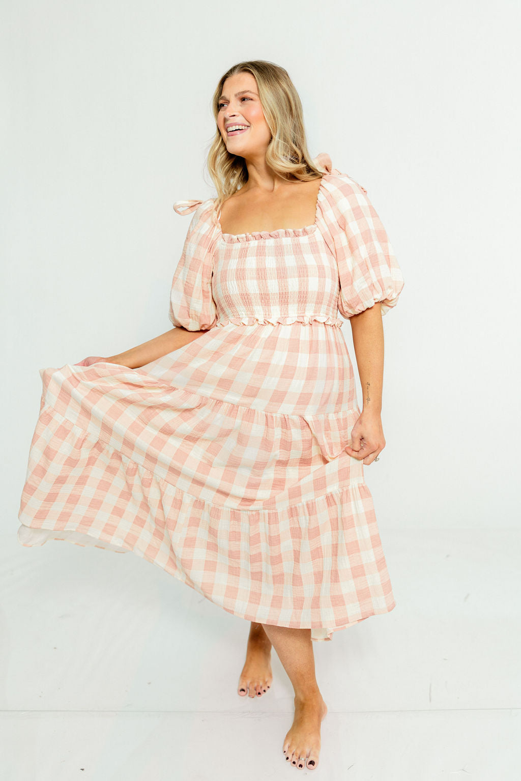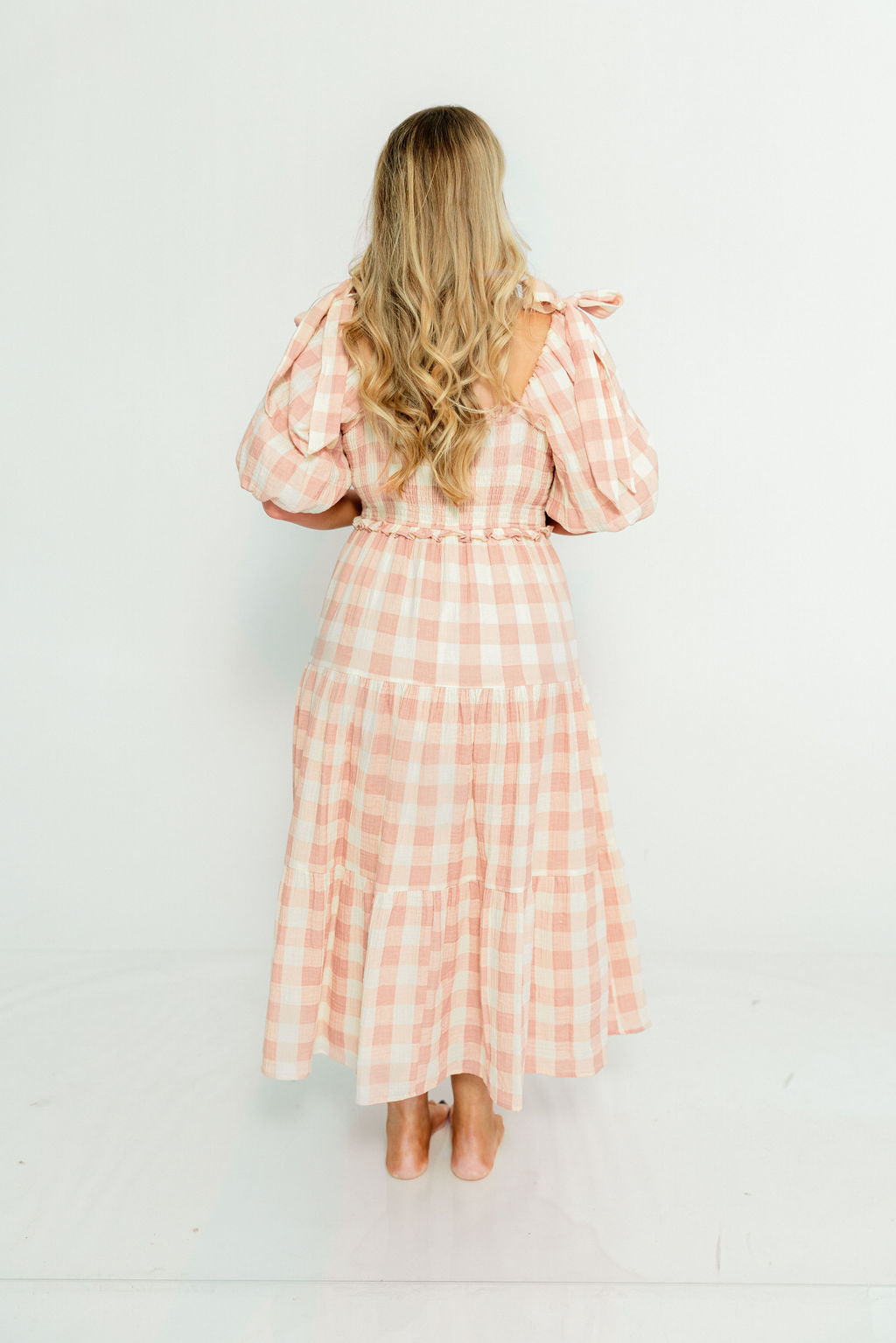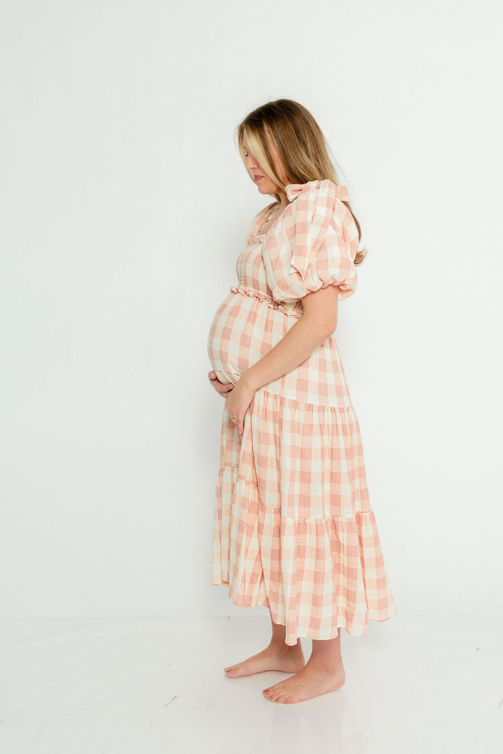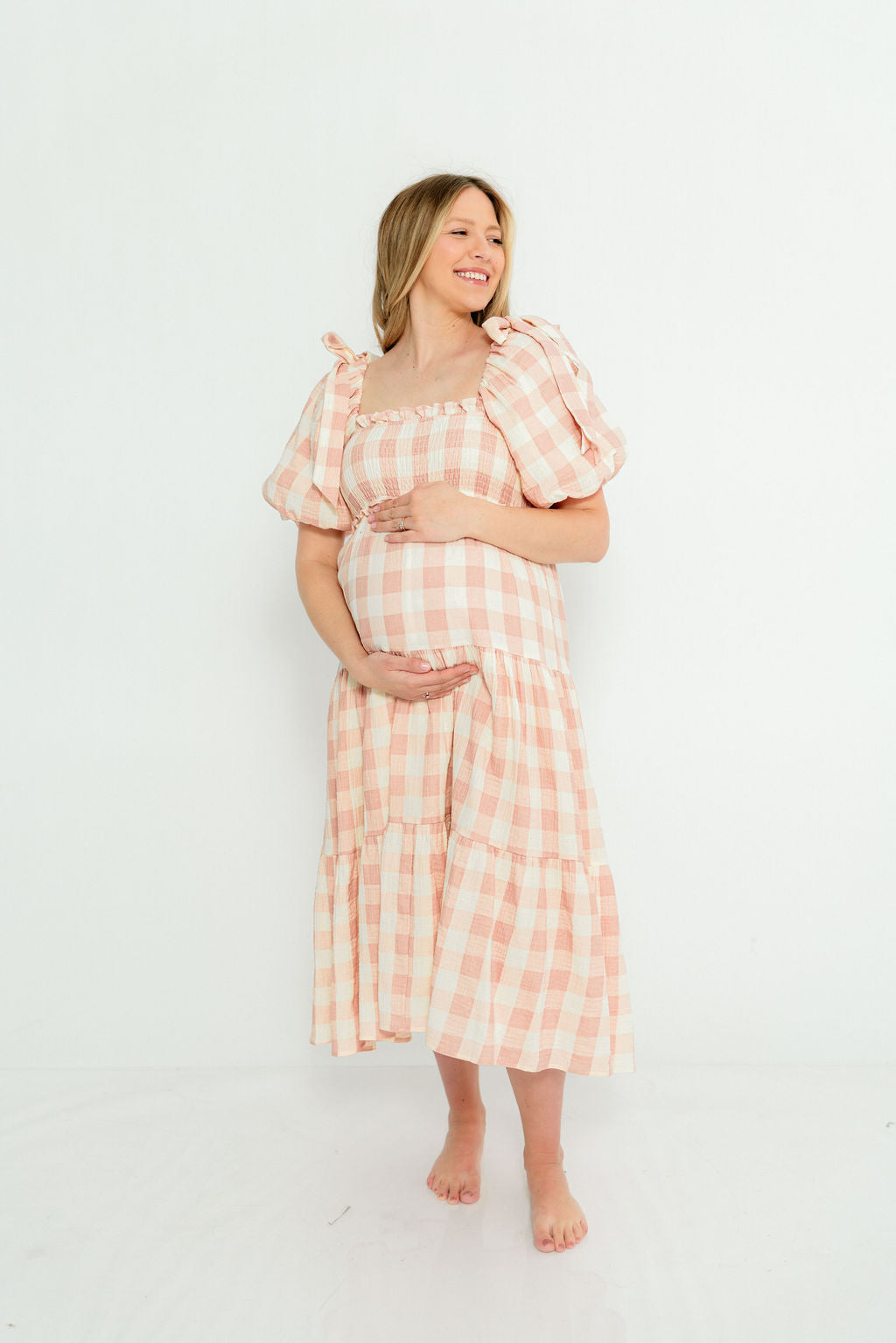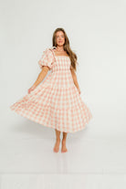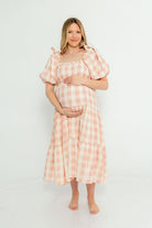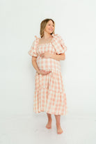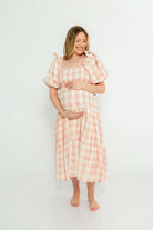 Elena 100% Cotton Gingham Midi Dress in Dusty Pink - Bump Friendly & Inclusive Sizing *2/9 PRE-ORDER*