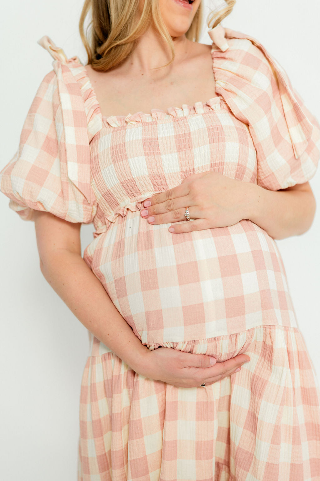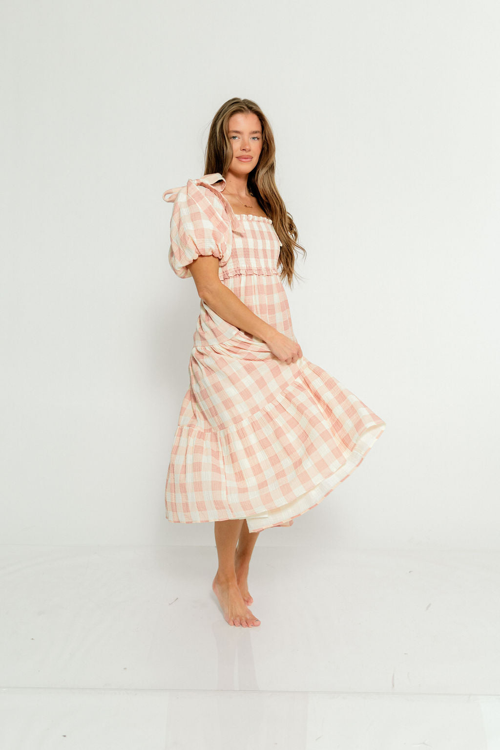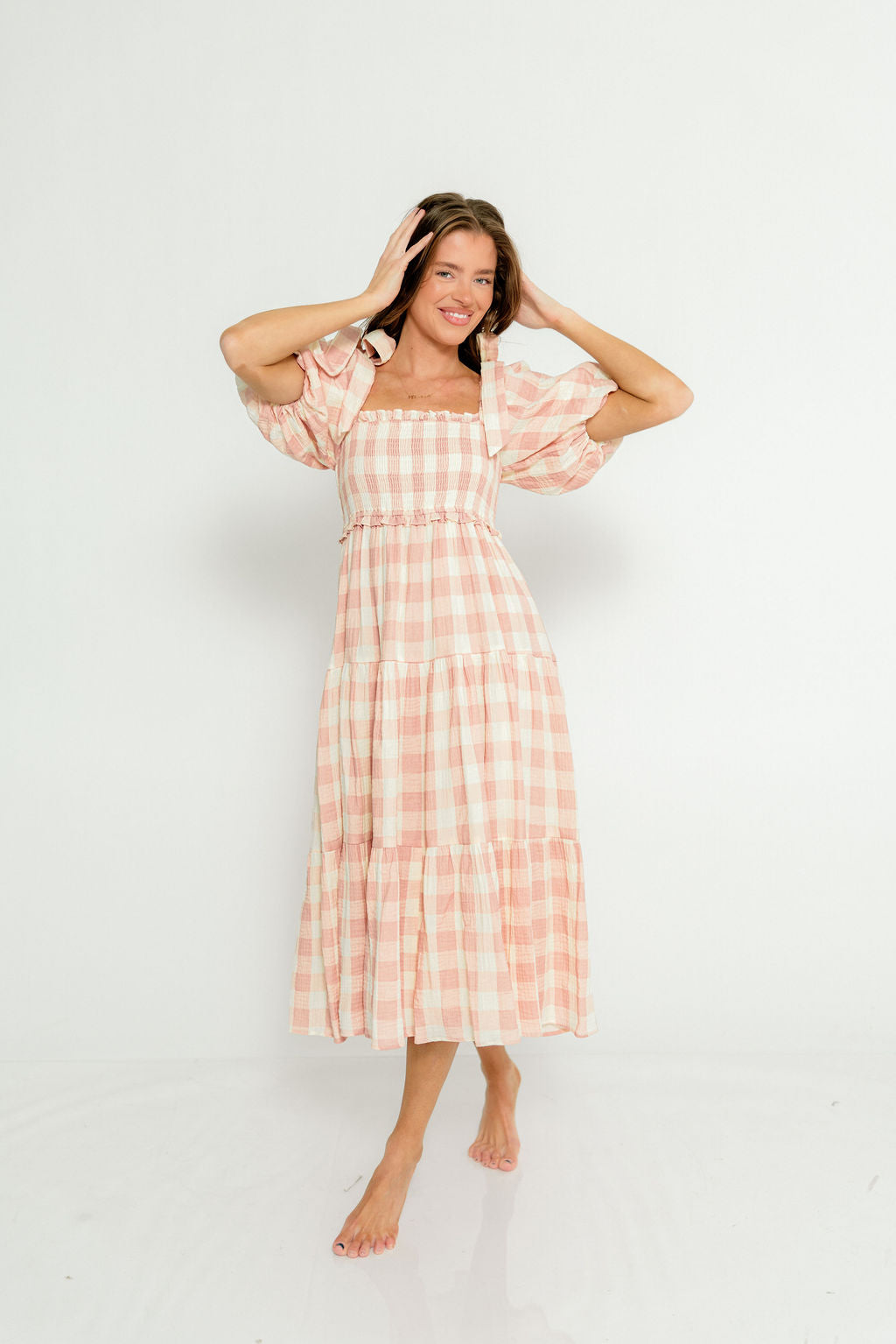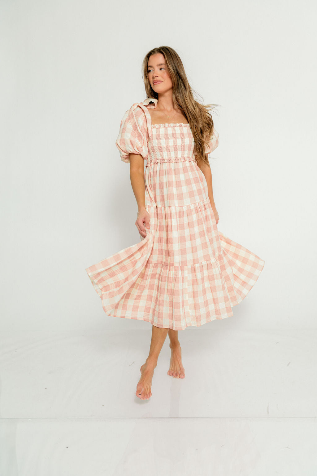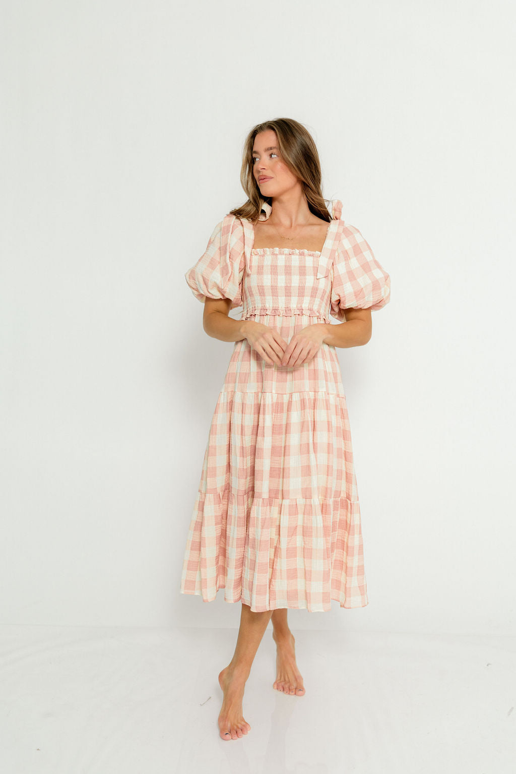 Elena 100% Cotton Gingham Midi Dress in Dusty Pink - Bump Friendly & Inclusive Sizing *2/9 PRE-ORDER*