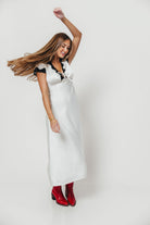 The elegant Vivienne Dress will turn heads at any event! This silky satin midi features delicate lace trim and a deep V-neck, highlighting your curves and making the Vivienne an easy choice for dressing up this season.