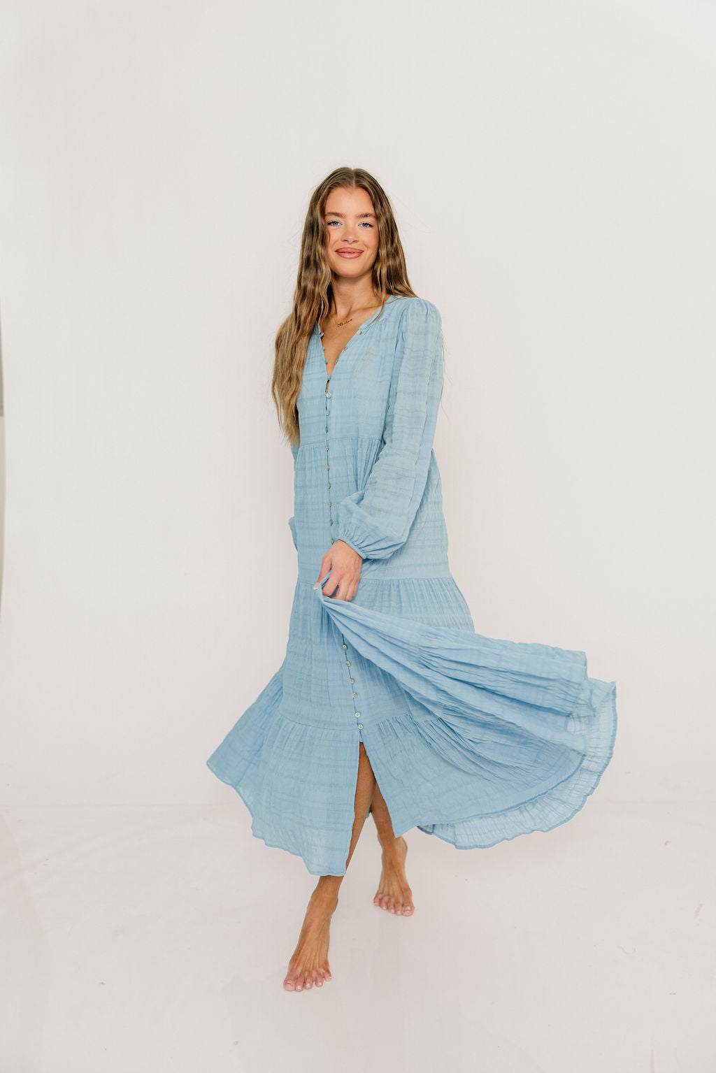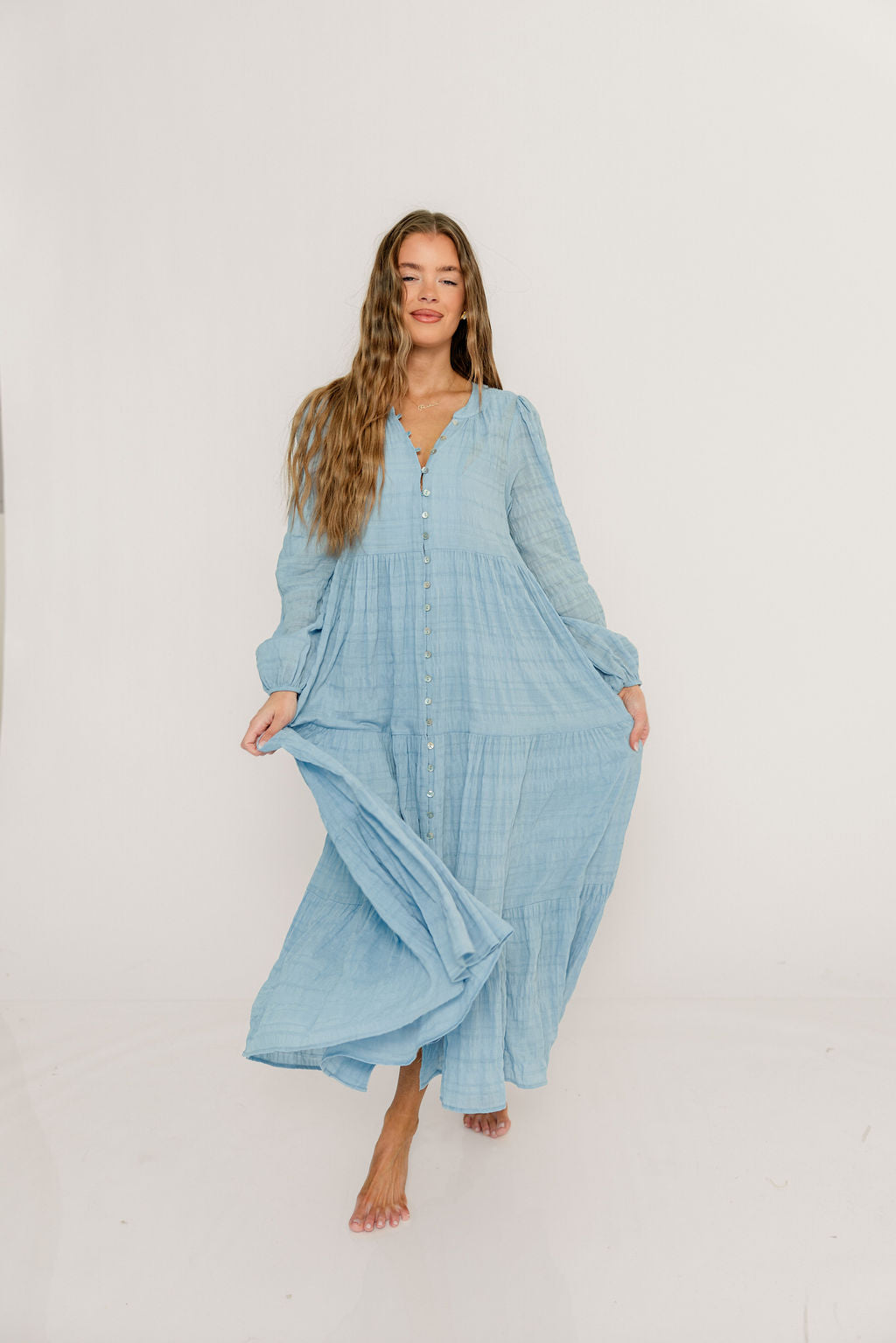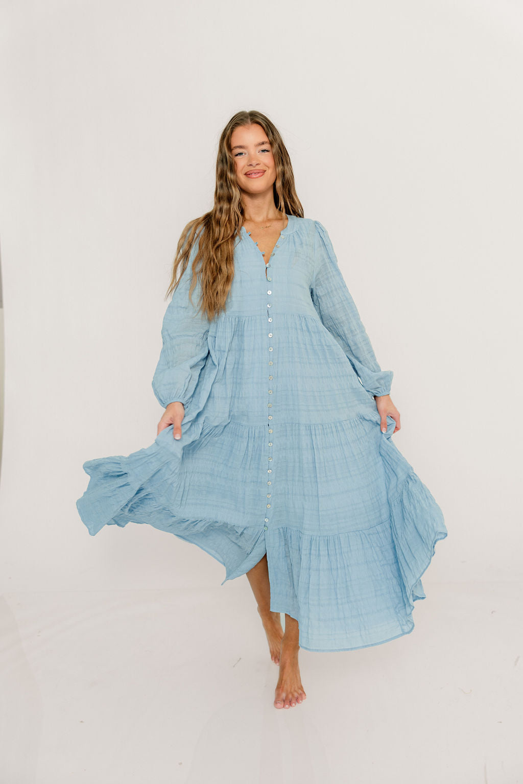 Hanna Cotton Blend Button Down Maxi Dress in Baby Blue - Bump Friendly *2/4 PRE-ORDER*
