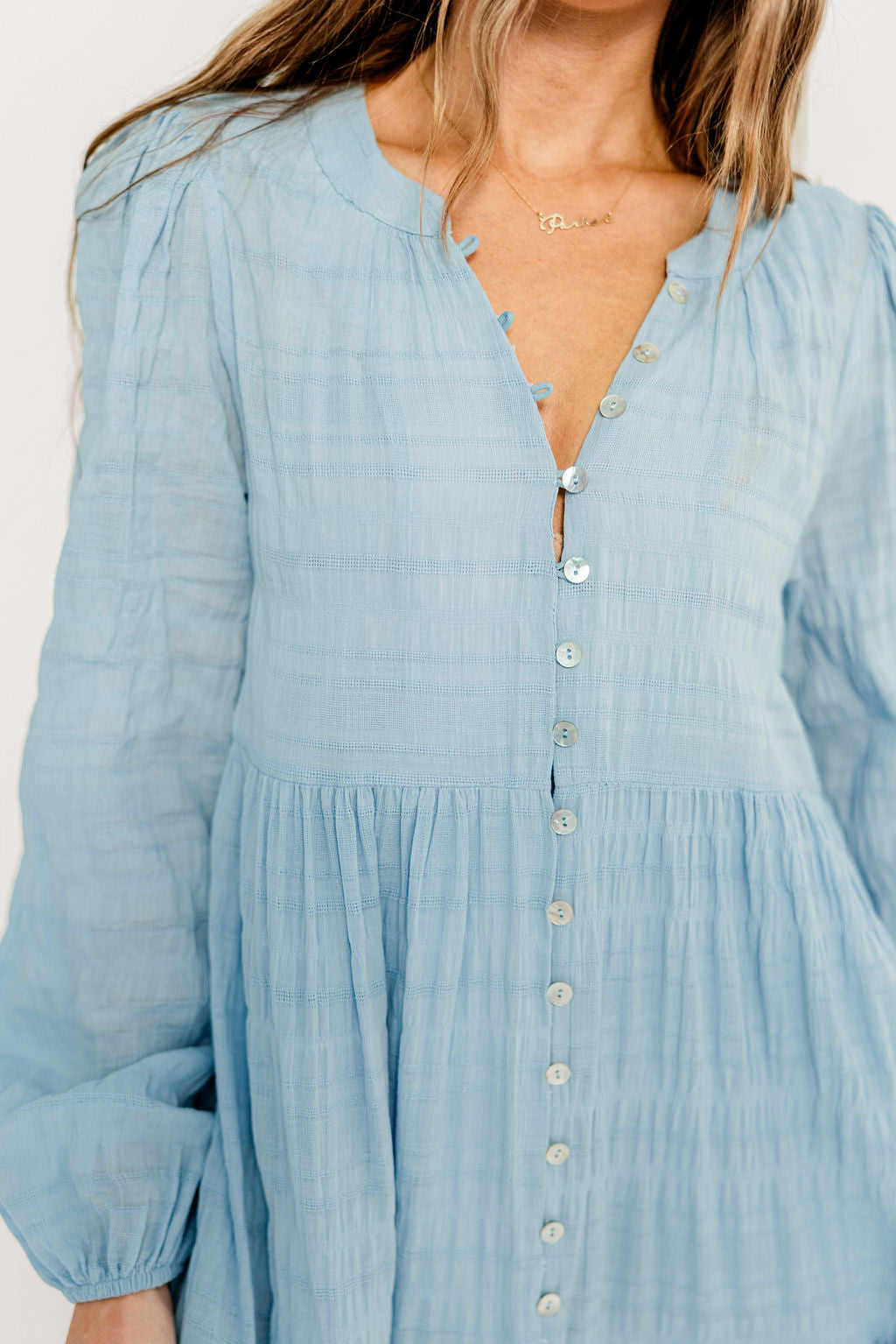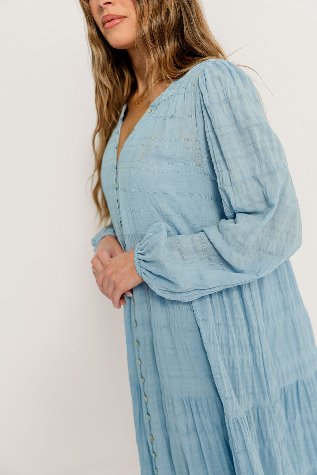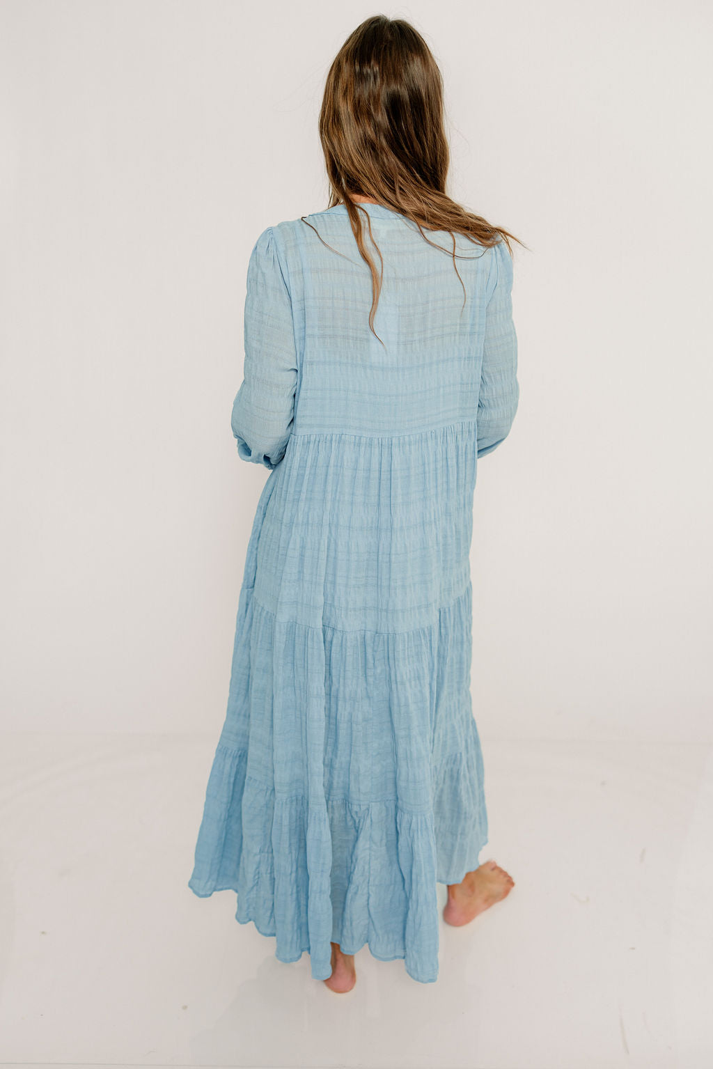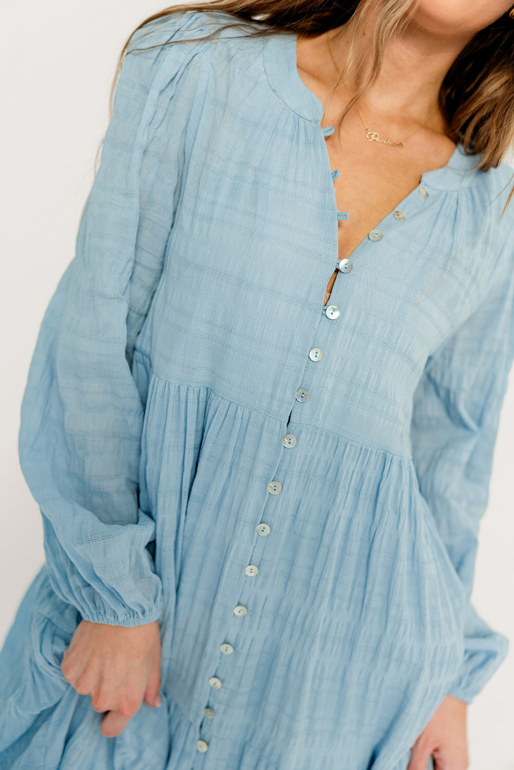 Hanna Cotton Blend Button Down Maxi Dress in Baby Blue - Bump Friendly *2/4 PRE-ORDER*