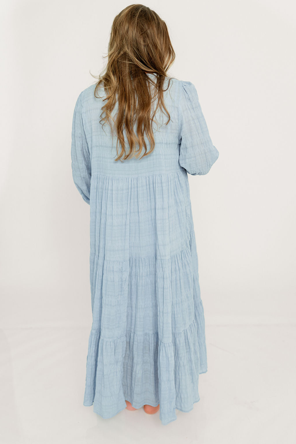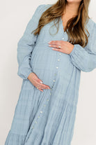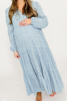 Anna Cotton-Blend Button Down Maxi Dress in Baby Blue - Bump Friendly
