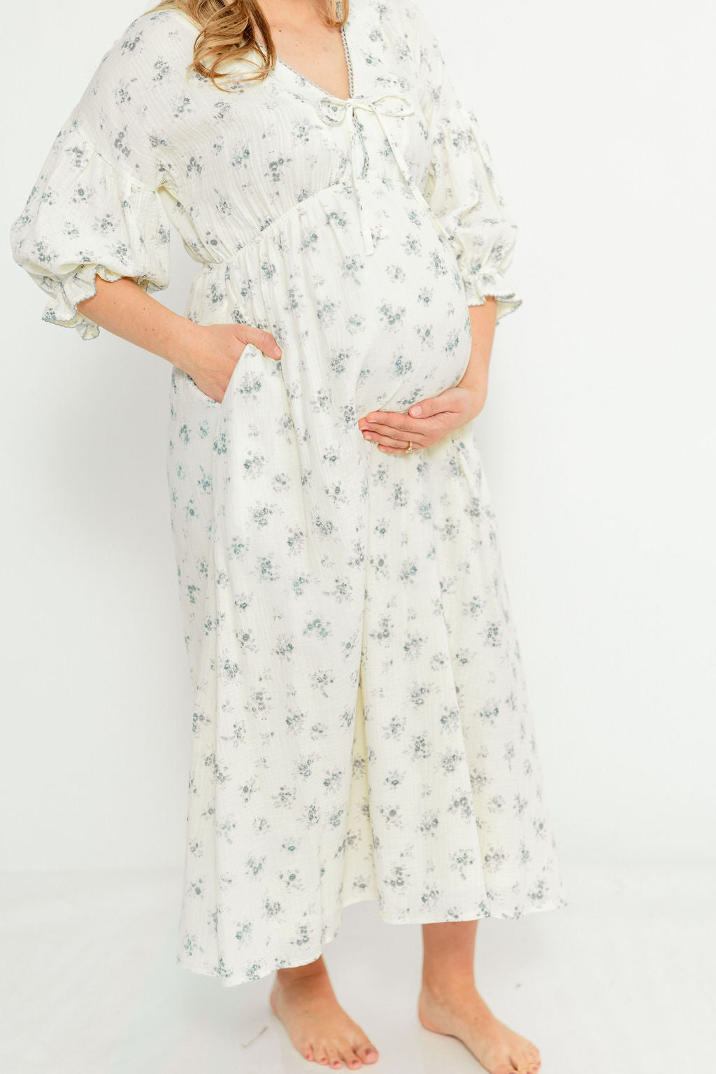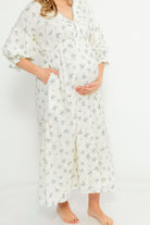 Hunter 100% Cotton Midi Dress with Trimming in Blue Floral - Bump Friendly
