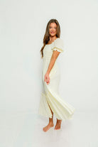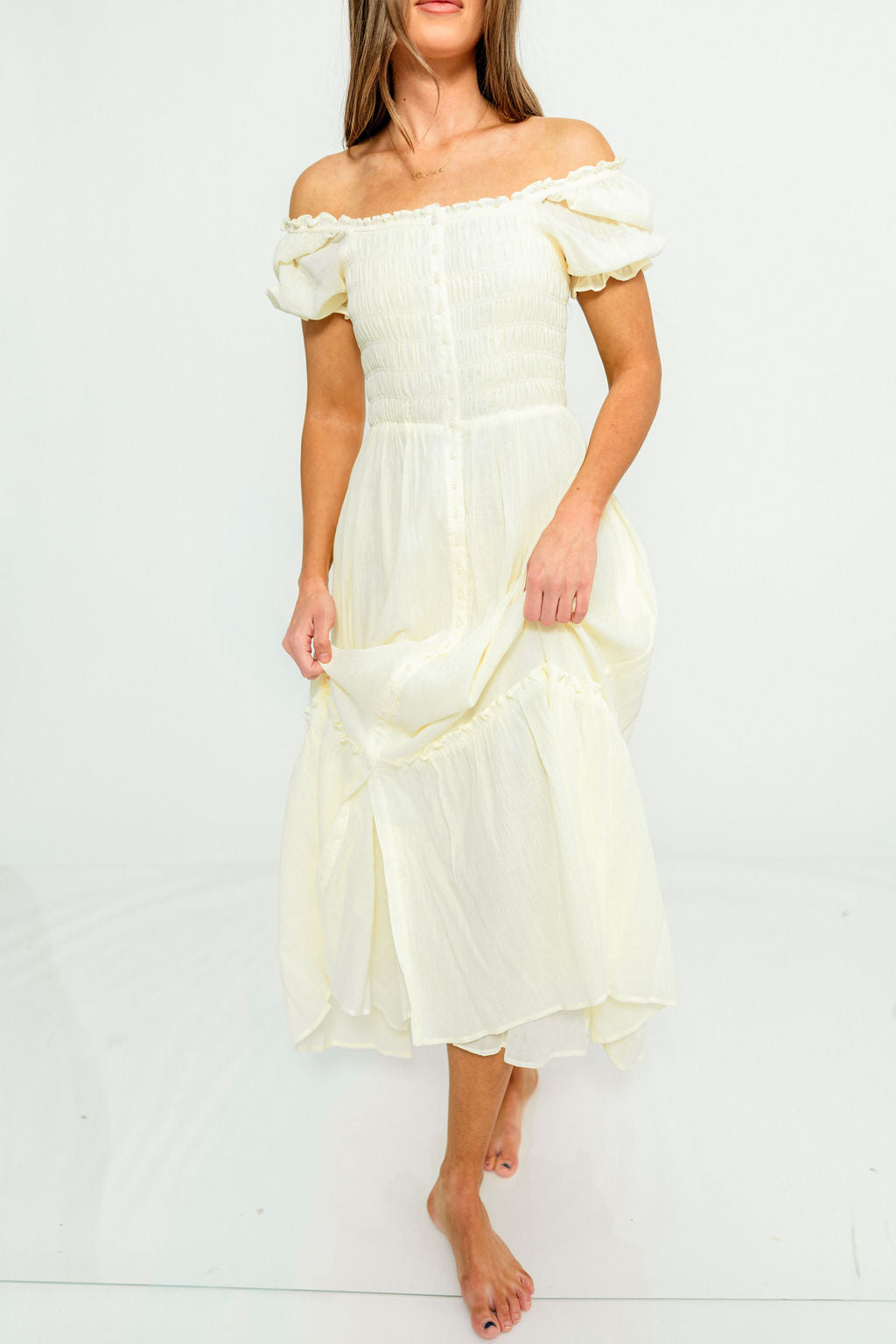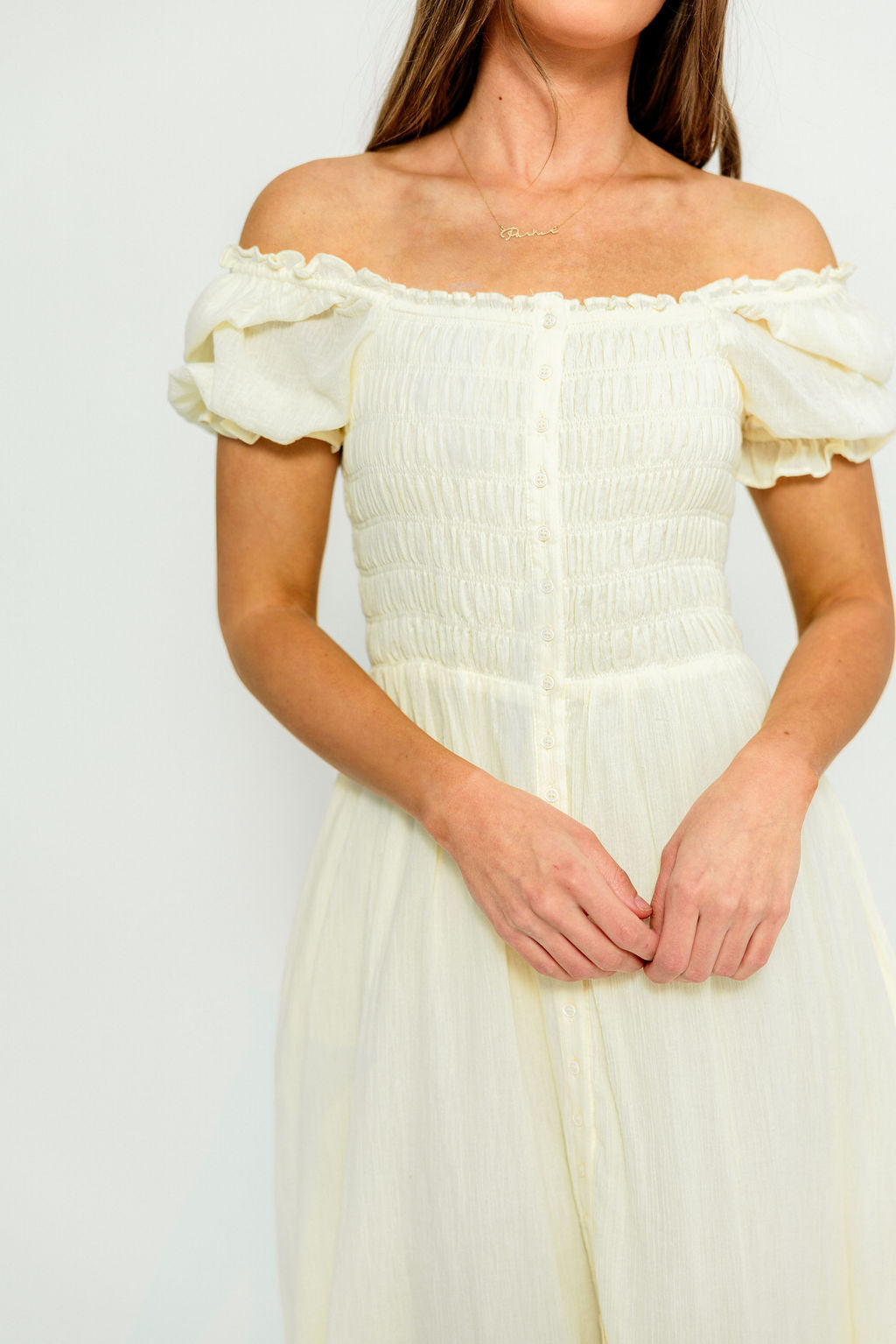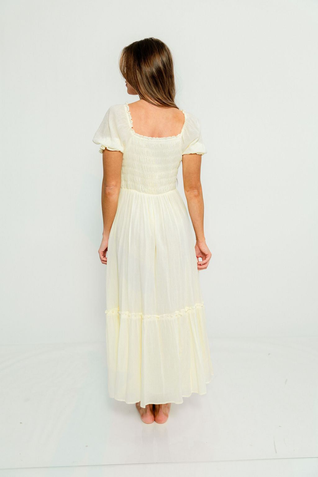 Mara Smocked Button Down Maxi Dress in Lemon Water