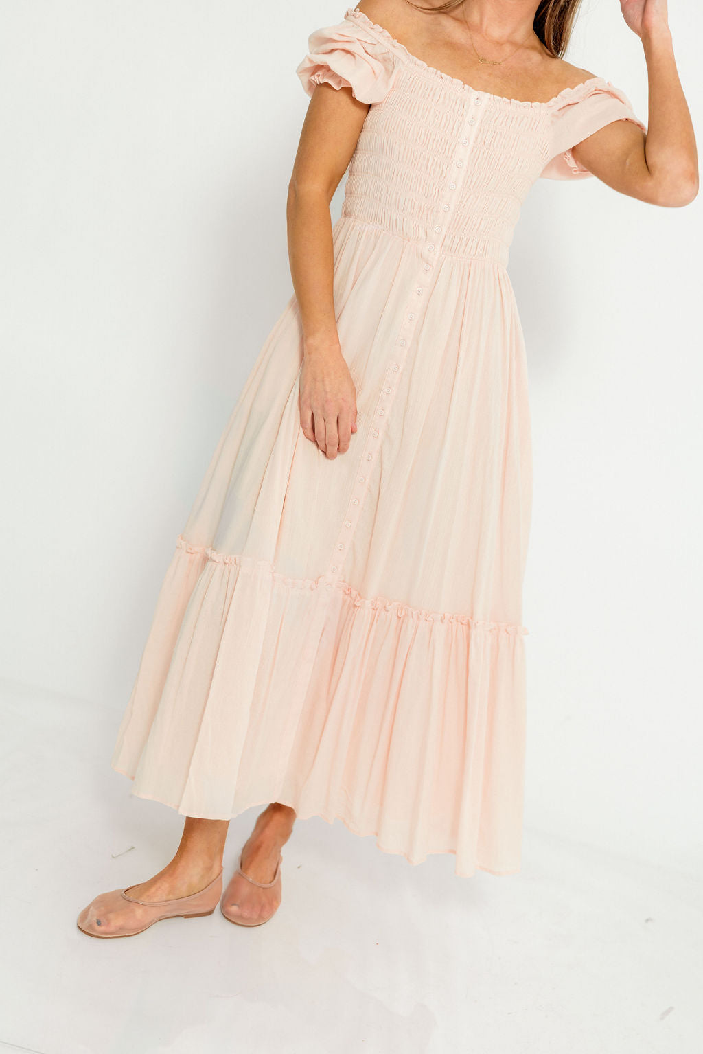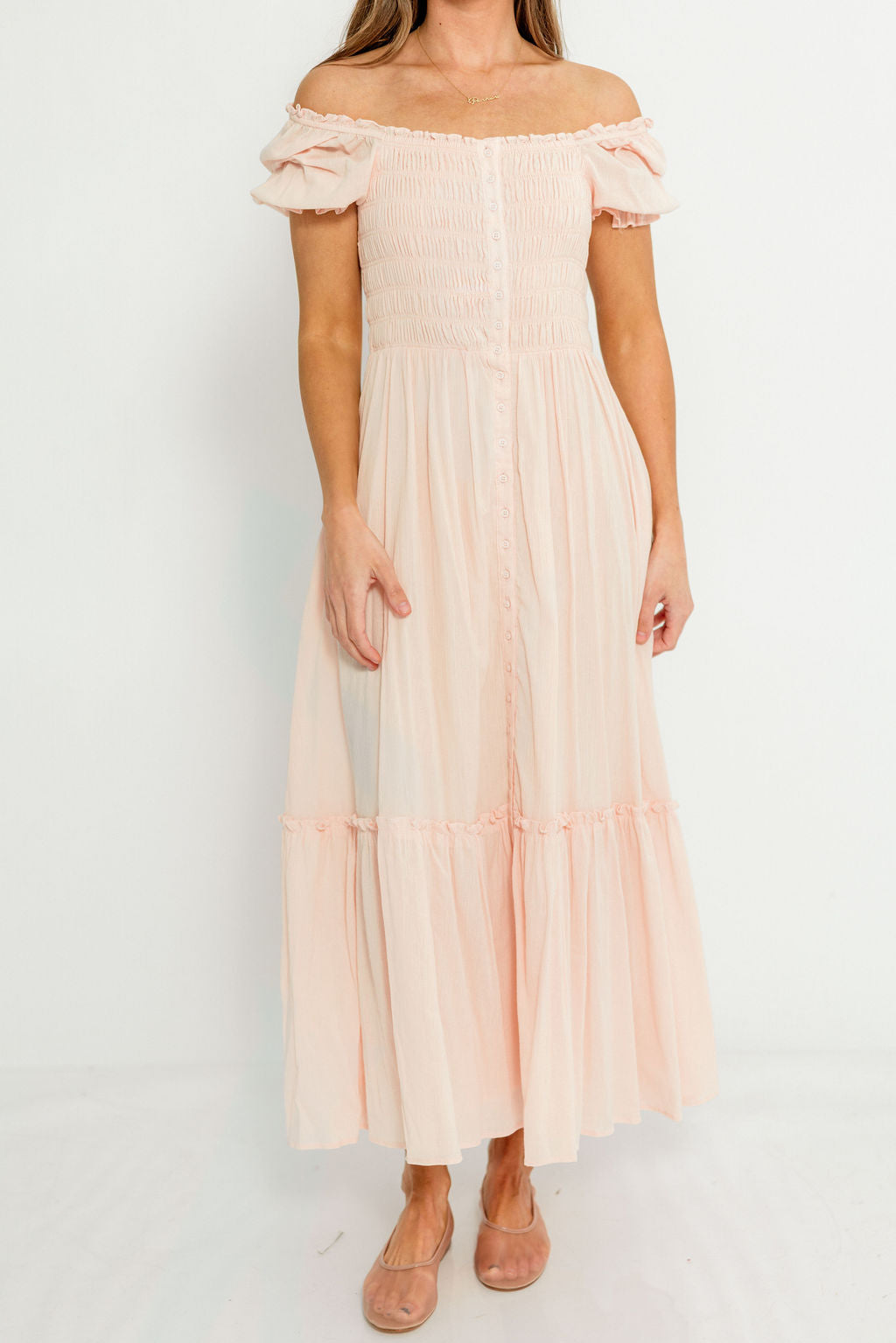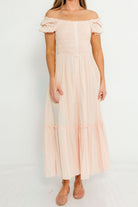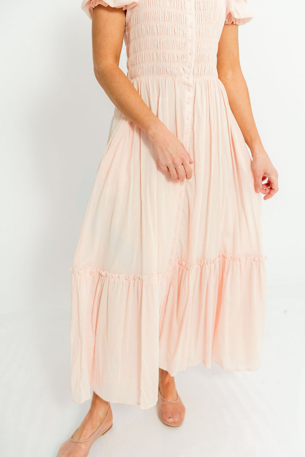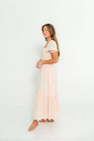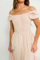 Mara Smocked Button Down Maxi Dress in Pastel Pink