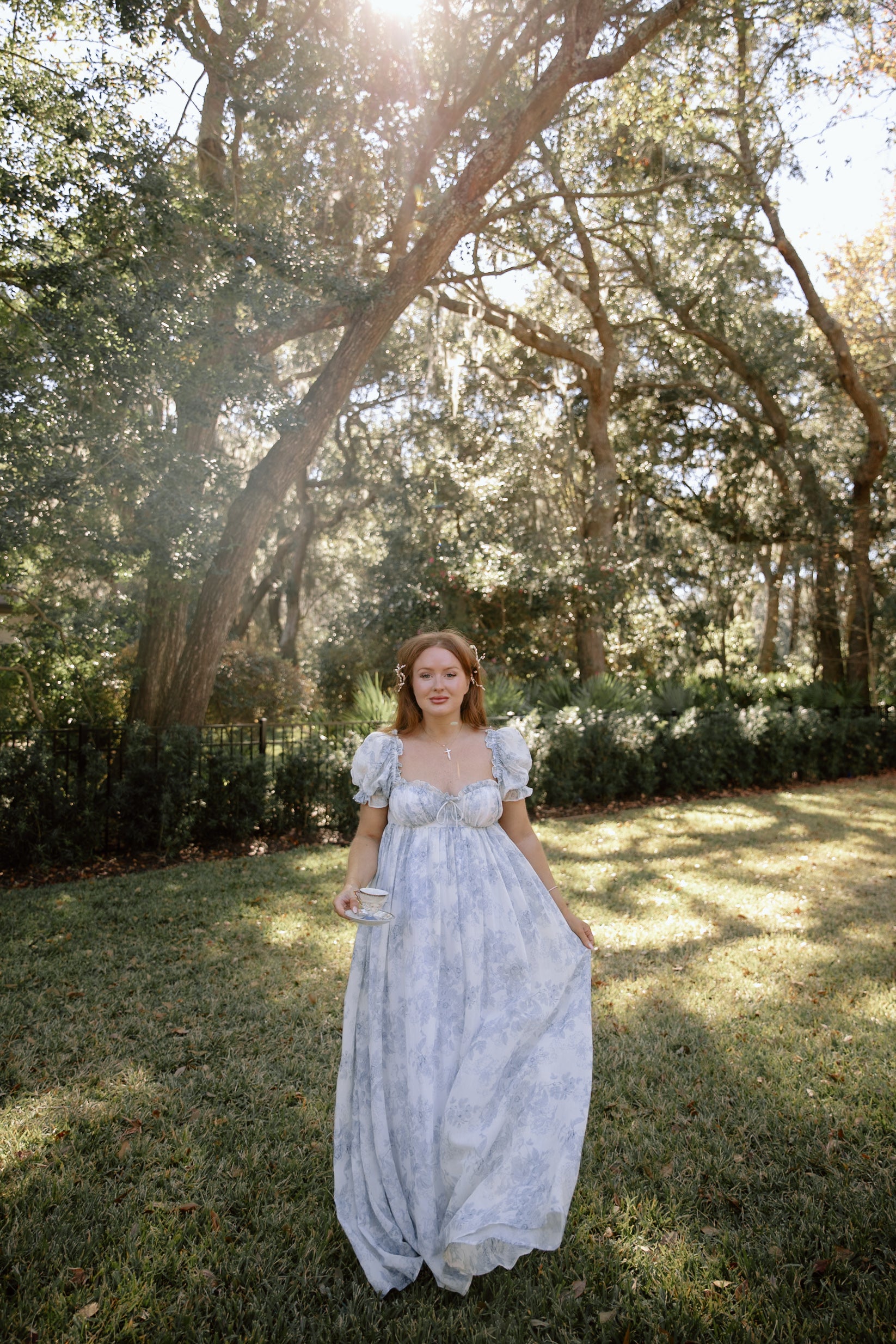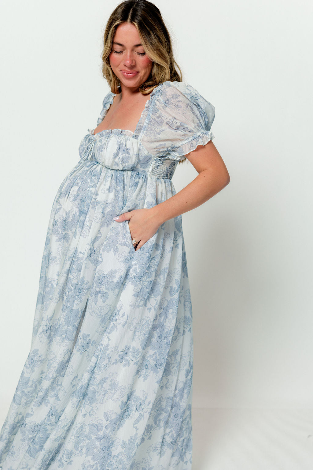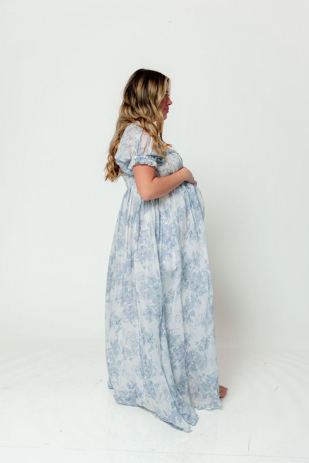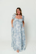 Olivia 100% Cotton Maxi Dress in Blue Floral - Bump Friendly *1/30 PRE-ORDER*