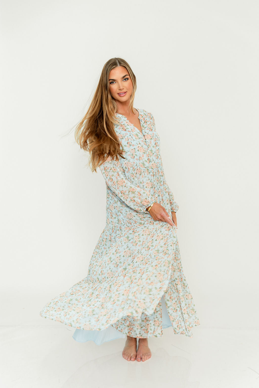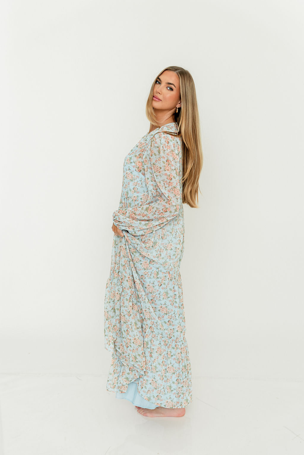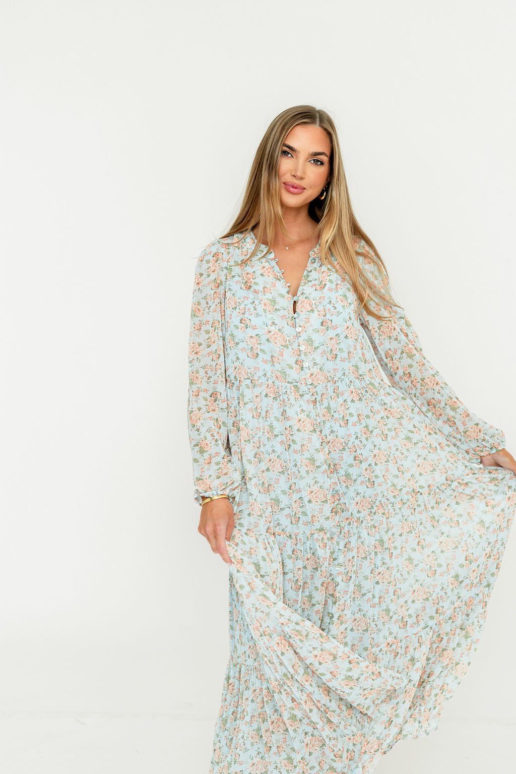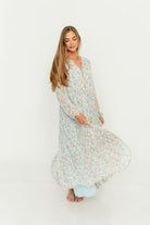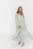 Anna Floral Button-Down Maxi Dress in Light Blue - Bump Friendly