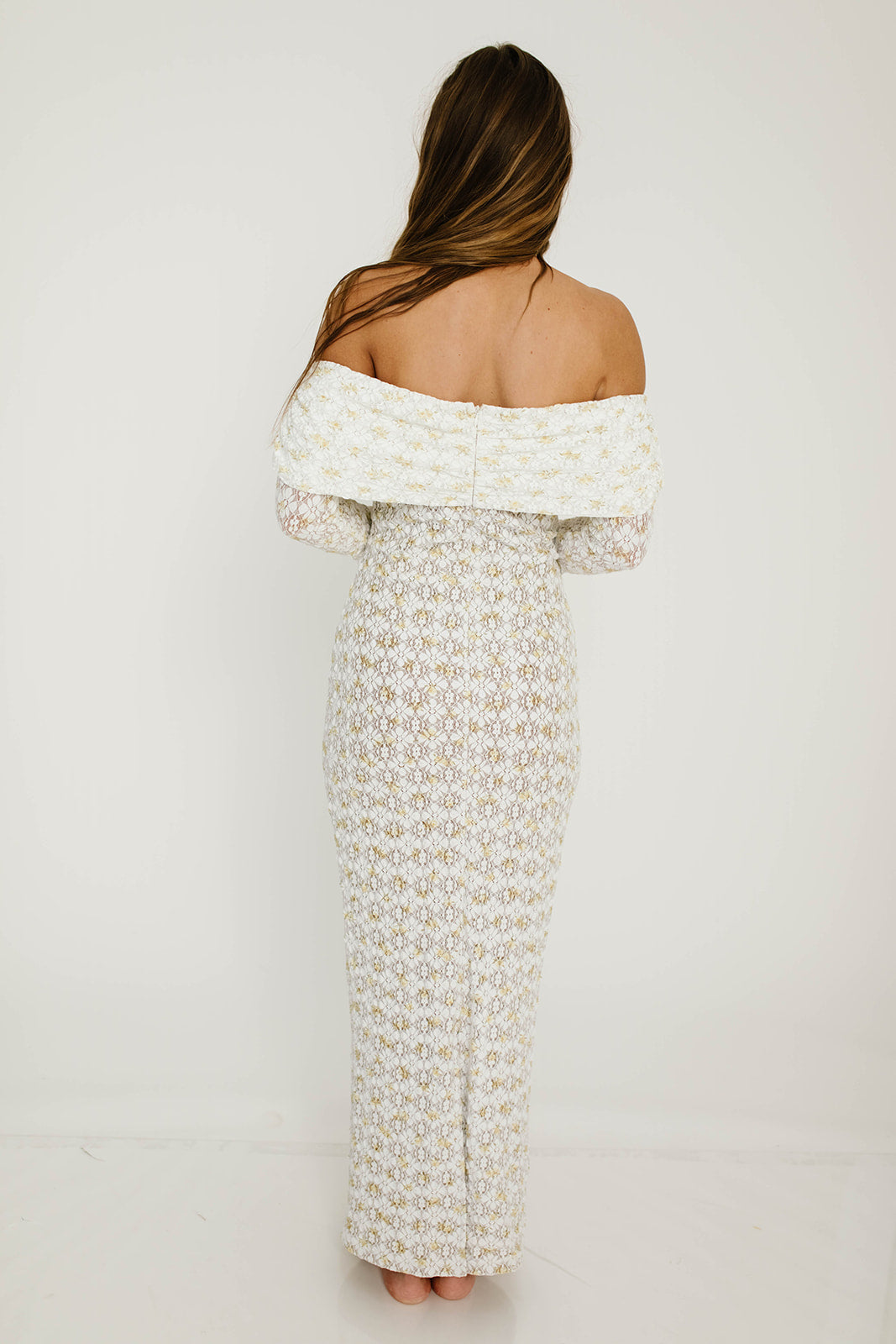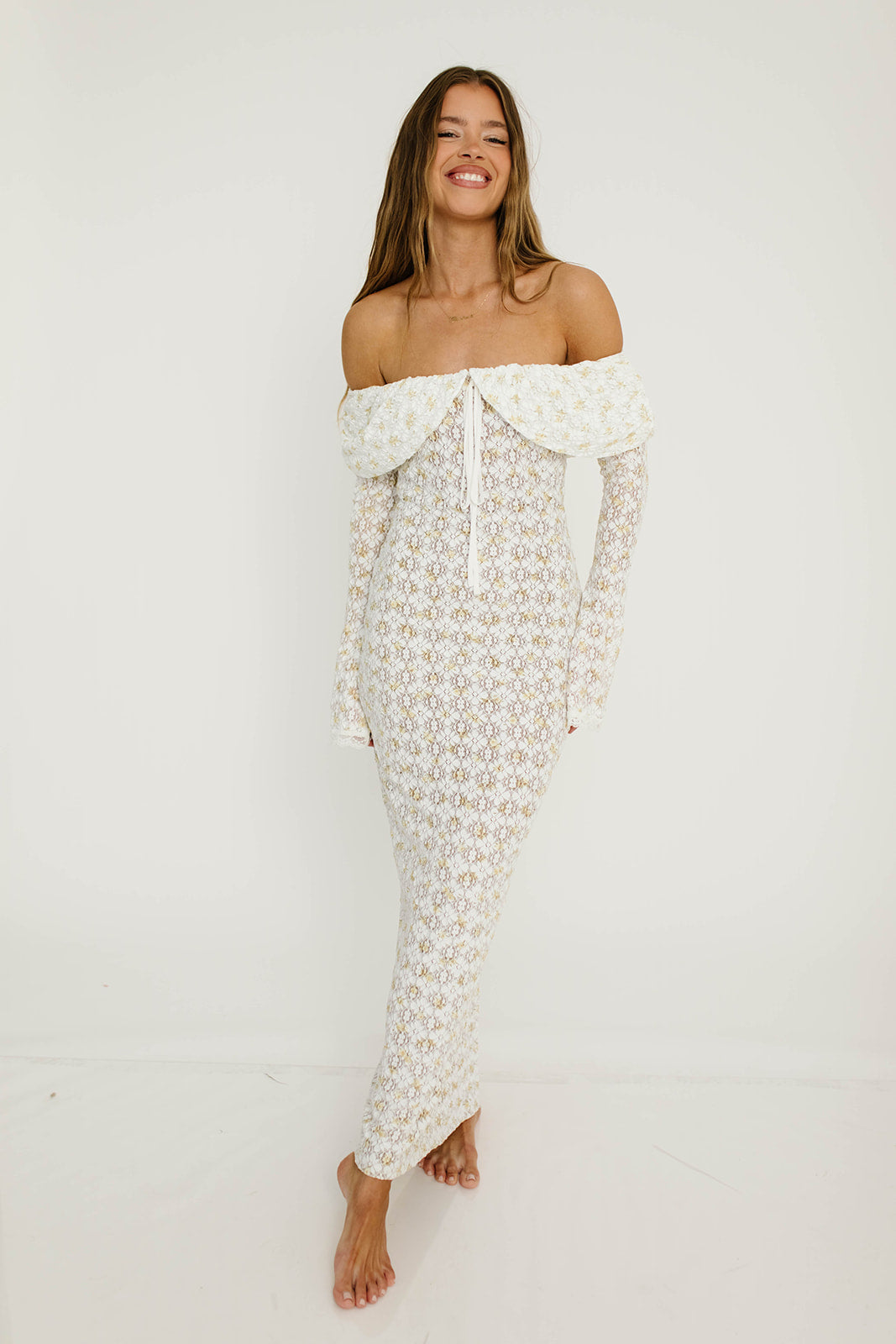 Ella Lace Maxi Dress in Tiny Yellow Floral Print