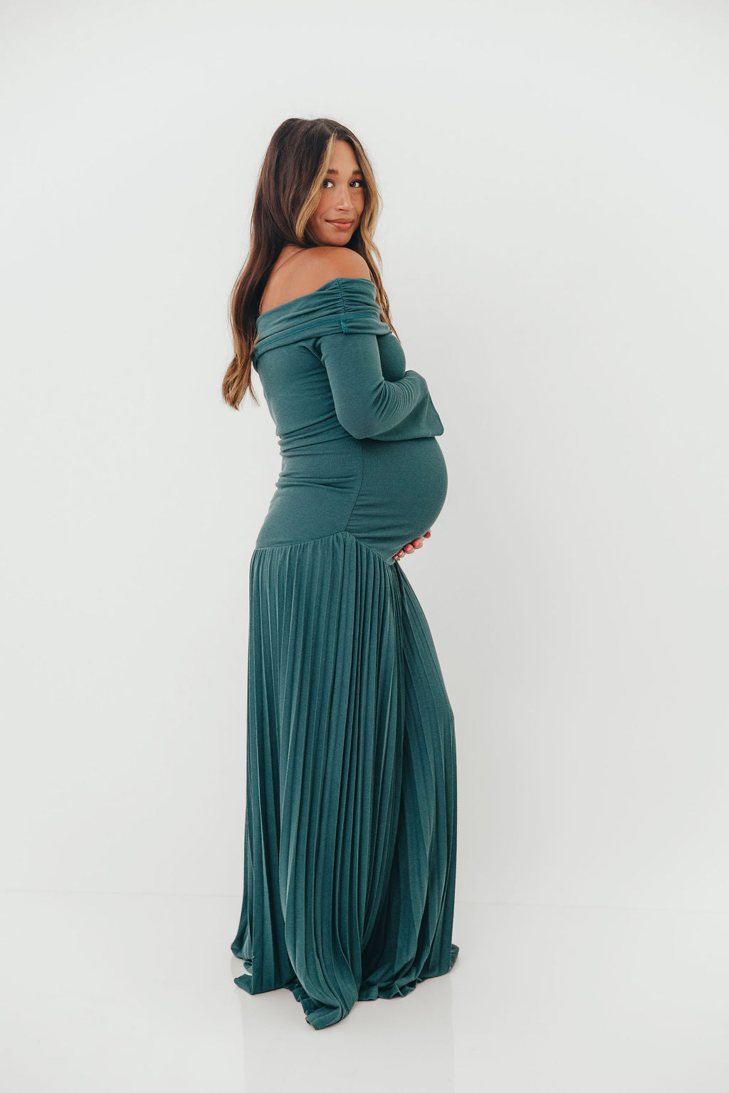 Lennox Long Sleeve Maxi Dress in Green- Bump Friendly *Final Sale*