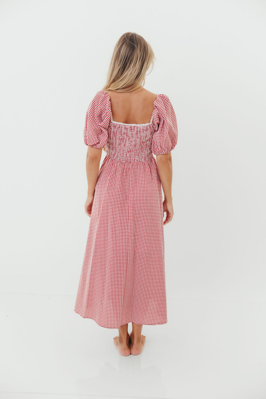 Sienna 100% Cotton Puff Sleeve Maxi Dress in Natural Plaid - Bump Friendly *12/22 PRE-ORDER*