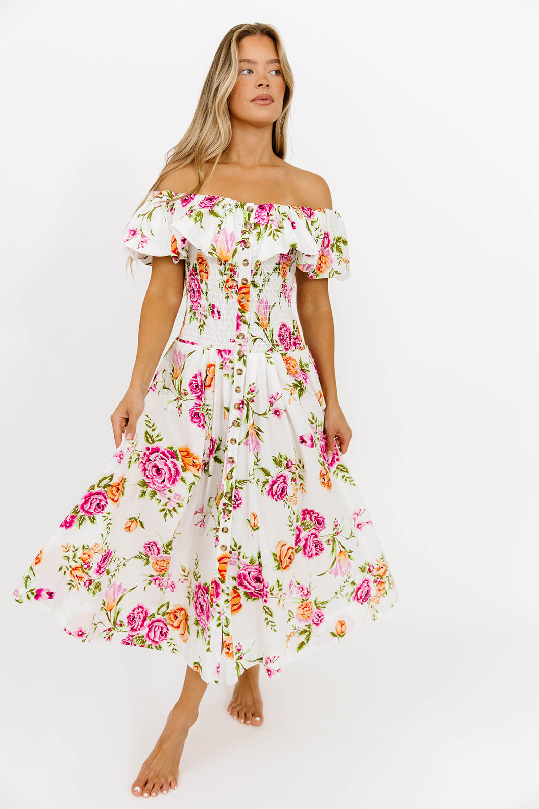 Saylor Floral Dress in White Pink *Final-Sale*