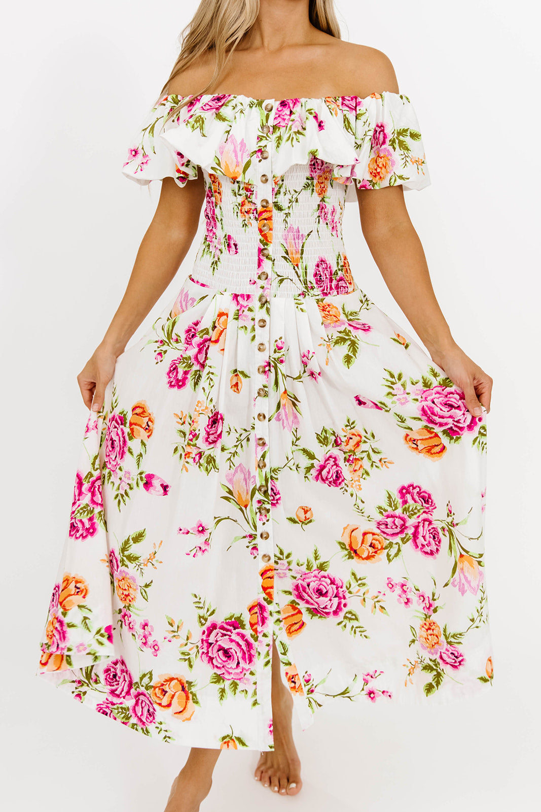 Rosamund Bustier-Style Maxi Dress in White/Orange Floral - Inclusive Sizing (S-XL)