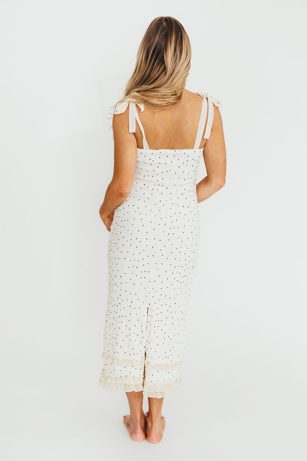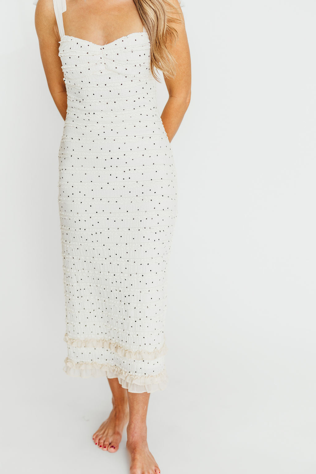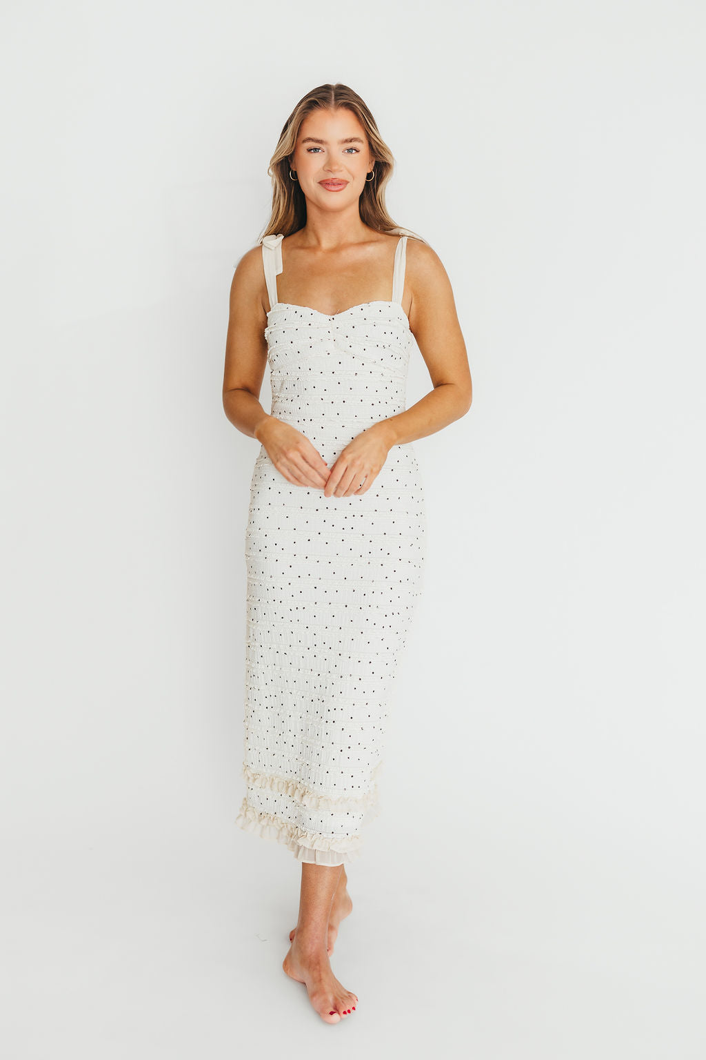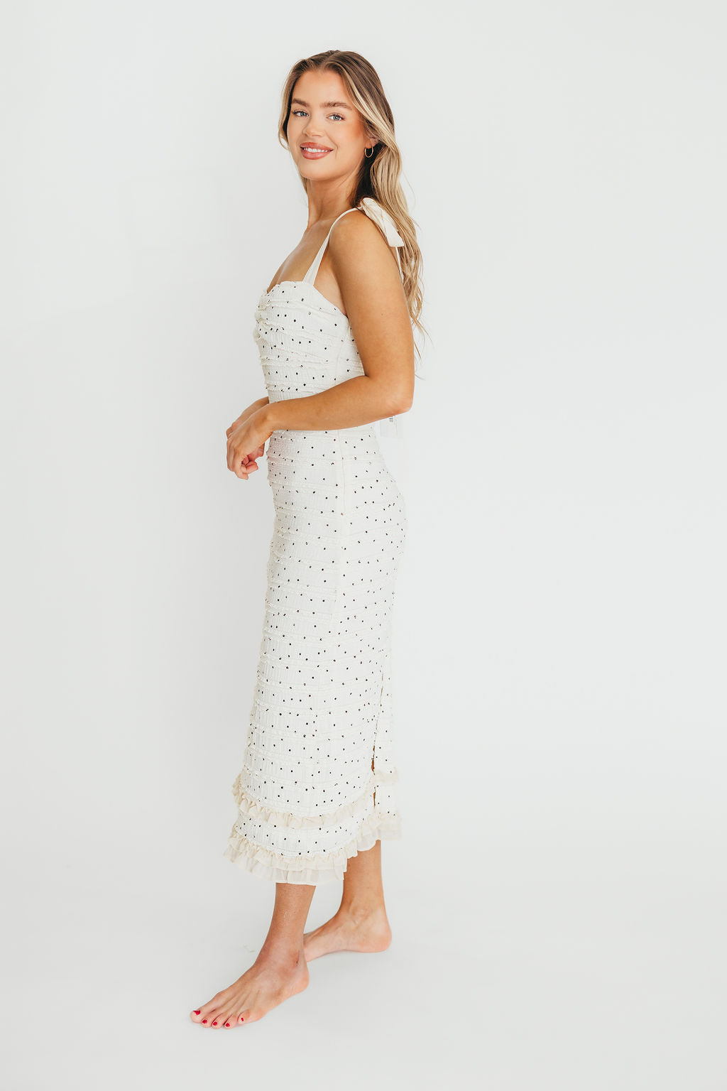 Maddie Tie Strap Ruffled Midi Dress in Ivory