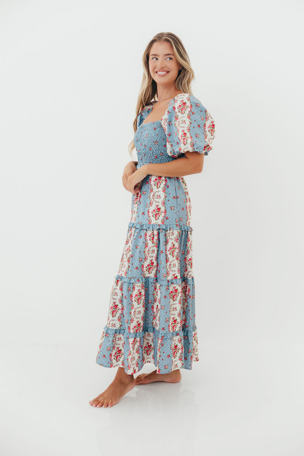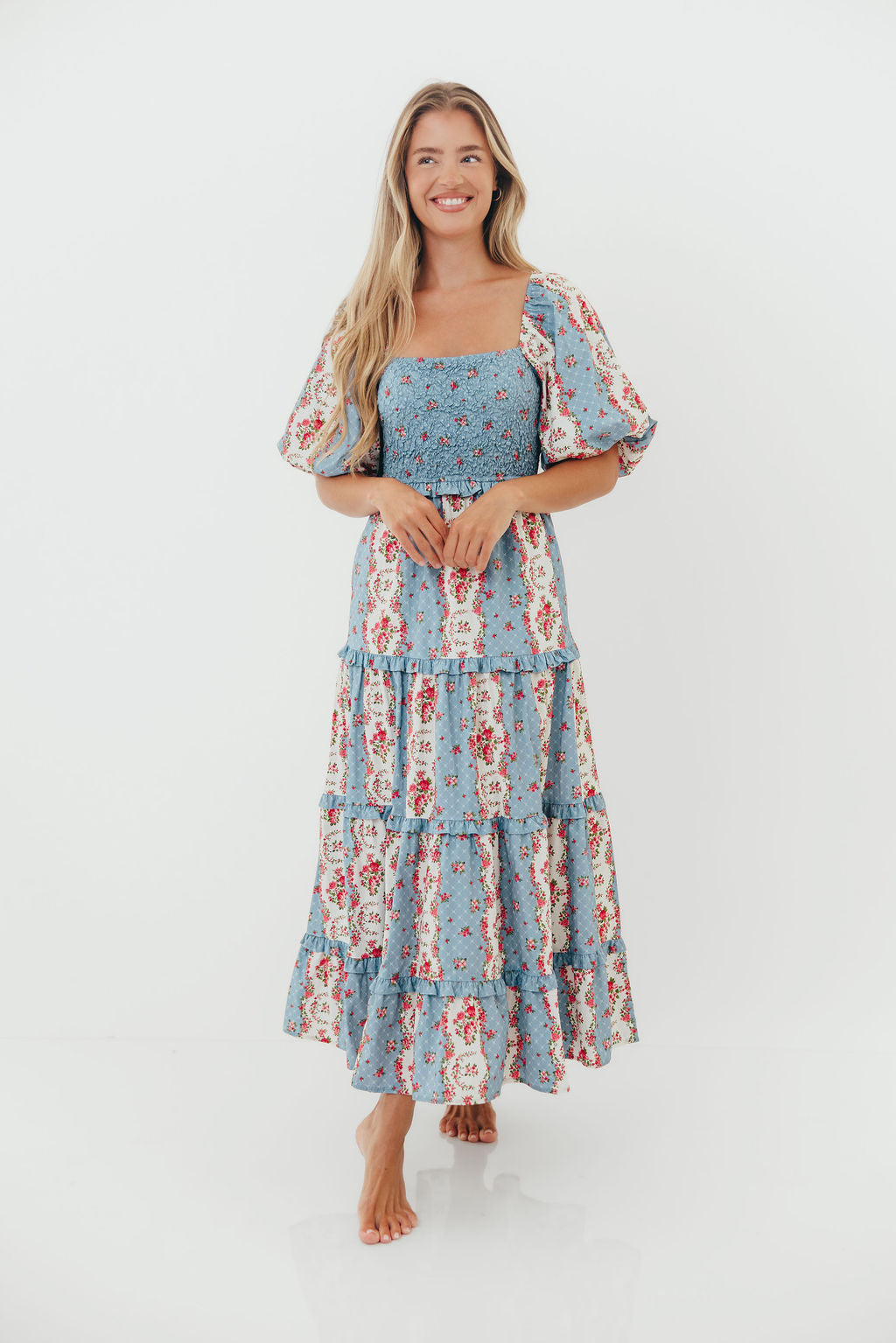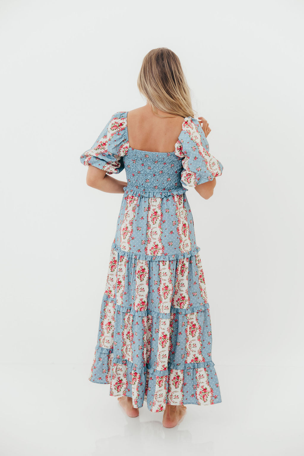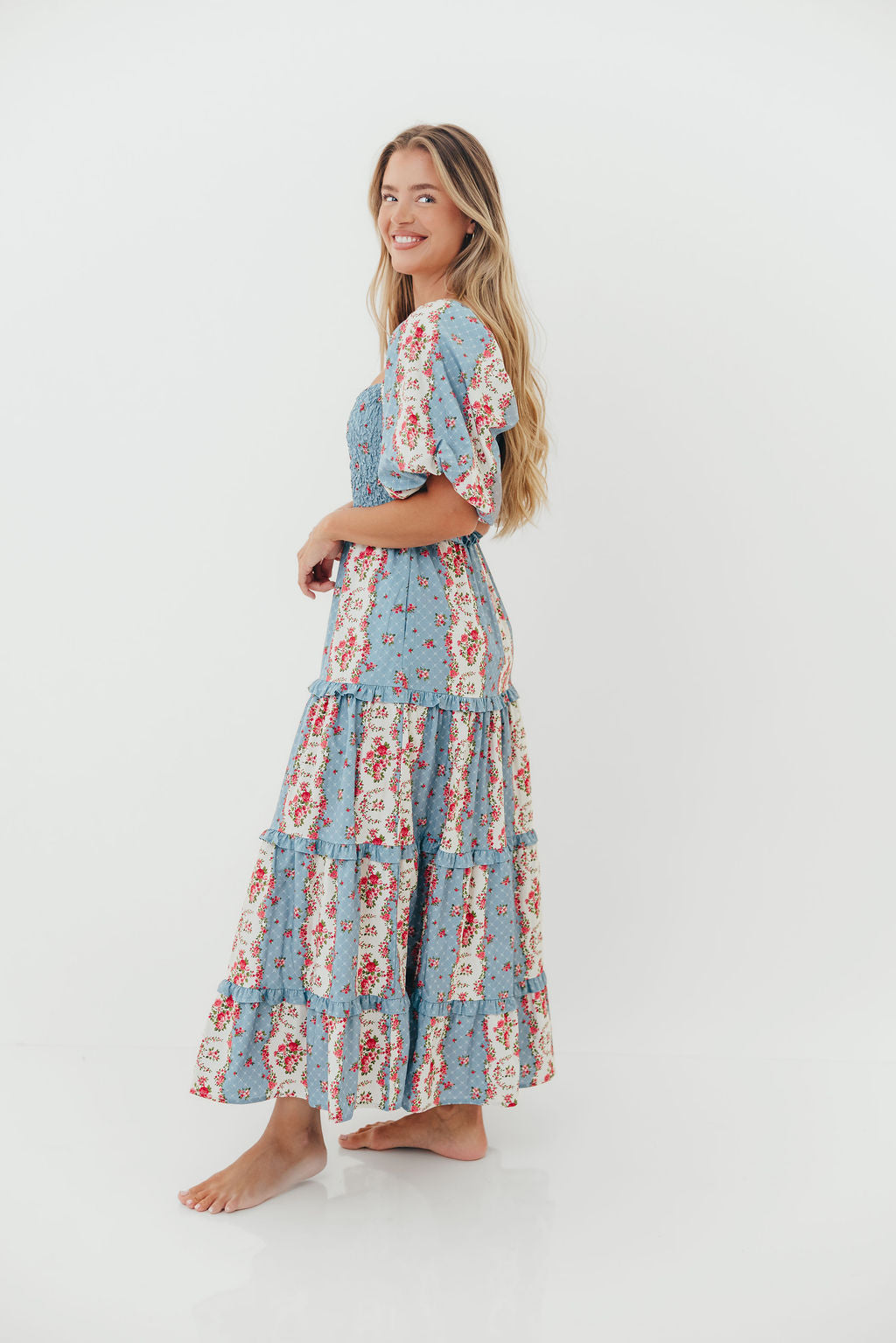 CariDee Floral Print Ruffle Detail Maxi Dress in Blue *Final Sale*