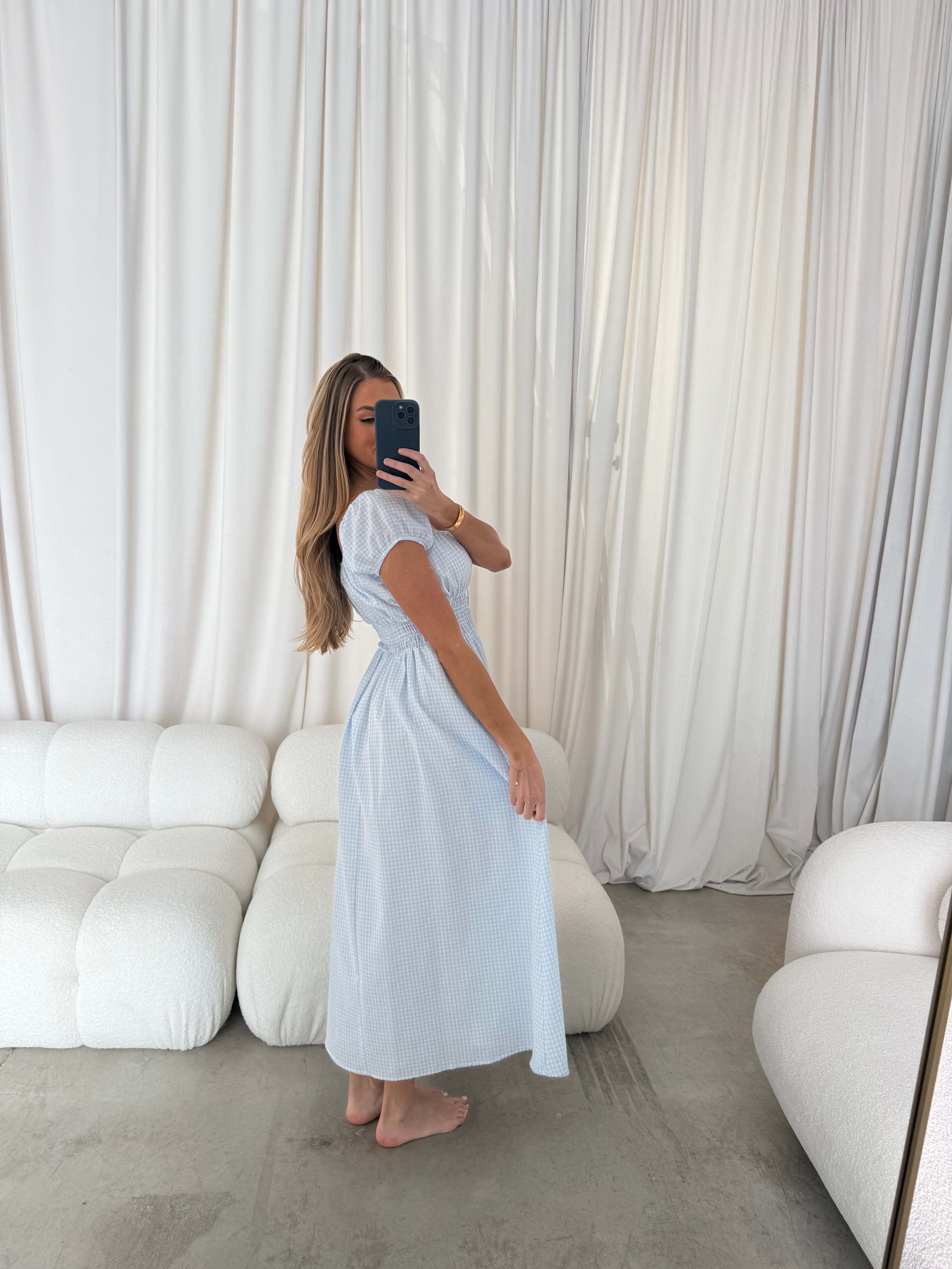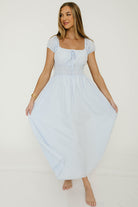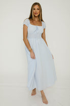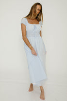 The Corey Maxi Dress is charming and whimsical, a sure compliment-magnet no matter where you wear it! With its flattering silhouette and adorable blue gingham print, the Corey is ready for picnic dates and vacation vibes.